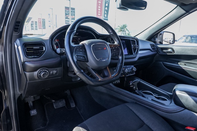 UsedThis 2023 DB Black Crystal Clearcoat Dodge Durango GT AWD is well equipped and includes these features and benefits: Quick Order Package 2BD GT, Durango GT, 3.6L V6 24V VVT, 8-Speed Automatic, AWD, DB Black Crystal Clearcoat, Black Cloth, 3.45 Rear Axle Ratio, 3rd row seats: split-bench, 4-Wheel Disc Brakes, 6 Speakers, ABS brakes, Air Conditioning, Alloy wheels, AM/FM radio: SiriusXM, Apple CarPlay, Apple CarPlay/Android Auto, Auto-dimming Rear-View mirror, Automatic temperature control, Brake assist, Bumpers: body-color, Cloth Bucket Seats w/Shift Insert, Compass, Delay-off headlights, Driver door bin, Driver vanity mirror, Dual front impact airbags, Dual front side impact airbags, Electronic Stability Control, Exterior Mirrors w/Heating Element, Four wheel independent suspension, Front anti-roll bar, Front Bucket Seats, Front Center Armrest w/Storage, Front dual zone A/C, Front License Plate Bracket, Front reading lights, Fully automatic headlights, Garage door transmitter, Gloss Black Exterior Mirrors, Google Android Auto, GPS Antenna Input, Heated door mirrors, Heated front seats, Heated steering wheel, Illuminated entry, Integrated Center Stack Radio, Integrated Voice Command w/Bluetooth, Knee airbag, Leather steering wheel, Low tire pressure warning, Occupant sensing airbag, Outside temperature display, Overhead airbag, Overhead console, Panic alarm, ParkView Rear Back-Up Camera, Passenger door bin, Passenger vanity mirror, Power door mirrors, Power driver seat, Power Liftgate, Power steering, Power windows, Radio data system, Radio: Uconnect 4 w/8.4″ Display, Rear air conditioning, Rear anti-roll bar, Rear reading lights, Rear seat center armrest, Rear window defroster, Rear window wiper, Red Accent Stitching, Remote keyless entry, SiriusXM Radio Service, SiriusXM Satellite Radio, Speed control, Speed-sensing steering, Speed-Sensitive Wipers, Split folding rear seat, Spoiler, Sport steering wheel, Steering wheel mounted audio controls, Tachometer, Telescoping steering wheel, Tilt steering wheel, Traction control, Trip computer, USB Host Flip, Variably intermittent wipers, Voltmeter, and Wheels: 20″ x 8.0″ Fine Silver. Apple Car Play/Android Auto, Automatic Climate Control, Backup Camera, Durango GT, 3.6L V6 24V VVT, 8-Speed Automatic, AWD, DB Black Crystal Clearcoat, Black Cloth. Clean CARFAX. CARFAX One-Owner. Odometer is 1320 miles below market average!We have many different makes and models available including a wide selection of cars, trucks, vans, and SUV’s. Temecula Nissan auto group has access to thousands of new and used vehicles which means we can find the right vehicle FOR YOU.