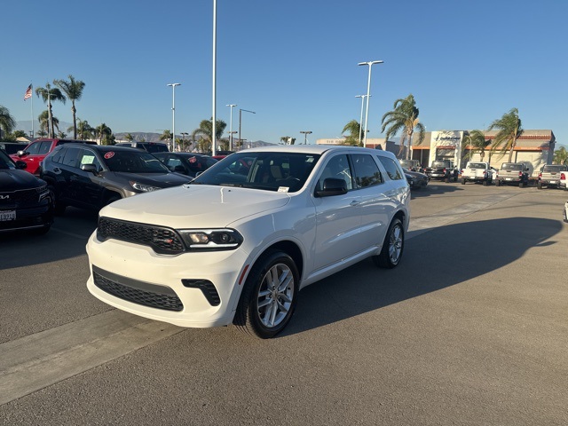 UsedThis 2023 White Knuckle Clearcoat Dodge Durango GT AWD is well equipped and includes these features and benefits: AWD, ABS brakes, Alloy wheels, Compass, Electronic Stability Control, Front dual zone A/C, Heated door mirrors, Heated front seats, Illuminated entry, Low tire pressure warning, ParkView Rear Back-Up Camera, Power Liftgate, Remote keyless entry, Traction control, 3.45 Rear Axle Ratio, 3rd row seats: split-bench, 4-Wheel Disc Brakes, 6 Speakers, Air Conditioning, AM/FM radio: SiriusXM, Apple CarPlay, Apple CarPlay/Android Auto, Auto-dimming Rear-View mirror, Automatic temperature control, Brake assist, Bumpers: body-color, Cloth Bucket Seats w/Shift Insert, Delay-off headlights, Driver door bin, Driver vanity mirror, Dual front impact airbags, Dual front side impact airbags, Exterior Mirrors w/Heating Element, Four wheel independent suspension, Front anti-roll bar, Front Bucket Seats, Front Center Armrest w/Storage, Front reading lights, Fully automatic headlights, Garage door transmitter, Gloss Black Exterior Mirrors, Google Android Auto, GPS Antenna Input, Heated steering wheel, Integrated Center Stack Radio, Integrated Voice Command w/Bluetooth, Knee airbag, Leather steering wheel, Occupant sensing airbag, Outside temperature display, Overhead airbag, Overhead console, Panic alarm, Passenger door bin, Passenger vanity mirror, Power door mirrors, Power driver seat, Power steering, Power windows, Radio data system, Radio: Uconnect 4 w/8.4″ Display, Rear air conditioning, Rear anti-roll bar, Rear reading lights, Rear seat center armrest, Rear window defroster, Rear window wiper, Red Accent Stitching, SiriusXM Radio Service, SiriusXM Satellite Radio, Speed control, Speed-sensing steering, Speed-Sensitive Wipers, Split folding rear seat, Spoiler, Sport steering wheel, Steering wheel mounted audio controls, Tachometer, Telescoping steering wheel, Tilt steering wheel, Trip computer, USB Host Flip, Variably intermittent wipers, Voltmeter, and Wheels: 20″ x 8.0″ Fine Silver. AWD, ABS brakes, Alloy wheels, Compass, Electronic Stability Control, Front dual zone A/C, Heated door mirrors, Heated front seats, Illuminated entry, Low tire pressure warning, ParkView Rear Back-Up Camera, Power Liftgate, Remote keyless entry, Traction control. 8-Speed Automatic Clean CARFAX.Odometer is 4112 miles below market average!We have many different makes and models available including a wide selection of cars, trucks, vans, and SUV’s. Lake Elsinore CDJR auto group has access to thousands of new and used vehicles which means we can find the right vehicle FOR YOU.