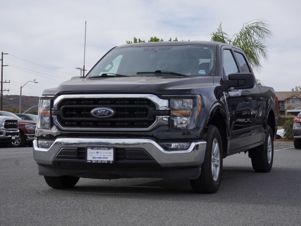 Used2023 Black Metallic Ford F-150 4D SuperCrew XLT Clean CARFAX. KARR Bluetooth Security System Anti-Theft Vehicle Security System & Protection Program, Global Positioning Tracking System (S.W.A.T.) Guaranteed Protection & Recovery Program, Finishing Touch Complete Synthetic Paint Sealant Application & Protection Program, NitroFill Advantage Nitrogen Filled Tires & Protection Program, Genuine Mopar Wheel Locks Anti-Theft Vehicle Wheel Protection, ParkView® / Park Assist Rear Back–Up Camera, Blind–Spot and Cross–Path Detection, Bluetooth Car Audio Receiver, SiriusXM® Satelite Radio, Apple Car Play/Android Auto, Automatic Climate Control, Backup Camera. Priced to Go! Unbeatable Prices: Our dynamic pricing ensures you get unbeatable prices on vehicles that not only fit your budget but also exceed your expectations. We understand the importance of getting the most value for your hard-earned money. Schedule Your Test Drive: Don’t miss out on this opportunity. Schedule your test drive now before the vehicle you desire is gone. Call us at (951) 291-9773 or visit our dealership at lakecdjr.com to experience the thrill of driving your new dream car. Join the ranks of our satisfied customers from Palm Springs, Lake Elsinore, San Jacinto, Sun City, Riverside, Menifee, Murrieta, Temecula, Moreno Valley, Perris, Escondido, Corona, and San Diego County. They’ve discovered the exceptional value we offer, and you can too. CARFAX One-Owner. Priced below KBB Fair Purchase Price!All vehicles subject to prior sale. The estimated selling price that appears after calculating dealer offers, financing and discounts is for informational purposes, only. You may not qualify for all the offers, incentives or financing on this page. Offers, incentives, or financing are subject to expiration, credit worthiness and other restrictions. See Lake Elsinore Chrysler Dodge Jeep Ram for qualifications and complete details or by calling (951) 291-9777. All prices plus government fees and taxes, any finance charges, $85 documentary fee, $33 electronic vehicle registration fee, any emission testing charge and $1.75 per new tire state tire fee. Offers and prices are not available to other dealers, wholesalers, or brokers. For out-of-state purchase customers, customers must be present to purchase. If shipping is required, dealership must facilitate, no exceptions. The sales price may not be combined with any other offer. The Advertised Price for any/all vehicles offered for sale does not include optional dealer pre-installed accessories or commercial upfits or aftermarket lift kit packages which can be purchased for an additional cost. Contact us for additional information at (951) 291-9773. All prices will be honored as cash.10-Speed Automatic RWD 2023 Ford F-150 XLT