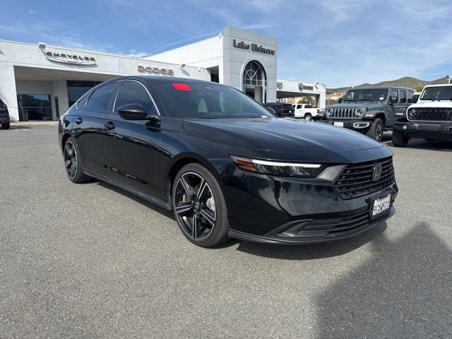 UsedExperience the exceptional 2023 Honda Accord Hybrid Sport, a captivating blend of advanced technology, exceptional efficiency, and refined style. This remarkable vehicle is poised to redefine your driving experience, offering a seamless fusion of performance and sustainability.Elevate your commute with an impressive array of premium features, including:• Global Positioning Tracking System (S.W.A.T.) Guaranteed Protection & Recovery Program• Finishing Touch Complete Synthetic Paint Sealant Application & Protection Program• NitroFill Advantage Nitrogen Filled Tires & Protection Program• Genuine Mopar Wheel Locks Anti-Theft Vehicle Wheel Protection• Apple CarPlay/Android Auto• Automatic Climate Control• Backup CameraEngineered to deliver exceptional fuel efficiency, the 2023 Honda Accord Hybrid Sport boasts an impressive EPA-estimated 46 MPG in the city and 41 MPG on the highway, ensuring you’ll spend less time at the pump and more time enjoying the open road.Beneath the sleek exterior lies a powerful 2.0L 16V DOHC engine, seamlessly paired with an eCVT transmission and front-wheel drive, providing a thrilling and responsive driving experience. The Accord Hybrid Sport’s advanced powertrain not only delivers remarkable performance but also contributes to its exceptional fuel economy, making it an exceptional choice for eco-conscious drivers.Safety is paramount in the 2023 Honda Accord Hybrid Sport, with a comprehensive suite of advanced driver-assistance technologies, including ParkView® / Park Assist Rear Back-Up Camera, Blind-Spot and Cross-Path Detection, and the Lane Keeping Assist System (LKAS). These cutting-edge features work in harmony to provide you and your loved ones with the utmost peace of mind on every journey.Indulge in the luxurious comfort of the Accord Hybrid Sport’s interior, featuring McKinley/Nappa/Alcantara Leather Seats, an 8-speaker audio system, and a power moonroof that floods the cabin with natural light. The intuitive technology, including Apple CarPlay and Android Auto, seamlessly integrates your digital life with the driving experience, keeping you connected and entertained.As you step into the 2023 Honda Accord Hybrid Sport, you’ll be captivated by its striking Berlina Black 19-inch alloy wheels and the bold, aerodynamic design that commands attention on the road. This vehicle is a true testament to Honda’s commitment to innovation, craftsmanship, and customer satisfaction.Discover the exceptional 2023 Honda Accord Hybrid Sport and experience the future of automotive excellence. Visit our showroom today and let us demonstrate how this remarkable vehicle can elevate your driving experience.
