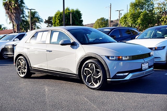 UsedThis 2023 Cyber Gray Hyundai IONIQ 5 SE Standard Range RWD is well equipped and includes these features and benefits: Cargo Package (Cargo Net, First Aid Kit, and Up Seatback Cargo Mat), Option Group 01, Hyundai Certified Used Vehicles Certified, 4-Wheel Disc Brakes, 4.706 Axle Ratio, 6 Speakers, ABS brakes, Air Conditioning, Alloy wheels, AM/FM radio: SiriusXM, Apple CarPlay & Android Auto, Auto High-beam Headlights, Automatic temperature control, Bodyside moldings, Brake assist, Bumpers: body-color, Carpeted Floor Mats, Delay-off headlights, Driver door bin, Driver vanity mirror, Dual front impact airbags, Dual front side impact airbags, Electronic Stability Control, Emergency communication system: Blue Link Connected Car Service (3-year complimentary subscription), Four wheel independent suspension, Front anti-roll bar, Front Bucket Seats, Front Center Armrest w/Storage, Front dual zone A/C, Front reading lights, Fully automatic headlights, harman/kardon® Speakers, Heated door mirrors, Heated Front Bucket Seats, Heated front seats, Illuminated entry, Leather steering wheel, Low tire pressure warning, Navigation System, Occupant sensing airbag, Outside temperature display, Overhead airbag, Overhead console, Panic alarm, Passenger door bin, Passenger vanity mirror, Power door mirrors, Power driver seat, Power steering, Power windows, Radio: AM/FM/SiriusXM/HD Display Audio System, Rear anti-roll bar, Rear reading lights, Rear seat center armrest, Rear window defroster, Remote keyless entry, Security system, Speed control, Speed-sensing steering, Split folding rear seat, Spoiler, Stain-Resistant Cloth Seating Surfaces, Steering wheel mounted audio controls, Telescoping steering wheel, Tilt steering wheel, Traction control, Trip computer, Turn signal indicator mirrors, Variably intermittent wipers, Wheel Locks, and Wheels: 19″ x 7.5J Aero Alloy. Apple Car Play/Android Auto, Automatic Climate Control, **CERTIFIED**, Backup Camera.Priced below KBB Fair Purchase Price!CARFAX One-Owner.Certified. Hyundai Certified Used Vehicles Details: * Includes 10-year/Unlimited Mileage Roadside Assistance with Rental Car and Trip Interruption Reimbursement; Please See Dealers for Specific Vehicle Eligibility Requirements. 10-Year/100,000 Mile Hybrid/EV Battery Warranty. 3-Months SiriusXM Trial Subscription. Complimentary 1 Year (Connected Care & Remote Pkgs). * Powertrain Limited Warranty: 120 Month/100,000 Mile (whichever comes first) from original in-service date * Roadside Assistance * Vehicle History * 173+ Point Inspection * Limited Warranty: 60 Month/60,000 Mile (whichever comes first) from original in-service date * Warranty Deductible: $50Poway Hyundai located at 13910 Poway Road, and Poway CDJR are both proud members of the Pedder Auto Group. Like our sister stores, we take great pride in serving all of San Diego County with friendly and professional sales, service and parts. We have one of the largest inventories of quality pre-owned vehicles in the county including a huge selection of Certified Pre-owned Hyundai products to choose from. We offer excellent financing, and a relaxed, no-pressure environment. All prices exclude government fees and taxes, any finance charges, any dealer document preparation charge, dealer installed options, and any emissions test charge. The equipment display is intended to be used as an informational listing of the factory stock equipment and features for this vehicle. Equipment and features may have changed for this vehicle. All information is believed to be accurate but is not guaranteed. For accurate information, pls see dealer for details. Some incentives are OAC and in lieu of others.