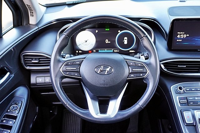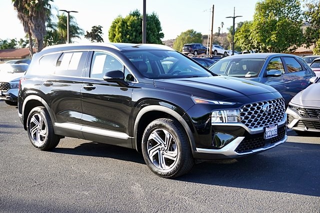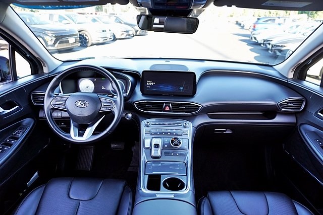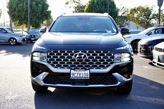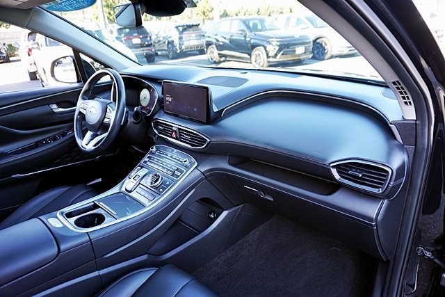 UsedThis 2023 Twilight Black Hyundai Santa Fe SEL AWD is well equipped and includes these features and benefits: Premium Package (12.3″ LCD Multi-Information Display, 8-Way Power Passenger Seat, Acoustic-Laminated Front Side Windows, Auto-Dimming Rear-View Mirror, Blind-Spot View Monitor, Chrome Front & Rear Bumper Accents, Chrome Interior Accents, H-Tex Leatherette Seat Trim, harman/kardon® Audio System, LED Interior Lights, LED Taillights, Manual Rear Side Sunshades, Option Group 02, Panoramic Sunroof, Power Release 2nd Row Seats, Silver Front Grille, and Surround View Monitor), Hyundai Certified Used Vehicles Certified, AWD, Black Artificial Leather, 18″ x 7.5J Alloy Wheels, 4-Wheel Disc Brakes, 6 Speakers, ABS brakes, Air Conditioning, Alloy wheels, AM/FM radio: SiriusXM, Apple CarPlay & Android Auto, Auto High-beam Headlights, Automatic temperature control, Axle Ratio: 4.081, Brake assist, Bumper Applique, Bumpers: body-color, Cargo Net, Cargo Tray, Carpeted Floor Mats, Delay-off headlights, Driver door bin, Driver vanity mirror, Dual front impact airbags, Dual front side impact airbags, Electronic Stability Control, Emergency communication system, Exterior Parking Camera Rear, First Aid Kit, Four wheel independent suspension, Front anti-roll bar, Front Bucket Seats, Front Center Armrest, Front dual zone A/C, Front reading lights, Fully automatic headlights, Heated door mirrors, Heated Front Bucket Seats, Heated front seats, Illuminated entry, Leather steering wheel, Low tire pressure warning, Mudguards, Navigation System, Occupant sensing airbag, Outside temperature display, Overhead airbag, Overhead console, Panic alarm, Passenger door bin, Passenger vanity mirror, Power door mirrors, Power driver seat, Power Liftgate, Power steering, Power windows, Radio: AM/FM Display Audio, Rear anti-roll bar, Rear seat center armrest, Rear window defroster, Rear window wiper, Remote keyless entry, Security system, Speed control, Speed-sensing steering, Split folding rear seat, Spoiler, Stain-Resistant Cloth Seat Trim, Steering wheel mounted audio controls, Tachometer, Telescoping steering wheel, Tilt steering wheel, Traction control, Trip computer, Turn signal indicator mirrors, Variably intermittent wipers, and Wheel Locks. Apple Car Play/Android Auto, Automatic Climate Control, **CERTIFIED**, Backup Camera, AWD, Black Artificial Leather.Priced below KBB Fair Purchase Price!CARFAX One-Owner.Certified. Hyundai Certified Used Vehicles Details: * Powertrain Limited Warranty: 120 Month/100,000 Mile (whichever comes first) from original in-service date * Includes 10-year/Unlimited Mileage Roadside Assistance with Rental Car and Trip Interruption Reimbursement; Please See Dealers for Specific Vehicle Eligibility Requirements. 10-Year/100,000 Mile Hybrid/EV Battery Warranty. 3-Months SiriusXM Trial Subscription. Complimentary 1 Year (Connected Care & Remote Pkgs). * Warranty Deductible: $50 * Limited Warranty: 60 Month/60,000 Mile (whichever comes first) from original in-service date * 173+ Point Inspection * Roadside Assistance * Vehicle HistoryPoway Hyundai located at 13910 Poway Road, and Poway CDJR are both proud members of the Pedder Auto Group. Like our sister stores, we take great pride in serving all of San Diego County with friendly and professional sales, service and parts. We have one of the largest inventories of quality pre-owned vehicles in the county including a huge selection of Certified Pre-owned Hyundai products to choose from. We offer excellent financing, and a relaxed, no-pressure environment. All prices exclude government fees and taxes, any finance charges, any dealer document preparation charge, dealer installed options, and any emissions test charge. The equipment display is intended to be used as an informational listing of the factory stock equipment and features for this vehicle. Equipment and features may have changed for this vehicle. All information is believed to be accurate but is not g
