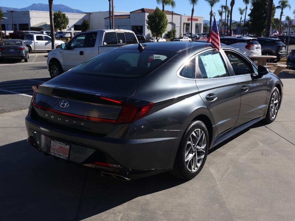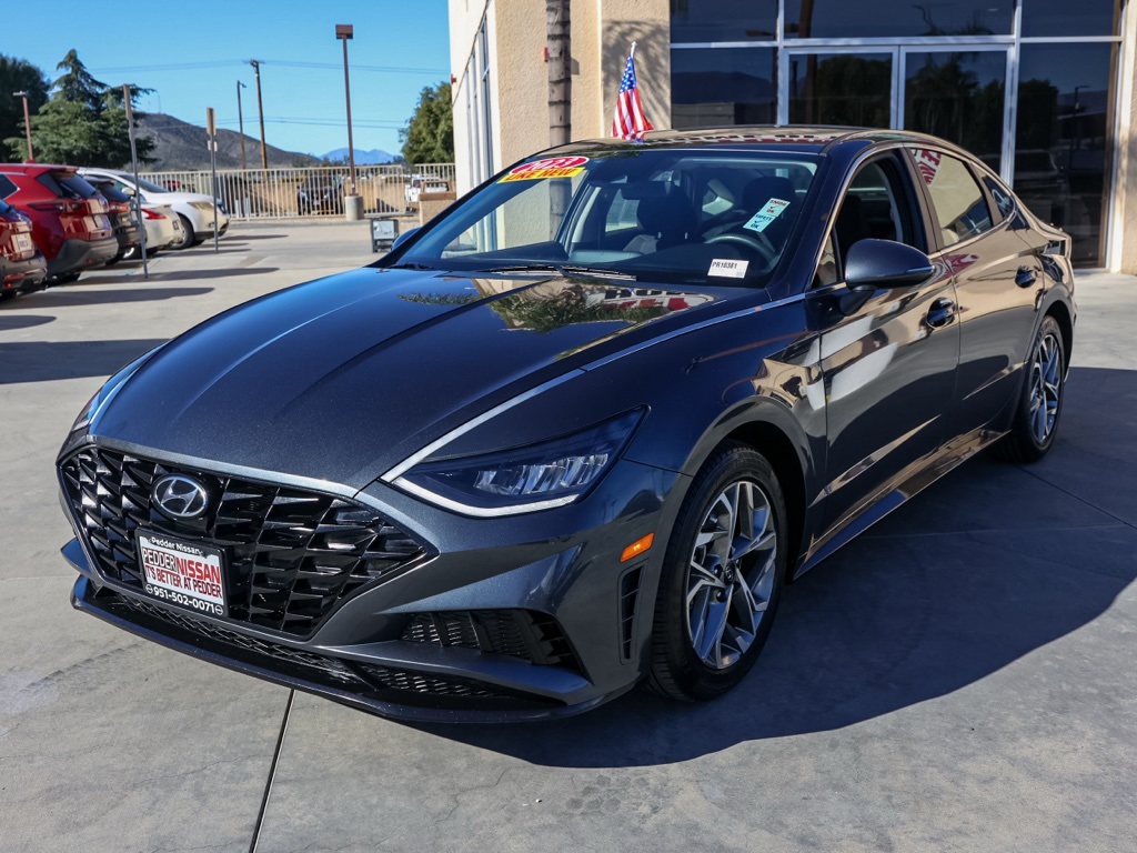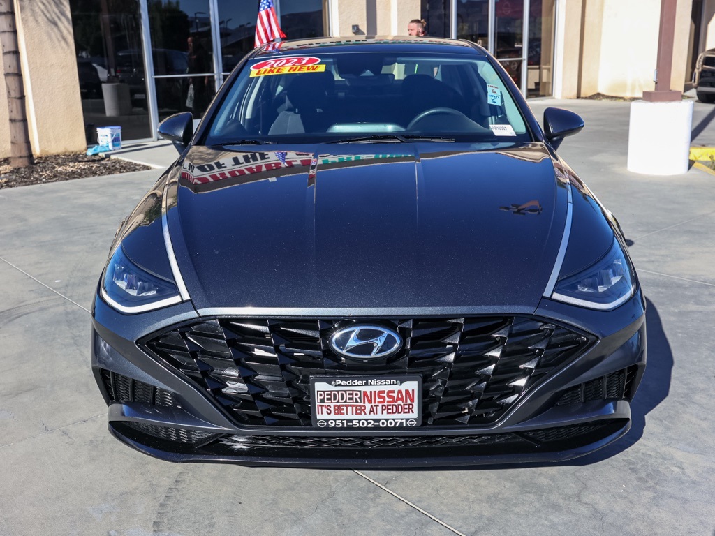 UsedThis 2023 Portofino Gray Hyundai Sonata SEL FWD is well equipped and includes these features and benefits: Option Group 01, Black Cloth, 17″ x 7.0J Aluminum Alloy Wheels, 4-Wheel Disc Brakes, 6 Speakers, ABS brakes, Air Conditioning, Alloy wheels, AM/FM radio: SiriusXM, Apple CarPlay & Android Auto, Auto High-beam Headlights, Automatic temperature control, Brake assist, Bumpers: body-color, Cargo Tray, Carpeted Floor Mats, Delay-off headlights, Driver door bin, Driver vanity mirror, Dual front impact airbags, Dual front side impact airbags, Electronic Stability Control, Emergency communication system: Blue Link Connected Car Service (3-year complimentary subscription), Exterior Parking Camera Rear, First Aid Kit, Four wheel independent suspension, Front anti-roll bar, Front Bucket Seats, Front Center Armrest, Front dual zone A/C, Front reading lights, Fully automatic headlights, Heated door mirrors, Heated Front Bucket Seats, Heated front seats, Illuminated entry, Knee airbag, Low tire pressure warning, Navigation System, Occupant sensing airbag, Outside temperature display, Overhead airbag, Overhead console, Panic alarm, Passenger door bin, Passenger vanity mirror, Power door mirrors, Power driver seat, Power steering, Power windows, Premium Cloth Seating Surfaces, Radio data system, Radio: AM/FM/MP3/HD/SiriusXM Display Audio w/Nav, Rear anti-roll bar, Rear seat center armrest, Rear side impact airbag, Rear window defroster, Remote keyless entry, Security system, Speed control, Speed-sensing steering, Speed-Sensitive Wipers, Split folding rear seat, Steering wheel mounted audio controls, Tachometer, Telescoping steering wheel, Tilt steering wheel, Traction control, Trip computer, Trunk Cargo Net, Turn signal indicator mirrors, Variably intermittent wipers, and Wheel Locks Plus 3 Month 3000 Mile Warranty. See Dealer For Details. We have many different makes and models available including a wide selection of cars, trucks, vans, and SUV’s. Don’t see something you like! Pedder Nissan has access to thousands of new and used vehicles which means we can find the right vehicle FOR YOU. The Advertised Price for any vehicle does not include dealer installed accessories. These accessories can be purchased for an additional cost. All vehicles subject to prior sale. All prices plus government fees and taxes, any finance charges, any dealer document processing charges ($85), any electronic filing charge, and any emission testing charge. Offers and prices not available to other dealers, wholesalers, or brokers. This price may not be combined with any other offer. While every reasonable effort is made to ensure the accuracy of this information, we are not responsible for any errors or omissions contained on these pages. We are proud to serve the Hemet area from our Auto Mall Location. We work with most Credit Unions and we offer Military and First Responder discounts. Please verify all pricing, vehicle equipment, and any additional information in question with Pedder Nissan (951) 766-1446. Apple Car Play/Android Auto, Automatic Climate Control, Backup Camera, Black Cloth. CARFAX One-Owner. Priced below KBB Fair Purchase Price! 2023 Hyundai Sonata SEL27/37 City/Highway MPG
