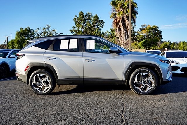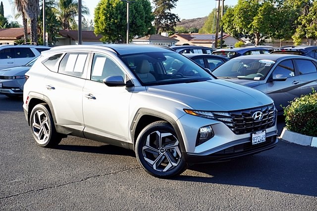 UsedThis 2023 Shimmering Silver Hyundai Tucson SEL AWD is well equipped and includes these features and benefits: Convenience Package (10.25″ Digital Instrument Cluster, Auto-Dimming Interior Mirror w/Homelink, Dual Automatic Temperature Control, H-Tex Seat Trim, Leather-Wrapped Shift Knob, Leather-Wrapped Steering Wheel, LED Interior Lights (Room, Map), Option Group 02, Power Sunroof, Ultrasonic Rear Occupant Alert, and Wheels: 19″ x 7.5J” Machine-Face Finish Alloy), Hyundai Certified Used Vehicles Certified, AWD, 3.648 Axle Ratio, 4-Wheel Disc Brakes, 6 Speakers, ABS brakes, Air Conditioning, Alloy wheels, AM/FM radio: SiriusXM, Apple CarPlay & Android Auto, Auto High-beam Headlights, Brake assist, Bumpers: body-color, Delay-off headlights, Driver door bin, Driver vanity mirror, Dual front impact airbags, Dual front side impact airbags, Electronic Stability Control, Emergency communication system: Blue Link Connected Car Service (3-year complimentary subscription), Four wheel independent suspension, Front anti-roll bar, Front Bucket Seats, Front Center Armrest, Front reading lights, Fully automatic headlights, Heated door mirrors, Heated Front Bucket Seats, Heated front seats, Illuminated entry, Low tire pressure warning, Occupant sensing airbag, Outside temperature display, Overhead airbag, Overhead console, Panic alarm, Passenger door bin, Passenger vanity mirror, Power door mirrors, Power driver seat, Power Liftgate, Power steering, Power windows, Radio data system, Radio: AM/FM/HD/SiriusXM Audio System, Rear anti-roll bar, Rear seat center armrest, Rear window defroster, Rear window wiper, Remote keyless entry, Roof rack: rails only, Security system, Speed control, Split folding rear seat, Spoiler, Stain & Odor Resistant Cloth Seat Trim, Steering wheel mounted audio controls, Tachometer, Telescoping steering wheel, Tilt steering wheel, Traction control, Trip computer, Turn signal indicator mirrors, Variably intermittent wipers, and Wheels: 17″ x 7.0J” Alloy. Apple Car Play/Android Auto, Automatic Climate Control, **CERTIFIED**, Backup Camera, AWD.CARFAX One-Owner.Certified. Hyundai Certified Used Vehicles Details: * 173+ Point Inspection * Warranty Deductible: $50 * Roadside Assistance * Powertrain Limited Warranty: 120 Month/100,000 Mile (whichever comes first) from original in-service date * Limited Warranty: 60 Month/60,000 Mile (whichever comes first) from original in-service date * Vehicle History * Includes 10-year/Unlimited Mileage Roadside Assistance with Rental Car and Trip Interruption Reimbursement; Please See Dealers for Specific Vehicle Eligibility Requirements. 10-Year/100,000 Mile Hybrid/EV Battery Warranty. 3-Months SiriusXM Trial Subscription. Complimentary 1 Year (Connected Care & Remote Pkgs).Poway Hyundai located at 13910 Poway Road, and Poway CDJR are both proud members of the Pedder Auto Group. Like our sister stores, we take great pride in serving all of San Diego County with friendly and professional sales, service and parts. We have one of the largest inventories of quality pre-owned vehicles in the county including a huge selection of Certified Pre-owned Hyundai products to choose from. We offer excellent financing, and a relaxed, no-pressure environment. All prices exclude government fees and taxes, any finance charges, any dealer document preparation charge, dealer installed options, and any emissions test charge. The equipment display is intended to be used as an informational listing of the factory stock equipment and features for this vehicle. Equipment and features may have changed for this vehicle. All information is believed to be accurate but is not guaranteed. For accurate information, pls see dealer for details. Some incentives are OAC and in lieu of others.