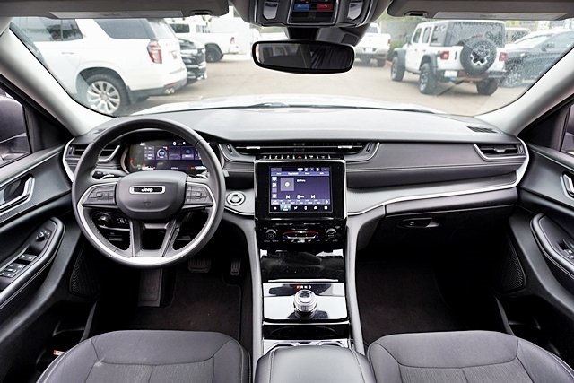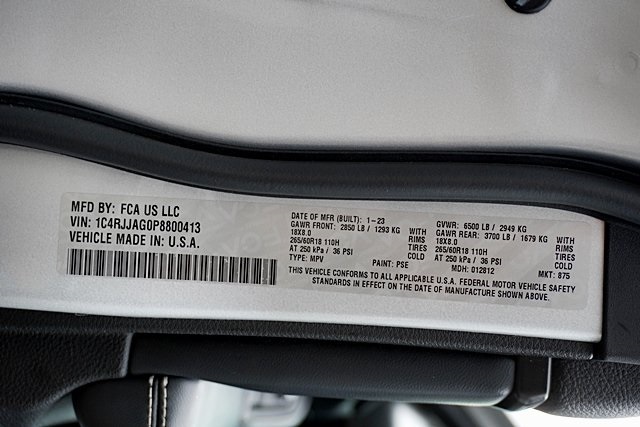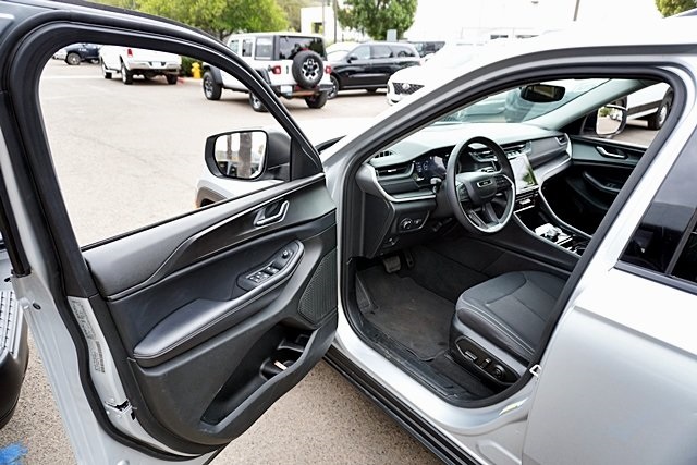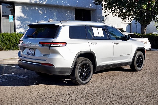 UsedThis 2023 Silver Zynith Jeep Grand Cherokee L Laredo RWD is well equipped and includes these features and benefits: Quick Order Package 23A Laredo, FCA US LLC Certified Pre-Owned Certified, 3.45 Rear Axle Ratio, 3rd row seats: split-bench, 4-Wheel Disc Brakes, 6 Speakers, ABS brakes, Air Conditioning, Alloy wheels, Anti-whiplash front head restraints, Automatic temperature control, Brake assist, Bumpers: body-color, Cloth Seats, Compass, Delay-off headlights, Driver door bin, Driver vanity mirror, Dual front impact airbags, Dual front side impact airbags, Electronic Stability Control, Emergency communication system, Four wheel independent suspension, Front anti-roll bar, Front Bucket Seats, Front Center Armrest w/Storage, Front dual zone A/C, Front License Plate Bracket, Front reading lights, Fully automatic headlights, Heated door mirrors, Illuminated entry, Knee airbag, Low tire pressure warning, Manual Fold Seatbacks, Molded In Color Black/Gloss Black Roof Rails, Normal Duty Suspension, Occupant sensing airbag, Outside temperature display, Overhead airbag, Overhead console, Panic alarm, ParkView Rear Back-Up Camera, Passenger door bin, Passenger vanity mirror, Power door mirrors, Power driver seat, Power steering, Power windows, Radio data system, Radio: Uconnect 5 w/8.4″ Display, Rear air conditioning, Rear anti-roll bar, Rear reading lights, Rear window defroster, Rear window wiper, Reclining 3rd row seat, Remote keyless entry, Security system, Speed control, Speed-Sensitive Wipers, Split folding rear seat, Spoiler, Steering wheel mounted audio controls, Tachometer, Telescoping steering wheel, Tilt steering wheel, Traction control, Trip computer, Variably intermittent wipers, Voltmeter, and Wheels: 18″ x 8.0″ Fully Painted Aluminum Prices shown are manufacturer suggested retail price only and do not include taxes, license, documentation fee, smog fee, dealer installed options and other applicable charges. Vehicles are subject to prior sale. Vehicle information is based on standard equipment and may vary from vehicle to vehicle. Not responsible for typographical errors. Certified. CARFAX One-Owner. Priced below KBB Fair Purchase Price!19/26 City/Highway MPGFCA US LLC Certified Pre-Owned Details: * Warranty Deductible: $100 * Roadside Assistance * Transferable Warranty * 125 Point Inspection * Limited Warranty: 3 Month/3,000 Mile (whichever comes first) after new car warranty expires or from certified purchase date * Vehicle History * Vehicles Up to 75,000 Miles and/or 5 Model Years. 24-Hour Towing & Roadside Assistance, Car Rental Allowance, CARFAX® Vehicle History ReportTM and an Introductory 3-month Subscription to SiriusXM® Satellite Radio & Certified Warranty Upgrades * Powertrain Limited Warranty: 84 Month/100,000 Mile (whichever comes first) from original in-service date