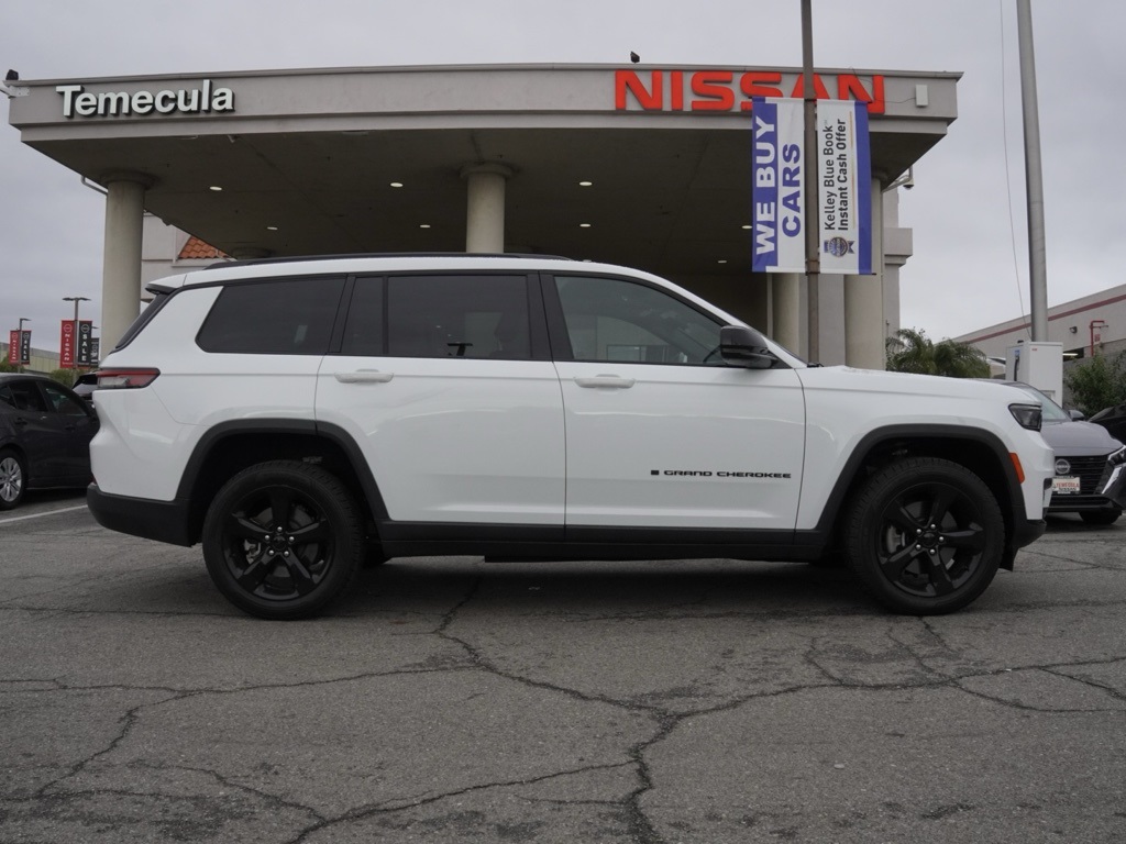 UsedRecent Arrival! CARFAX One-Owner.Certified. 2023 Bright White Clearcoat Clean CARFAX. Jeep Grand Cherokee L 4D Sport Utility Altitude Edition Global Positioning Tracking System (S.W.A.T.) Guaranteed Protection & Recovery Program, Finishing Touch Complete (Synthetic Paint Sealant Application & Protection Program), NitroFill Advantage (Nitrogen Filled Tires & Protection Program), Genuine Nissan Wheel Locks (Anti-Theft Vehicle Wheel Protection), ParkView® / Park Assist Rear Back–Up Camera, McKinley/Nappa/Alcantara Leather Seats, Blind–Spot and Cross–Path Detection, Bluetooth Car Audio Receiver, SiriusXM® Satelite Radio, Apple Car Play/Android Auto, Automatic Climate Control, Backup Camera, Trailer Tow Package, 18–Inch Aluminum Painted/Polished Wheels, Grand Cherokee L Altitude Edition 4X2 SUV, 4D Sport Utility, 3.6L V6 24V VVT, 8-Speed Automatic, RWD, Bright White Clearcoat, Global Black w/Capri Leatherette Seats or Capri Leatherette w/Axis II Seats, 115V Auxiliary Power Outlet, 3.45 Rear Axle Ratio, 3rd Row Charge-Only USB Ports, 3rd row seats: split-bench, 4-Wheel Disc Brakes, 6 Speakers, ABS brakes, Air Conditioning, Alloy wheels, Altitude Appearance Package, Altitude Package, Anti-whiplash front head restraints, Automatic Headlamp Leveling System, Automatic temperature control, Black Headliner, Brake assist, Bumpers: body-color, Capri Leatherette/Suede Seats, Class IV Receiver Hitch, Cloth Seats, Compass, Delay-off headlights, Delete Laredo Badge, Driver door bin, Driver vanity mirror, Dual front impact airbags, Dual front side impact airbags, Electronic Stability Control, Emergency communication system, Four wheel independent suspension, Front anti-roll bar, Front Bucket Seats, Front Center Armrest w/Storage, Front dual zone A/C, Front reading lights, Fully automatic headlights, Gloss Black Exterior Accents, Heated door mirrors, Heated Front Seats, Heated Steering Wheel, Illuminated entry, Knee airbag, Low tire pressure warning, Manual Fold Seatbacks, Molded In Color Black/Gloss Black Roof Rails, Normal Duty Suspension, Occupant sensing airbag, Outside temperature display, Overhead airbag, Overhead console, Panic alarm, ParkView Rear Back-Up Camera, Passenger door bin, Passenger vanity mirror, Power door mirrors, Power driver seat, Power Liftgate, Power steering, Power Sunroof, Power windows, Quick Order Package 23B Altitude, Radio data system, Radio: Uconnect 5 w/8.4″ Display, Rain Sensitive Windshield Wipers, Rear air conditioning, Rear anti-roll bar, Rear reading lights, Rear window defroster, Rear window wiper, Reclining 3rd row seat, Remote keyless entry, Remote Start System, Security system, Selectable Tire Fill Alert, Speed control, Speed-Sensitive Wipers, Split folding rear seat, Spoiler, Steering wheel mounted audio controls, Tachometer, Telescoping steering wheel, Tilt steering wheel, Traction control, Trip computer, Variably intermittent wipers, Voltmeter, Wheels: 18″ x 8.0″ Fully Painted Aluminum, Wireless Charging Pad.Certification Program Details: • 3 Month/3,000 Mile Powertrain Limited Warranty (whichever comes first) • Covers repair or replacement of most major powertrain components, including transmission, engine and driveline. • Multi-Point Vehicle Inspection. • CarFax Vehicle History Report. • A deductible applies per covered repair visit.Searching for an affordable, dependable car for your family? Temecula Nissan has you covered with the lowest prices in California and the biggest selection—over 300 used, certified pre-owned, nearly new, and low-mileage vehicles ready for you! Our no-haggle, limited-time sale prices make it easy to save big, but hurry—our inventory is flying off the lot, and when a car is gone, so is the deal. Don’t let credit worries hold you back; we approve everyone, whether you have bad credit, bankruptcy, or are a first-time buyer. We believe everyone deserves a quality car! Hablamos Español y negociamos en su idioma—serving all families in our com