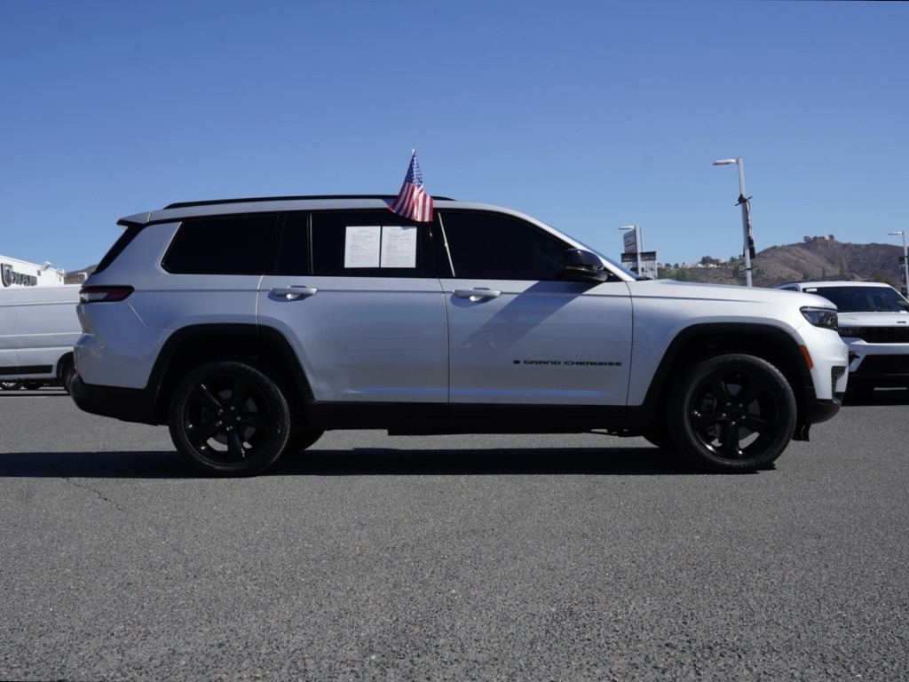 Used2023 Silver Zynith Certified. Jeep Grand Cherokee L 4D Sport Utility Altitude Clean CARFAX. KARR Bluetooth Security System Anti-Theft Vehicle Security System & Protection Program, Global Positioning Tracking System (S.W.A.T.) Guaranteed Protection & Recovery Program, Finishing Touch Complete Synthetic Paint Sealant Application & Protection Program, NitroFill Advantage Nitrogen Filled Tires & Protection Program, Genuine Mopar Wheel Locks Anti-Theft Vehicle Wheel Protection, ParkView® / Park Assist Rear Back–Up Camera, Blind–Spot and Cross–Path Detection, Bluetooth Car Audio Receiver, SiriusXM® Satelite Radio, Apple Car Play/Android Auto, Automatic Climate Control, Backup Camera, 18–Inch Aluminum Painted/Polished Wheels, Trailer Tow Package, Grand Cherokee L Altitude 4X4 SUV, 4D Sport Utility, 3.6L V6 24V VVT, 8-Speed Automatic, 4WD, Silver Zynith, Global Black w/Capri Leatherette Seats or Capri Leatherette w/Axis II Seats, 115V Auxiliary Power Outlet, 180 Amp Alternator, 3 Rear Seat Head Restraints, 3.45 Rear Axle Ratio, 3rd Row Charge-Only USB Ports, 3rd row seats: split-bench, 4-Wheel Disc Brakes, 6 Speakers, 7 & 4 Pin Wiring Harness, 7-Passenger Seating, ABS brakes, Air Conditioning, Alloy wheels, Altitude Appearance Package, Altitude Package, Anti-whiplash front head restraints, Automatic Headlamp Leveling System, Automatic temperature control, Black Headliner, Brake assist, Bumpers: body-color, Capri Leatherette/Suede Seats, Class IV Receiver Hitch, Compass, Delay-off headlights, Delete Laredo Badge, Driver door bin, Driver vanity mirror, Dual Exhaust Tips, Dual front impact airbags, Dual front side impact airbags, Electronic Stability Control, Emergency communication system, Four wheel independent suspension, Front anti-roll bar, Front Bucket Seats, Front Center Armrest w/Storage, Front dual zone A/C, Front reading lights, Fully automatic headlights, Gloss Black Exterior Accents, Heated door mirrors, Heated Front Seats, Heated Steering Wheel, Heavy-Duty Engine Cooling, Illuminated entry, Knee airbag, Low tire pressure warning, Manual Fold Seatbacks, Molded In Color Black/Gloss Black Roof Rails, Normal Duty Suspension, Occupant sensing airbag, Outside temperature display, Overhead airbag, Overhead console, Panic alarm, ParkView Rear Back-Up Camera, Passenger door bin, Passenger vanity mirror, Power door mirrors, Power driver seat, Power Liftgate, Power steering, Power Sunroof, Power Sunroof (DISC), Power windows, Quick Order Package 23B Altitude, Radio data system, Radio: Uconnect 5 w/8.4″ Display, Rain Sensitive Windshield Wipers, Rear air conditioning, Rear anti-roll bar, Rear Load Leveling Suspension, Rear reading lights, Rear window defroster, Rear window wiper, Reclining 3rd row seat, Remote keyless entry, Remote Start System, Security system, Selectable Tire Fill Alert, Speed control, Speed-Sensitive Wipers, Split folding rear seat, Spoiler, Steering wheel mounted audio controls, Tachometer, Telescoping steering wheel, Tilt steering wheel, Traction control, Trailer Hitch Zoom, Trailer Tow Group (B) (DISC), Trailer Tow Package, Trip computer, Variably intermittent wipers, Voltmeter, Wheels: 18″ x 8.0″ Fully Painted Aluminum 1, Wireless Charging Pad. Priced to Go! Unbeatable Prices: Our dynamic pricing ensures you get unbeatable prices on vehicles that not only fit your budget but also exceed your expectations. We understand the importance of getting the most value for your hard-earned money. Schedule Your Test Drive: Don’t miss out on this opportunity. Schedule your test drive now before the vehicle you desire is gone. Call us at (951) 291-9773 or visit our dealership at lakecdjr.com to experience the thrill of driving your new dream car. Join the ranks of our satisfied customers from Palm Springs, Lake Elsinore, San Jacinto, Sun City, Riverside, Menifee, Murrieta, Temecula, Moreno Valley, Perris, Escondido, Corona, and San Diego County. They’ve discovered the exceptional value we offer, and you can too. CAR