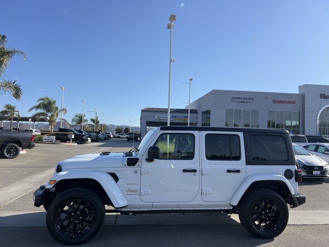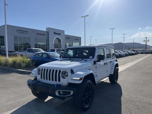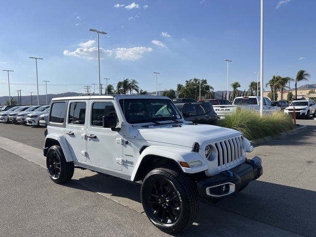 UsedThis 2023 Bright White Clearcoat Jeep Wrangler Sahara 4xe 4WD is well equipped and includes these features and benefits: Quick Order Package 29P Sahara, Trailer Tow & Aux Switch Group (700 Amp Maintenance Free Battery and Auxiliary Switches), 2.0L I4 DOHC, 3.73 Rear Axle Ratio, 4-Wheel Disc Brakes, 9 Speakers, ABS brakes, Air Conditioning, Alloy wheels, AM/FM radio: SiriusXM, Apple CarPlay/Android Auto, Auto-dimming Rear-View mirror, Automatic temperature control, Black 3-Piece Hard Top, Brake assist, Compass, Delay-off headlights, Driver door bin, Driver vanity mirror, Dual front impact airbags, Dual front side impact airbags, Electronic Stability Control, Emergency communication system: SiriusXM Guardian, Freedom Panel Storage Bag, Front anti-roll bar, Front Bucket Seats, Front Center Armrest w/Storage, Front dual zone A/C, Front fog lights, Front License Plate Bracket, Front reading lights, Fully automatic headlights, Garage door transmitter, Heated door mirrors, Illuminated entry, Integrated roll-over protection, Leather Shift Knob, Low tire pressure warning, Navigation System, Occupant sensing airbag, Outside temperature display, Panic alarm, ParkView Rear Back-Up Camera, Passenger door bin, Passenger vanity mirror, Power door mirrors, Power steering, Power windows, Premium McKinley Trimmed Seats, Radio data system, Radio: Uconnect 4C Nav w/8.4″ Display, Rear anti-roll bar, Rear reading lights, Rear seat center armrest, Rear Window Defroster, Rear Window Wiper/Washer, Remote keyless entry, Security system, Speed control, Split folding rear seat, Sport Suspension, Steering wheel mounted audio controls, Tachometer, Telescoping steering wheel, Tilt steering wheel, Traction control, Trip computer, Variably intermittent wipers, Voltmeter, and Wheels: 20″ x 8″ Fully Painted Aluminum. Apple Car Play/Android Auto, Automatic Climate Control, 2.0L I4 DOHC. CARFAX One-Owner. 8-Speed Automatic Clean CARFAX.We have many different makes and models available including a wide selection of cars, trucks, vans, and SUV’s. Lake Elsinore CDJR auto group has access to thousands of new and used vehicles which means we can find the right vehicle FOR YOU.