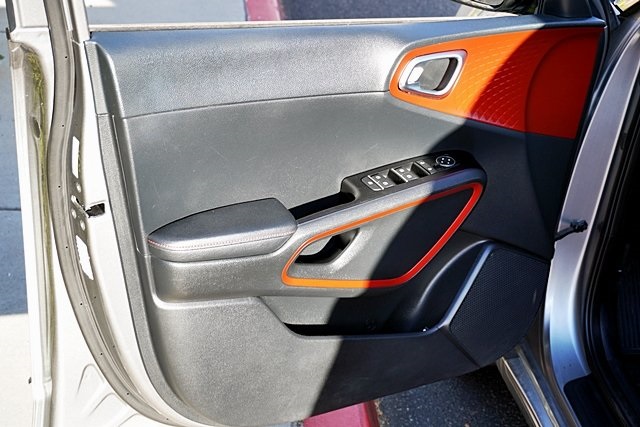 UsedThis 2023 Steel Gray Kia Soul GT-Line FWD is well equipped and includes these features and benefits: 18″ Alloy Wheels, 4-Wheel Disc Brakes, 6 Speakers, ABS brakes, Air Conditioning, Alloy wheels, AM/FM radio: SiriusXM, Apple CarPlay & Android Auto, Auto High-beam Headlights, Automatic temperature control, Brake assist, Bumpers: body-color, Carpeted Floor Mats, Combination Cloth/Artificial Leather Seat Trim, Compass, Delay-off headlights, Driver door bin, Driver vanity mirror, Dual front impact airbags, Dual front side impact airbags, Electronic Stability Control, Emergency communication system, Exterior Parking Camera Rear, Front anti-roll bar, Front Bucket Seats, Front Center Armrest, Front dual zone A/C, Front reading lights, Front wheel independent suspension, Fully automatic headlights, Heated door mirrors, Illuminated entry, Leather Shift Knob, Leather steering wheel, Low tire pressure warning, Navigation System, Occupant sensing airbag, Outside temperature display, Overhead airbag, Overhead console, Panic alarm, Passenger door bin, Passenger vanity mirror, Power door mirrors, Power moonroof, Power steering, Power windows, Radio data system, Radio: AM/FM/MP3/HD Audio System, Rear seat center armrest, Rear window defroster, Rear window wiper, Remote keyless entry, Speed control, Speed-sensing steering, Split folding rear seat, Sport steering wheel, Steering wheel mounted audio controls, Tachometer, Telescoping steering wheel, Tilt steering wheel, Traction control, Trip computer, Turn signal indicator mirrors, and Variably intermittent wipers. Apple Car Play/Android Auto, Automatic Climate Control, Backup Camera.CARFAX One-Owner.Poway Hyundai located at 13910 Poway Road, and Poway CDJR are both proud members of the Pedder Auto Group. Like our sister stores, we take great pride in serving all of San Diego County with friendly and professional sales, service and parts. We have one of the largest inventories of quality pre-owned vehicles in the county including a huge selection of Certified Pre-owned Hyundai products to choose from. We offer excellent financing, and a relaxed, no-pressure environment. All prices exclude government fees and taxes, any finance charges, any dealer document preparation charge, dealer installed options, and any emissions test charge. The equipment display is intended to be used as an informational listing of the factory stock equipment and features for this vehicle. Equipment and features may have changed for this vehicle. All information is believed to be accurate but is not guaranteed. For accurate information, pls see dealer for details. Some incentives are OAC and in lieu of others.