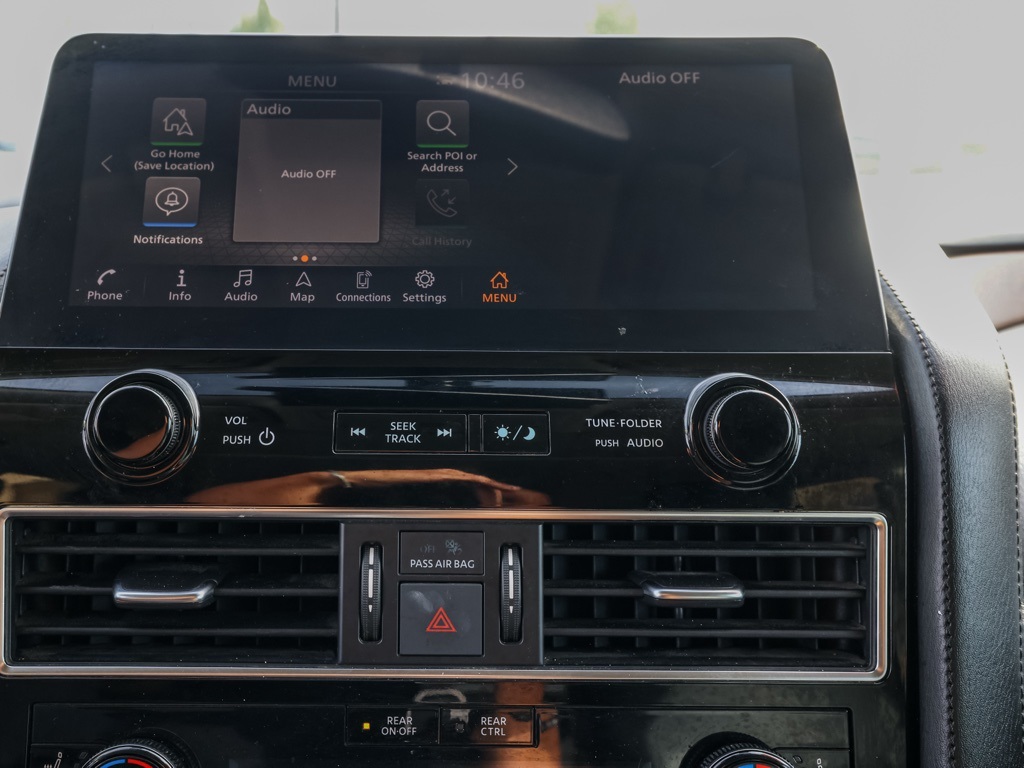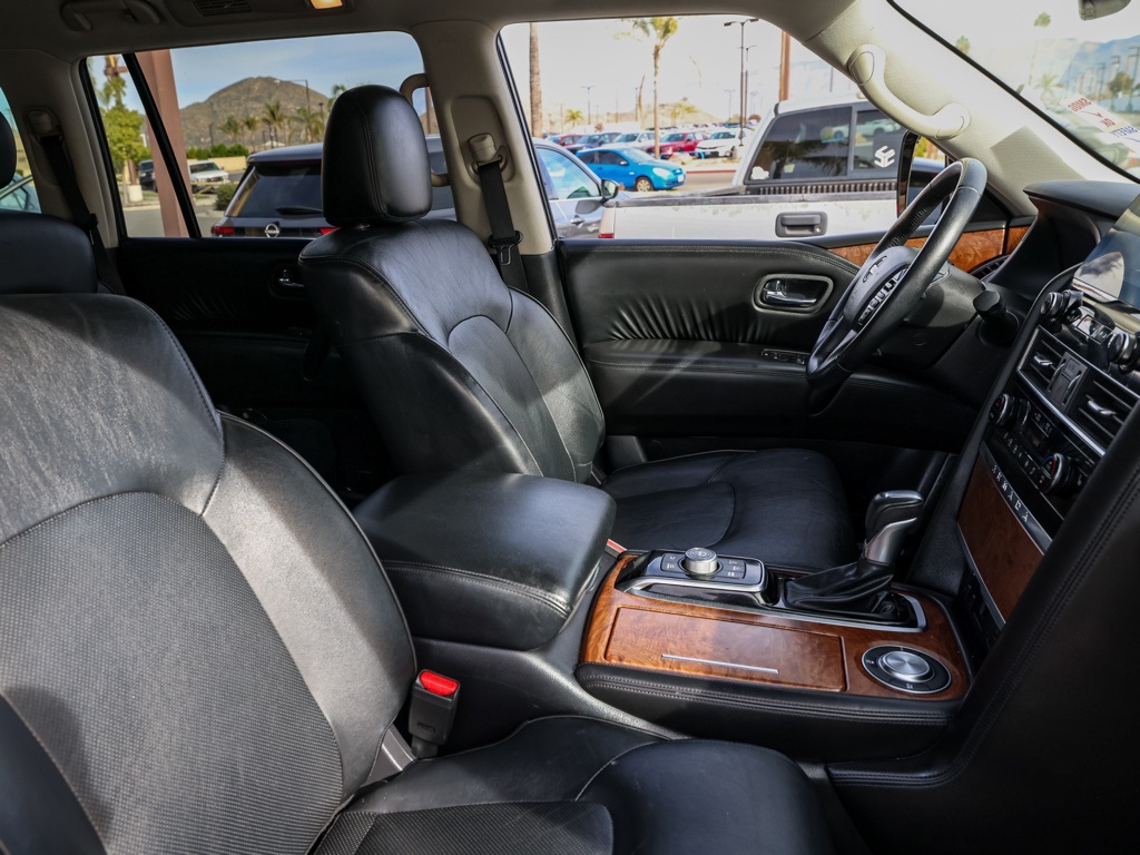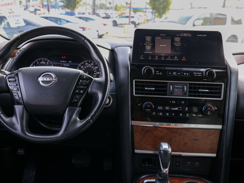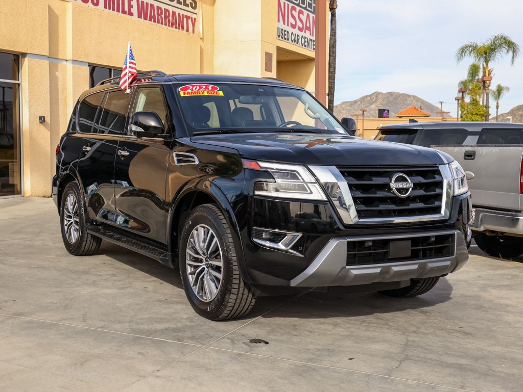 UsedThis 2023 Super Black Nissan Armada SL RWD is well equipped and includes these features and benefits: Captain’s Chairs Package (2nd Row Captain’s Chairs and 2nd Row Center Console w/Padded Armrest), 13 Speakers, 2.94 Axle Ratio, 3rd Row Carpeted Floor Mats – Captain Seat, 3rd row seats: split-bench, 4-Wheel Disc Brakes, 6-Speaker Audio System, ABS brakes, Air Conditioning, Alloy wheels, AM/FM radio: SiriusXM, Anti-whiplash front head restraints, Auto High-beam Headlights, Auto tilt-away steering wheel, Auto-dimming door mirrors, Auto-dimming Rear-View mirror, Auto-leveling suspension, Automatic temperature control, Bose 13-Speaker Premium Audio System, Brake assist, Bumpers: body-color, Delay-off headlights, Driver door bin, Driver vanity mirror, Dual front impact airbags, Dual front side impact airbags, Electronic Stability Control, Emergency communication system: NissanConnect Services, Exterior Parking Camera Rear, Four wheel independent suspension, Front anti-roll bar, Front Bucket Seats, Front Center Armrest, Front dual zone A/C, Front fog lights, Front reading lights, Fully automatic headlights, Garage door transmitter: HomeLink, Heated door mirrors, Heated Front Bucket Seats, Heated front seats, Heated steering wheel, Illuminated entry, Knee airbag, Leather Shift Knob, Leather-Appointed Seat Trim, Low tire pressure warning, Memory seat, Navigation System, NissanConnect featuring Apple CarPlay and Android Auto, Occupant sensing airbag, Outside temperature display, Overhead airbag, Overhead console, Panic alarm, Passenger door bin, Passenger vanity mirror, Power door mirrors, Power driver seat, Power Liftgate, Power moonroof, Power passenger seat, Power steering, Power windows, Premium audio system: Bose, Radio: NissanConnect w/SiriusXM, Rear air conditioning, Rear anti-roll bar, Rear reading lights, Rear seat center armrest, Rear window defroster, Rear window wiper, Reclining 3rd row seat, Remote keyless entry, Security system, Speed control, Speed-sensing steering, Speed-Sensitive Wipers, Split folding rear seat, Spoiler, Steering wheel memory, Steering wheel mounted audio controls, Tachometer, Telescoping steering wheel, Tilt steering wheel, Traction control, Trip computer, Turn signal indicator mirrors, Variably intermittent wipers, Voltmeter, and Wheels: 20″ x 8J Painted Alloy Plus 3 Month 3000 Mile Warranty. See Dealer For Details. We have many different makes and models available including a wide selection of cars, trucks, vans, and SUV’s. Don’t see something you like! Pedder Nissan has access to thousands of new and used vehicles which means we can find the right vehicle FOR YOU. The Advertised Price for any vehicle does not include dealer installed accessories. These accessories can be purchased for an additional cost. All vehicles subject to prior sale. All prices plus government fees and taxes, any finance charges, any dealer document processing charges ($85), any electronic filing charge, and any emission testing charge. Offers and prices not available to other dealers, wholesalers, or brokers. This price may not be combined with any other offer. While every reasonable effort is made to ensure the accuracy of this information, we are not responsible for any errors or omissions contained on these pages. We are proud to serve the Hemet area from our Auto Mall Location. We work with most Credit Unions and we offer Military and First Responder discounts. Please verify all pricing, vehicle equipment, and any additional information in question with Pedder Nissan (951) 766-1446. Apple Car Play/Android Auto, Automatic Climate Control, Backup Camera. CARFAX One-Owner. 2023 Nissan Armada SLClean CARFAX. 14/19 City/Highway MPG