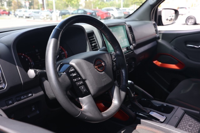 UsedThis 2023 Super Black Nissan Frontier PRO-X RWD is well equipped and includes these features and benefits: PRO Convenience Package (Heated Steering Wheel, Intelligent Around View Monitor (I-AVM), and Wireless Charging For Personal Devices), Tow Package: Hitch, Tow Harness, 17″ Alloy Wheels, 3.692 Axle Ratio, 4-Wheel Disc Brakes, 6 Speakers, ABS brakes, Air Conditioning, Alloy wheels, AM/FM radio: SiriusXM, Anti-whiplash front head restraints, Automatic temperature control, Brake assist, Bumpers: body-color, Carpeted Floor Mats, Delay-off headlights, Driver door bin, Driver vanity mirror, Dual front impact airbags, Dual front side impact airbags, Electronic Stability Control, Electronic Tailgate Lock, Emergency communication system: NissanConnect Services, Front anti-roll bar, Front Bucket Seats, Front Center Armrest, Front dual zone A/C, Front fog lights, Front reading lights, Front wheel independent suspension, Fully automatic headlights, Illuminated entry, Knee airbag, Leather Shift Knob, Low tire pressure warning, Navigation system: Nissan Navigation with Voice Recognition, Occupant sensing airbag, Off-Road Style Step Rails, Overhead airbag, Overhead console, Panic alarm, Passenger door bin, Passenger vanity mirror, Power door mirrors, Power driver seat, Power steering, Power windows, PRO Embroidered Premium Cloth Seat Trim, PRO-X Mud Flaps, Radio data system, Radio: SXM/AM/FM/AUX/USB Audio System w/6 Speakers, Rear anti-roll bar, Rear seat center armrest, Rear step bumper, Remote keyless entry, Security system, Speed control, Speed-sensing steering, Split folding rear seat, Steering wheel mounted audio controls, Tachometer, Tilt steering wheel, Traction control, Trip computer, Variably intermittent wipers, and Voltmeter.Priced below KBB Fair Purchase Price!We have many different makes and models available including a wide selection of cars, trucks, vans, and SUVs. Raceway Nissan in Riverside County has access to thousands of new and used vehicles which means we can find the right vehicle for you and your family. We are proud to serve the city of Riverside, all of the Metro Riverside County area, and the Inland Empire from our location in Moreno Valley. We are conveniently located in Riverside near the cities of San Bernardino, Redlands, Ontario, Corona, Perris, Beaumont, Temecula, Hemet and many others. We offer military discounts and work with many Credit Unions.