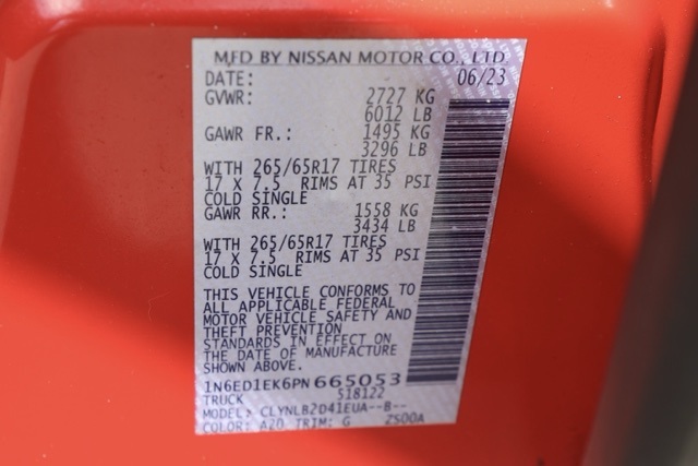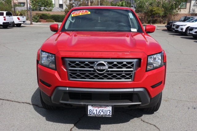 UsedThis 2023 Red Alert Nissan Frontier SV 4WD is well equipped and includes these features and benefits: 4WD, 17″ Alloy Wheels, 3.692 Axle Ratio, 4-Wheel Disc Brakes, 6 Speakers, ABS brakes, Air Conditioning, Alloy wheels, AM/FM radio: SiriusXM, Anti-whiplash front head restraints, Apple CarPlay/Android Auto, Brake assist, Bumpers: body-color, Carpeted Floor Mats, Delay-off headlights, Driver door bin, Driver vanity mirror, Dual front impact airbags, Dual front side impact airbags, Electronic Stability Control, Front anti-roll bar, Front Bucket Seats, Front Center Armrest, Front reading lights, Front wheel independent suspension, Fully automatic headlights, Illuminated entry, Knee airbag, Low tire pressure warning, Occupant sensing airbag, Overhead airbag, Panic alarm, Passenger door bin, Passenger vanity mirror, Power door mirrors, Power driver seat, Power steering, Power windows, Premium Cloth Seat Trim, Radio data system, Radio: SXM/AM/FM/AUX/USB Audio System w/6 Speakers, Rear anti-roll bar, Rear seat center armrest, Rear step bumper, Remote keyless entry, Security system, Speed control, Speed-sensing steering, Split folding rear seat, Steering wheel mounted audio controls, Tachometer, Tilt steering wheel, Traction control, Trip computer, Variably intermittent wipers, and Voltmeter.Priced below KBB Fair Purchase Price!CARFAX One-Owner. Clean CARFAX.We have many different makes and models available including a wide selection of cars, trucks, vans, and SUVs. Raceway Nissan in Riverside County has access to thousands of new and used vehicles which means we can find the right vehicle for you and your family. We are proud to serve the city of Riverside, all of the Metro Riverside County area, and the Inland Empire from our location in Moreno Valley. We are conveniently located in Riverside near the cities of San Bernardino, Redlands, Ontario, Corona, Perris, Beaumont, Temecula, Hemet and many others. We offer military discounts and work with many Credit Unions.