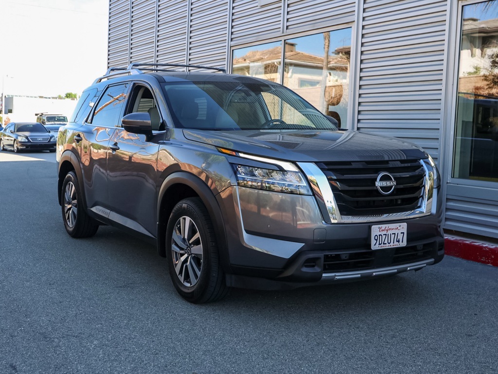 UsedThis 2023 Gun Metallic Nissan Pathfinder SL FWD is well equipped and includes these features and benefits: 18″ Machined Alloy Wheels, 3rd row seats: bench, 4-Wheel Disc Brakes, 6 Speakers, ABS brakes, Air Conditioning, Alloy wheels, AM/FM radio: SiriusXM, Auto High-beam Headlights, Auto-dimming Rear-View mirror, Automatic temperature control, Axle Ratio: 4.334, Bench Seat Carpeted Floor Mats (Set of 4), Black Splash Guards (Set of 4), Brake assist, Bumpers: body-color, Cross Bars, Delay-off headlights, Driver door bin, Driver vanity mirror, Dual front impact airbags, Dual front side impact airbags, Electronic Stability Control, Emergency communication system: NissanConnect Services, Exterior Parking Camera Rear, Four wheel independent suspension, Front anti-roll bar, Front Bucket Seats, Front Center Armrest, Front dual zone A/C, Front reading lights, Fully automatic headlights, Garage door transmitter: HomeLink, Heated door mirrors, Heated Front Bucket Seats, Heated front seats, Heated steering wheel, Illuminated entry, Knee airbag, Leather Seating Surfaces, Leather steering wheel, Low tire pressure warning, Navigation system: NissanConnect Navigation, NissanConnect w/Navigation & Services, Occupant sensing airbag, Outside temperature display, Overhead airbag, Overhead console, Panic alarm, Passenger door bin, Passenger vanity mirror, Power door mirrors, Power driver seat, Power Liftgate, Power passenger seat, Power steering, Power windows, Radio data system, Radio: AM/FM Audio System, Rear air conditioning, Rear anti-roll bar, Rear reading lights, Rear seat center armrest, Rear side impact airbag, Rear window defroster, Rear window wiper, Reclining 3rd row seat, Remote keyless entry, Security system, Speed control, Speed-sensing steering, Split folding rear seat, Spoiler, Steering wheel mounted audio controls, Tachometer, Telescoping steering wheel, Tilt steering wheel, Traction control, Trip computer, Turn signal indicator mirrors, and Variably intermittent wipers.Odometer is 1564 miles below market average! 20/27 City/Highway MPG CARFAX One-Owner. Clean CARFAX.We have many different makes and models available including a wide selection of cars, trucks, vans, and SUVs. Raceway Nissan in Riverside County has access to thousands of new and used vehicles which means we can find the right vehicle for you and your family. We are proud to serve the city of Riverside, all of the Metro Riverside County area, and the Inland Empire from our location in Moreno Valley. We are conveniently located in Riverside near the cities of San Bernardino, Redlands, Ontario, Corona, Perris, Beaumont, Temecula, Hemet and many others. We offer military discounts and work with many Credit Unions.