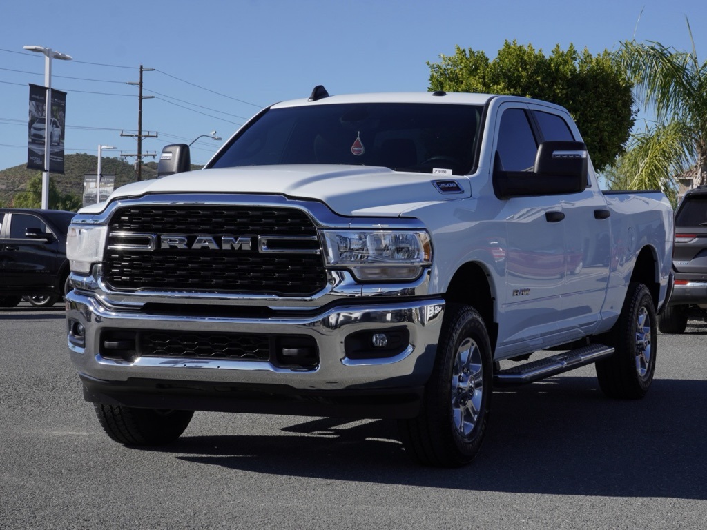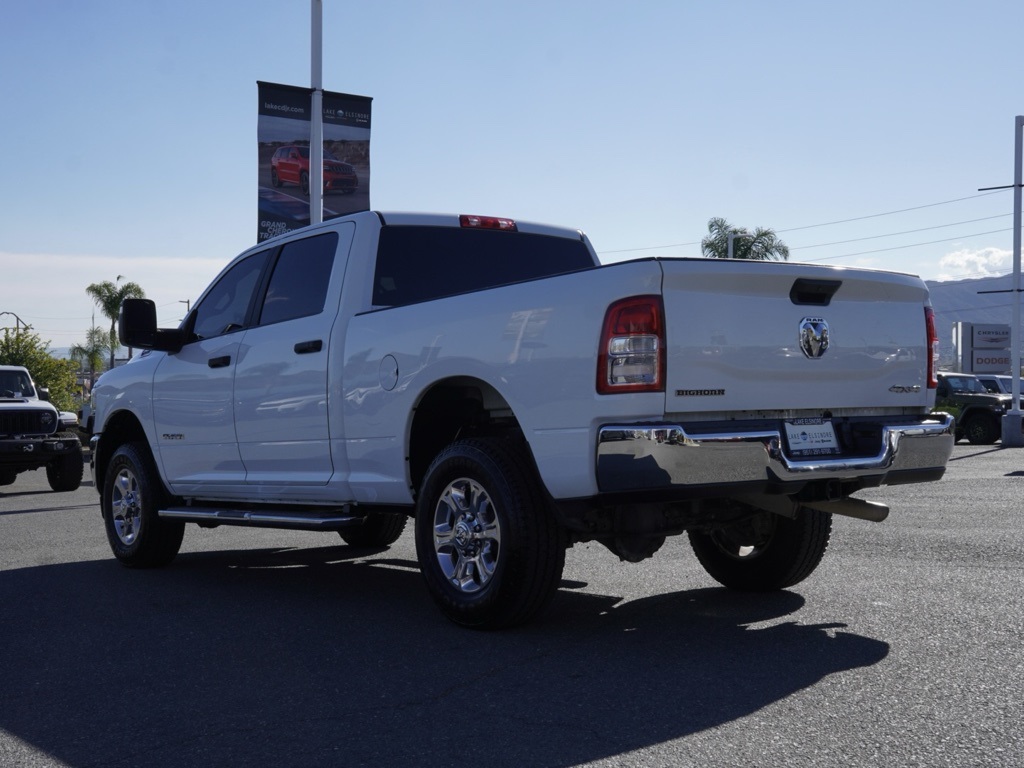 Used2023 Bright White Clearcoat Ram 2500 4D Crew Cab Big Horn Global Positioning Tracking System (S.W.A.T.) Guaranteed Protection & Recovery Program, Finishing Touch Complete Synthetic Paint Sealant Application & Protection Program, NitroFill Advantage Nitrogen Filled Tires & Protection Program, Genuine Mopar Wheel Locks Anti-Theft Vehicle Wheel Protection, ParkView® / Park Assist Rear Back–Up Camera, Blind–Spot and Cross–Path Detection, Bluetooth Car Audio Receiver, SiriusXM® Satelite Radio, Apple Car Play/Android Auto, Automatic Climate Control, Backup Camera, Global Positioning System (S.W.A.T. Anti-Theft Vehicle Security System.Priced to Go! Unbeatable Prices: Our dynamic pricing ensures you get unbeatable prices on vehicles that not only fit your budget but also exceed your expectations. We understand the importance of getting the most value for your hard-earned money. Schedule Your Test Drive: Don’t miss out on this opportunity. Schedule your test drive now before the vehicle you desire is gone. Call us at (951) 291-9773 or visit our dealership at lakecdjr.com to experience the thrill of driving your new dream car. Join the ranks of our satisfied customers from Palm Springs, Lake Elsinore, San Jacinto, Sun City, Riverside, Menifee, Murrieta, Temecula, Moreno Valley, Perris, Escondido, Corona, and San Diego County. They’ve discovered the exceptional value we offer, and you can too.All vehicles subject to prior sale. The estimated selling price that appears after calculating dealer offers, financing and discounts is for informational purposes, only. You may not qualify for all the offers, incentives or financing on this page. Offers, incentives, or financing are subject to expiration, credit worthiness and other restrictions. See Lake Elsinore Chrysler Dodge Jeep Ram for qualifications and complete details or by calling (951) 291-9777. All prices plus government fees and taxes, any finance charges, $85 documentary fee, $33 electronic vehicle registration fee, any emission testing charge and $1.75 per new tire state tire fee. Offers and prices are not available to other dealers, wholesalers, or brokers. For out-of-state purchase customers, customers must be present to purchase. If shipping is required, dealership must facilitate, no exceptions. The sales price may not be combined with any other offer. The Advertised Price for any/all vehicles offered for sale does not include optional dealer pre-installed accessories or commercial upfits or aftermarket lift kit packages which can be purchased for an additional cost. Contact us for additional information at (951) 291-9773. All prices will be honored as cash.8-Speed Automatic 4WD 2023 Ram 2500 Big Horn