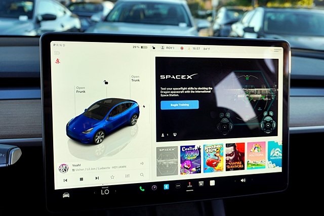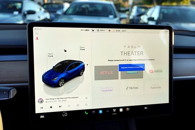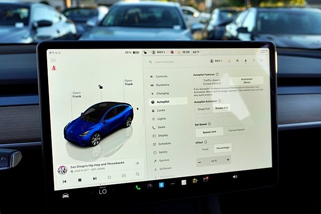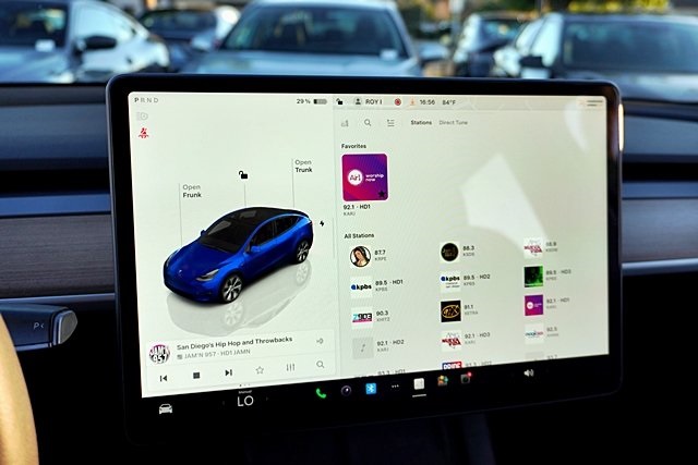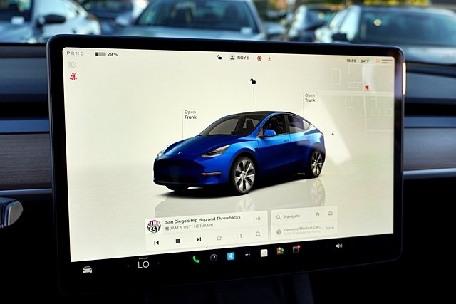 UsedThis 2023 Deep Blue Metallic Tesla Model Y Long Range AWD is well equipped and includes these features and benefits: 14 Speakers, 4-Wheel Disc Brakes, 5 Seat Interior, 9.0 Axle Ratio, ABS brakes, Air Conditioning, Alloy wheels, Audio memory, Auto High-beam Headlights, Auto tilt-away steering wheel, Auto-dimming door mirrors, Auto-dimming Rear-View mirror, Automatic temperature control, Brake assist, Bumpers: body-color, Compass, Delay-off headlights, Driver door bin, Driver vanity mirror, Dual front impact airbags, Dual front side impact airbags, Electronic Stability Control, Emergency communication system, Exterior Parking Camera Rear, Four wheel independent suspension, Front anti-roll bar, Front Bucket Seats, Front Center Armrest, Front dual zone A/C, Front fog lights, Front reading lights, Fully automatic headlights, Genuine wood dashboard insert, Heated door mirrors, Heated front seats, Heated rear seats, Heated steering wheel, HVAC memory, Illuminated entry, Knee airbag, Lane Departure Warning System, Low tire pressure warning, Memory seat, Navigation System, Occupant sensing airbag, Outside temperature display, Overhead airbag, Passenger door bin, Passenger vanity mirror, Power door mirrors, Power driver seat, Power Liftgate, Power passenger seat, Power steering, Power windows, Premium Audio System, Radio data system, Rain sensing wipers, Rear reading lights, Rear seat center armrest, Rear window defroster, Security system, Speed control, Speed-sensing steering, Split folding rear seat, Steering wheel memory, Steering wheel mounted A/C controls, Steering wheel mounted audio controls, Telescoping steering wheel, Tilt steering wheel, Traction control, Trip computer, Variably intermittent wipers, Vegan Leather Seat Trim, and Wheels: 19″ x 9.5″ Gemini. Apple Car Play/Android Auto, Automatic Climate Control, Backup Camera.CARFAX One-Owner.Poway Hyundai located at 13910 Poway Road, and Poway CDJR are both proud members of the Pedder Auto Group. Like our sister stores, we take great pride in serving all of San Diego County with friendly and professional sales, service and parts. We have one of the largest inventories of quality pre-owned vehicles in the county including a huge selection of Certified Pre-owned Hyundai products to choose from. We offer excellent financing, and a relaxed, no-pressure environment. All prices exclude government fees and taxes, any finance charges, any dealer document preparation charge, dealer installed options, and any emissions test charge. The equipment display is intended to be used as an informational listing of the factory stock equipment and features for this vehicle. Equipment and features may have changed for this vehicle. All information is believed to be accurate but is not guaranteed. For accurate information, pls see dealer for details. Some incentives are OAC and in lieu of others.
