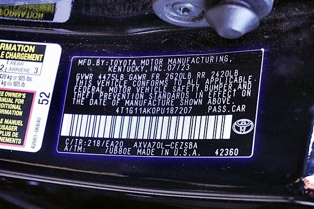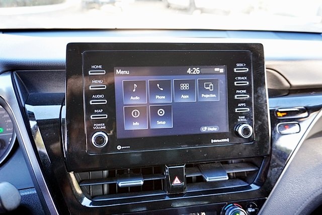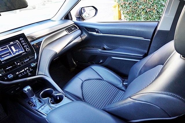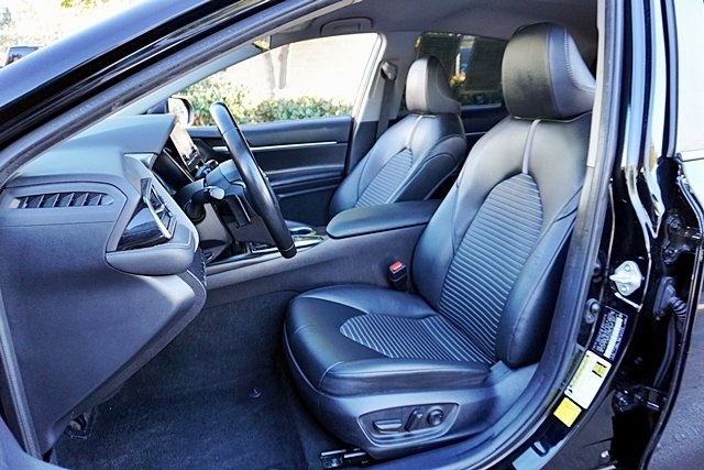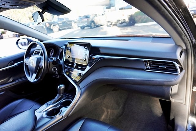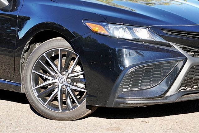 UsedThis 2023 Midnight Black Metallic Toyota Camry SE FWD is well equipped and includes these features and benefits: Black Artificial Leather, 4-Wheel Disc Brakes, 6 Speakers, 8.0J x 18″ Alloy Wheels, ABS brakes, Air Conditioning, Alloy wheels, AM/FM radio: SiriusXM, Apple CarPlay/Android Auto, Auto High-beam Headlights, Automatic temperature control, Brake assist, Bumpers: body-color, Delay-off headlights, Driver door bin, Driver vanity mirror, Dual front impact airbags, Dual front side impact airbags, Electronic Stability Control, Emergency communication system: Safety Connect (1-year trial), Exterior Parking Camera Rear, Four wheel independent suspension, Front anti-roll bar, Front Bucket Seats, Front Center Armrest, Front dual zone A/C, Front reading lights, Fully automatic headlights, Heated door mirrors, Illuminated entry, Knee airbag, Leather steering wheel, Low tire pressure warning, Occupant sensing airbag, Outside temperature display, Overhead airbag, Overhead console, Panic alarm, Passenger door bin, Passenger vanity mirror, Power door mirrors, Power driver seat, Power steering, Power windows, Radio data system, Radio: Audio, Rear anti-roll bar, Rear seat center armrest, Rear side impact airbag, Rear window defroster, Remote keyless entry, Security system, Speed control, Speed-sensing steering, Split folding rear seat, Spoiler, Sport SofTex Seat Trim w/Fabric Inserts, Steering wheel mounted audio controls, Tachometer, Telescoping steering wheel, Tilt steering wheel, Traction control, Trip computer, Turn signal indicator mirrors, and Variably intermittent wipers Prices shown are manufacturer suggested retail price only and do not include taxes, license, documentation fee, smog fee, dealer installed options and other applicable charges. Vehicles are subject to prior sale. Vehicle information is based on standard equipment and may vary from vehicle to vehicle. Not responsible for typographical errors. Priced below KBB Fair Purchase Price!28/39 City/Highway MPG