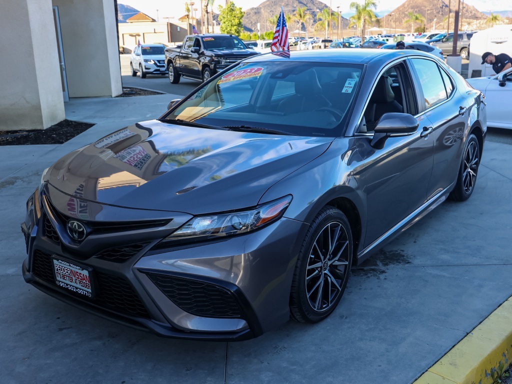 UsedThis 2023 Gray Toyota Camry SE FWD is well equipped and includes these features and benefits: Black Artificial Leather, 4-Wheel Disc Brakes, 6 Speakers, 8.0J x 18″ Alloy Wheels, ABS brakes, Air Conditioning, Alloy wheels, AM/FM radio: SiriusXM, Apple CarPlay/Android Auto, Auto High-beam Headlights, Automatic temperature control, Brake assist, Bumpers: body-color, Delay-off headlights, Driver door bin, Driver vanity mirror, Dual front impact airbags, Dual front side impact airbags, Electronic Stability Control, Emergency communication system: Safety Connect (1-year trial), Exterior Parking Camera Rear, Four wheel independent suspension, Front anti-roll bar, Front Bucket Seats, Front Center Armrest, Front dual zone A/C, Front reading lights, Fully automatic headlights, Heated door mirrors, Illuminated entry, Knee airbag, Leather steering wheel, Low tire pressure warning, Occupant sensing airbag, Outside temperature display, Overhead airbag, Overhead console, Panic alarm, Passenger door bin, Passenger vanity mirror, Power door mirrors, Power driver seat, Power steering, Power windows, Radio data system, Radio: Audio, Rear anti-roll bar, Rear seat center armrest, Rear side impact airbag, Rear window defroster, Remote keyless entry, Security system, Speed control, Speed-sensing steering, Split folding rear seat, Spoiler, Sport SofTex Seat Trim w/Fabric Inserts, Steering wheel mounted audio controls, Tachometer, Telescoping steering wheel, Tilt steering wheel, Traction control, Trip computer, Turn signal indicator mirrors, and Variably intermittent wipers Plus 3 Month 3000 Mile Warranty. See Dealer For Details. We have many different makes and models available including a wide selection of cars, trucks, vans, and SUV’s. Don’t see something you like! Pedder Nissan has access to thousands of new and used vehicles which means we can find the right vehicle FOR YOU. The Advertised Price for any vehicle does not include dealer installed accessories. These accessories can be purchased for an additional cost. All vehicles subject to prior sale. All prices plus government fees and taxes, any finance charges, any dealer document processing charges ($85), any electronic filing charge, and any emission testing charge. Offers and prices not available to other dealers, wholesalers, or brokers. This price may not be combined with any other offer. While every reasonable effort is made to ensure the accuracy of this information, we are not responsible for any errors or omissions contained on these pages. We are proud to serve the Hemet area from our Auto Mall Location. We work with most Credit Unions and we offer Military and First Responder discounts. Please verify all pricing, vehicle equipment, and any additional information in question with Pedder Nissan (951) 766-1446. Apple Car Play/Android Auto, Automatic Climate Control, Backup Camera, Black Artificial Leather. CARFAX One-Owner. 2023 Toyota Camry SEClean CARFAX. 28/39 City/Highway MPG