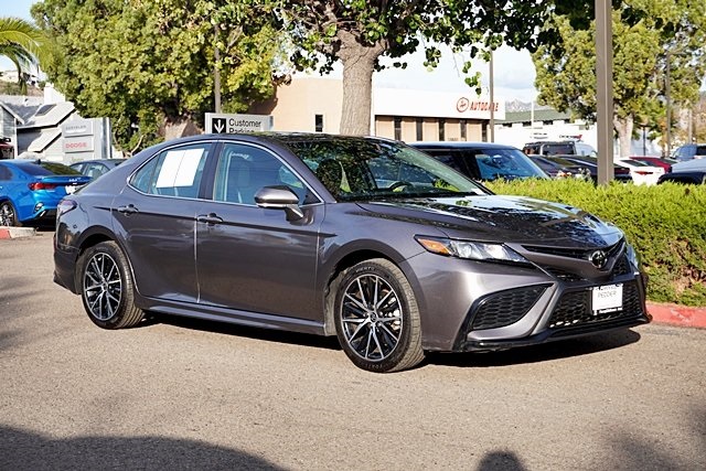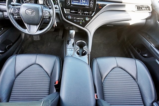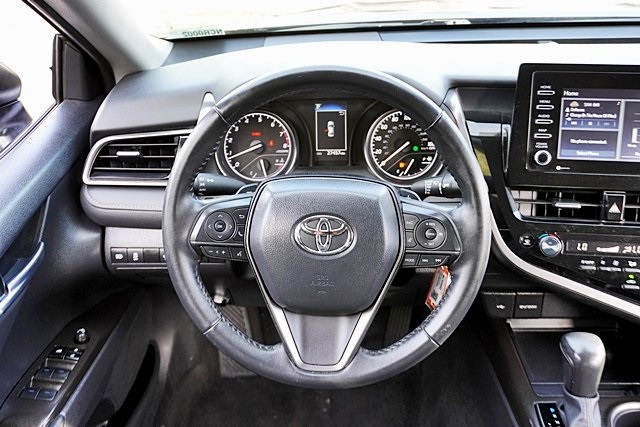 UsedThis 2023 Gray Toyota Camry SE FWD is well equipped and includes these features and benefits: Black Artificial Leather, 4-Wheel Disc Brakes, 6 Speakers, 8.0J x 18″ Alloy Wheels, ABS brakes, Air Conditioning, Alloy wheels, AM/FM radio: SiriusXM, Apple CarPlay/Android Auto, Auto High-beam Headlights, Automatic temperature control, Brake assist, Bumpers: body-color, Delay-off headlights, Driver door bin, Driver vanity mirror, Dual front impact airbags, Dual front side impact airbags, Electronic Stability Control, Emergency communication system: Safety Connect (1-year trial), Exterior Parking Camera Rear, Four wheel independent suspension, Front anti-roll bar, Front Bucket Seats, Front Center Armrest, Front dual zone A/C, Front reading lights, Fully automatic headlights, Heated door mirrors, Illuminated entry, Knee airbag, Leather steering wheel, Low tire pressure warning, Occupant sensing airbag, Outside temperature display, Overhead airbag, Overhead console, Panic alarm, Passenger door bin, Passenger vanity mirror, Power door mirrors, Power driver seat, Power steering, Power windows, Radio data system, Radio: Audio, Rear anti-roll bar, Rear seat center armrest, Rear side impact airbag, Rear window defroster, Remote keyless entry, Security system, Speed control, Speed-sensing steering, Split folding rear seat, Spoiler, Sport SofTex Seat Trim w/Fabric Inserts, Steering wheel mounted audio controls, Tachometer, Telescoping steering wheel, Tilt steering wheel, Traction control, Trip computer, Turn signal indicator mirrors, and Variably intermittent wipers Prices shown are manufacturer suggested retail price only and do not include taxes, license, documentation fee, smog fee, dealer installed options and other applicable charges. Vehicles are subject to prior sale. Vehicle information is based on standard equipment and may vary from vehicle to vehicle. Not responsible for typographical errors. Priced below KBB Fair Purchase Price!28/39 City/Highway MPG