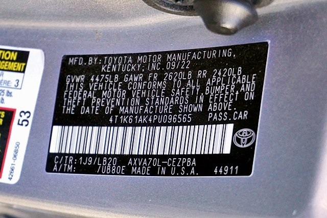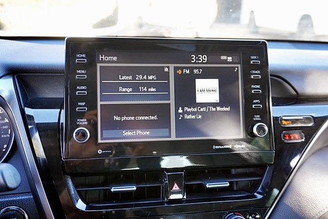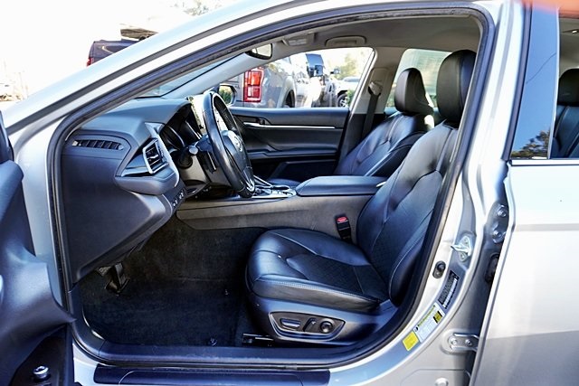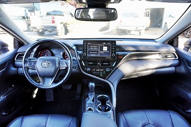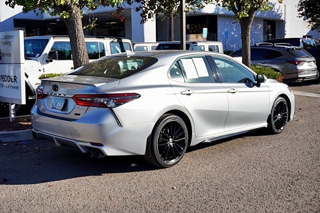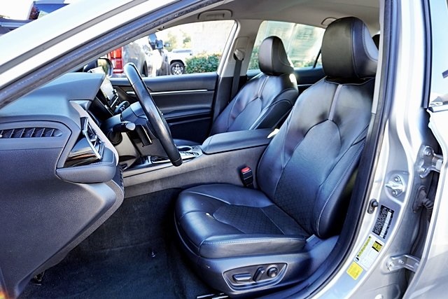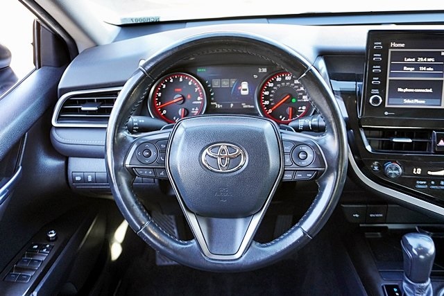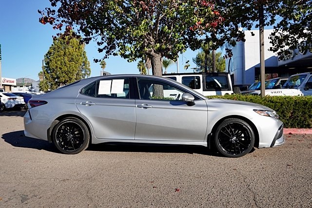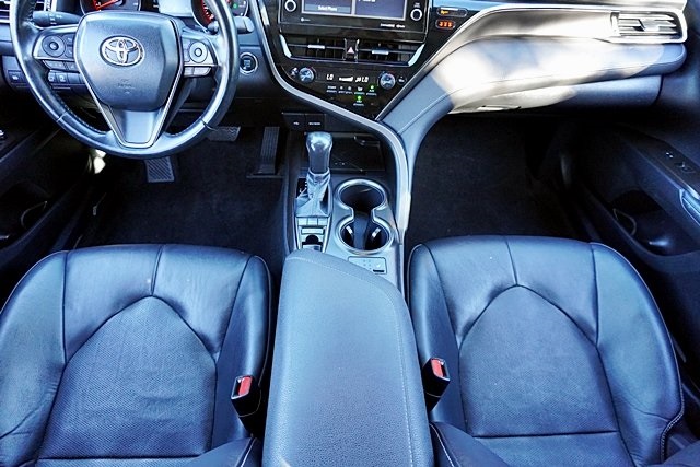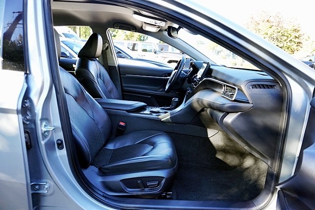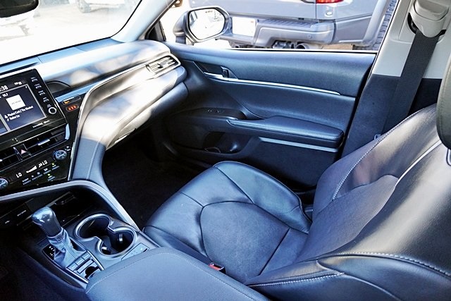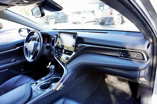 UsedThis 2023 Silver Toyota Camry XSE FWD is well equipped and includes these features and benefits: Black Leather, 4-Wheel Disc Brakes, 6 Speakers, ABS brakes, Air Conditioning, Alloy wheels, AM/FM radio: SiriusXM, Apple CarPlay/Android Auto, Auto High-beam Headlights, Auto-dimming Rear-View mirror, Automatic temperature control, Brake assist, Bumpers: body-color, Delay-off headlights, Driver door bin, Driver vanity mirror, Dual front impact airbags, Dual front side impact airbags, Electronic Stability Control, Emergency communication system: Safety Connect (1-year trial), Exterior Parking Camera Rear, Four wheel independent suspension, Front anti-roll bar, Front Bucket Seats, Front Center Armrest, Front dual zone A/C, Front reading lights, Fully automatic headlights, Garage door transmitter: HomeLink, Heated door mirrors, Heated front seats, Illuminated entry, Knee airbag, Leather steering wheel, Low tire pressure warning, Multi-Stage Heated Front Bucket Seats, Occupant sensing airbag, Outside temperature display, Overhead airbag, Overhead console, Panic alarm, Passenger door bin, Passenger vanity mirror, Perforated Leather Seat Trim, Power door mirrors, Power driver seat, Power passenger seat, Power steering, Power windows, Radio data system, Radio: Audio Plus, Rear anti-roll bar, Rear reading lights, Rear seat center armrest, Rear side impact airbag, Rear window defroster, Remote keyless entry, Security system, Speed control, Speed-sensing steering, Split folding rear seat, Spoiler, Steering wheel mounted audio controls, Tachometer, Telescoping steering wheel, Tilt steering wheel, Traction control, Trip computer, Turn signal indicator mirrors, Variably intermittent wipers, and Wheels: 8.0J x 19″ Alloy Prices shown are manufacturer suggested retail price only and do not include taxes, license, documentation fee, smog fee, dealer installed options and other applicable charges. Vehicles are subject to prior sale. Vehicle information is based on standard equipment and may vary from vehicle to vehicle. Not responsible for typographical errors. CARFAX One-Owner. Priced below KBB Fair Purchase Price!27/38 City/Highway MPG