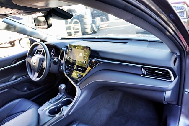 UsedThis 2023 Predawn Gray Mica Toyota Camry SE FWD is well equipped and includes these features and benefits: Convenience Package (Auto-Dimming Rear-View Mirror, HomeLink, and Smart Key System w/Push Button Start), Black w/Fabric Seat Trim, 4-Wheel Disc Brakes, 6 Speakers, 8.0J x 18″ Alloy Wheels, ABS brakes, Air Conditioning, Alloy wheels, AM/FM radio: SiriusXM, Apple CarPlay/Android Auto, Auto High-beam Headlights, Automatic temperature control, Brake assist, Bumpers: body-color, Delay-off headlights, Driver door bin, Driver vanity mirror, Dual front impact airbags, Dual front side impact airbags, Electronic Stability Control, Emergency communication system: Safety Connect (1-year trial), Exterior Parking Camera Rear, Four wheel independent suspension, Front anti-roll bar, Front Bucket Seats, Front Center Armrest, Front dual zone A/C, Front reading lights, Fully automatic headlights, Heated door mirrors, Illuminated entry, Knee airbag, Leather steering wheel, Low tire pressure warning, Occupant sensing airbag, Outside temperature display, Overhead airbag, Overhead console, Panic alarm, Passenger door bin, Passenger vanity mirror, Power door mirrors, Power driver seat, Power steering, Power windows, Radio data system, Radio: Audio, Rear anti-roll bar, Rear seat center armrest, Rear side impact airbag, Rear window defroster, Remote keyless entry, Security system, Speed control, Speed-sensing steering, Split folding rear seat, Spoiler, Sport SofTex Seat Trim w/Fabric Inserts, Steering wheel mounted audio controls, Tachometer, Telescoping steering wheel, Tilt steering wheel, Traction control, Trip computer, Turn signal indicator mirrors, and Variably intermittent wipers Prices shown are manufacturer suggested retail price only and do not include taxes, license, documentation fee, smog fee, dealer installed options and other applicable charges. Vehicles are subject to prior sale. Vehicle information is based on standard equipment and may vary from vehicle to vehicle. Not responsible for typographical errors. CARFAX One-Owner. Priced below KBB Fair Purchase Price!28/39 City/Highway MPG
