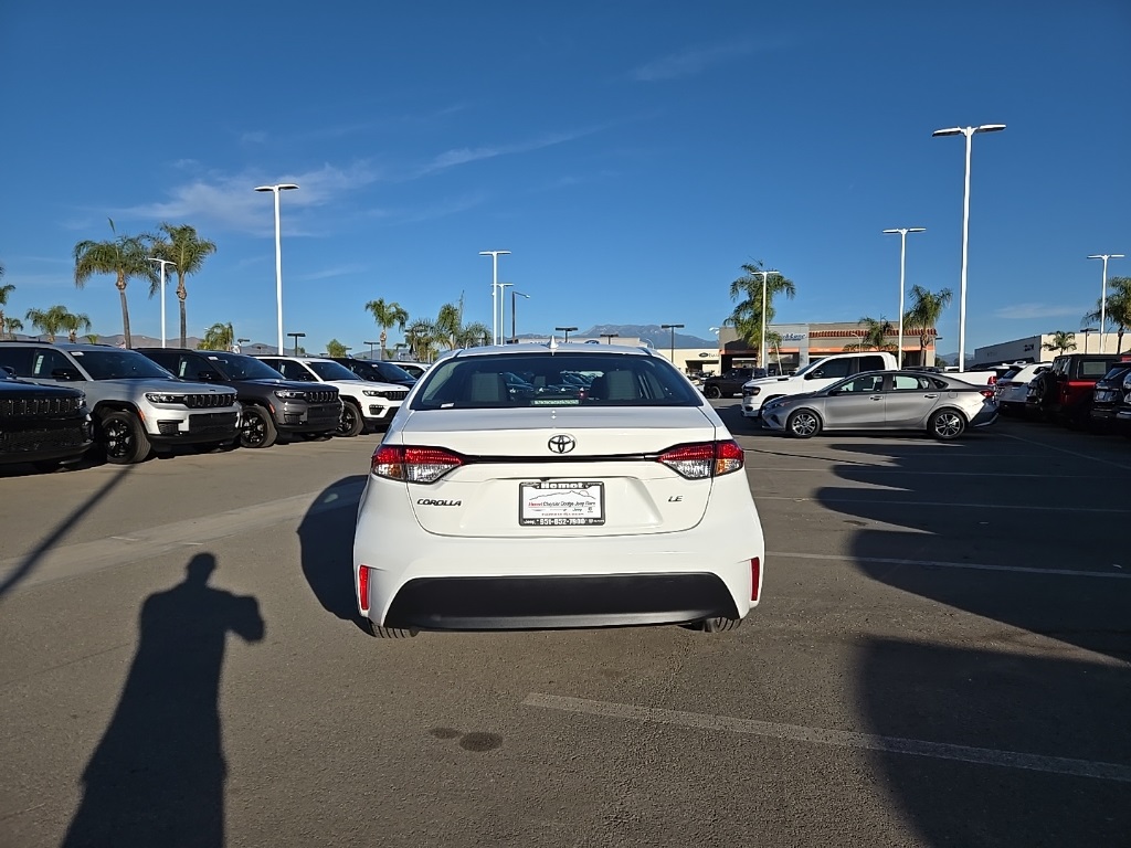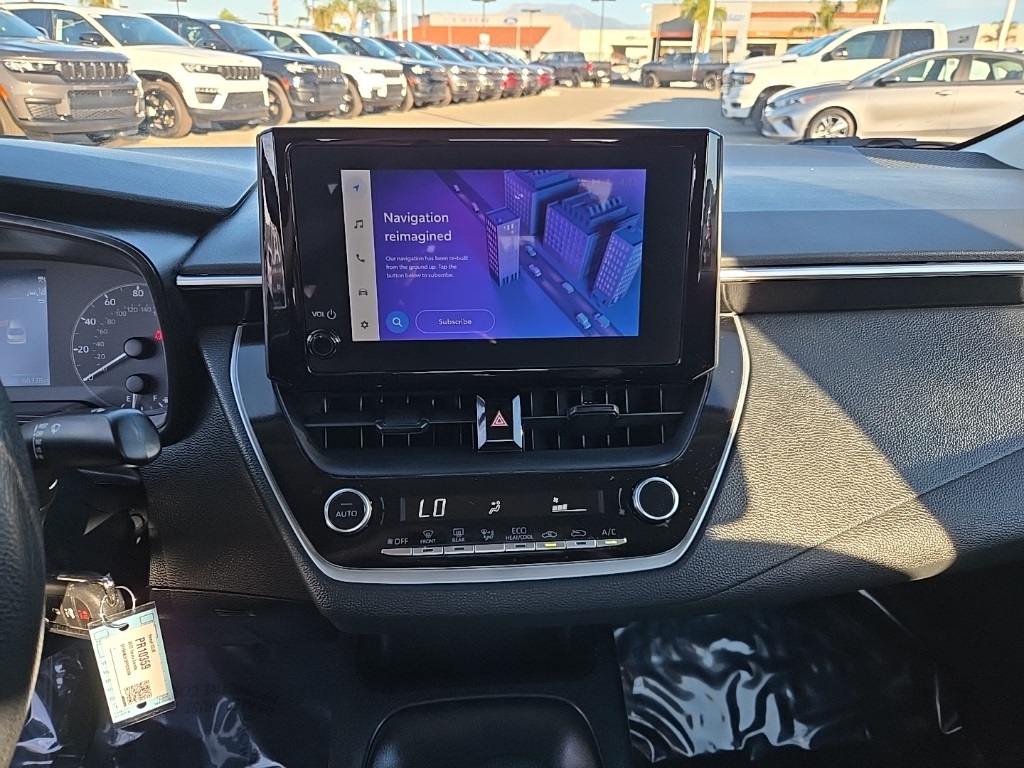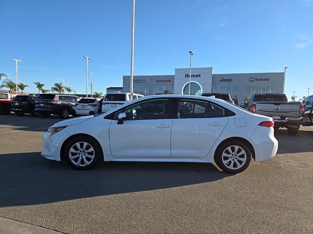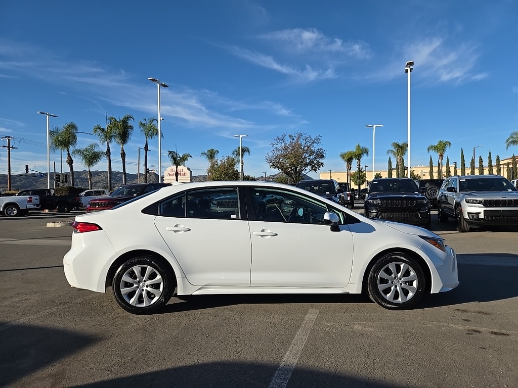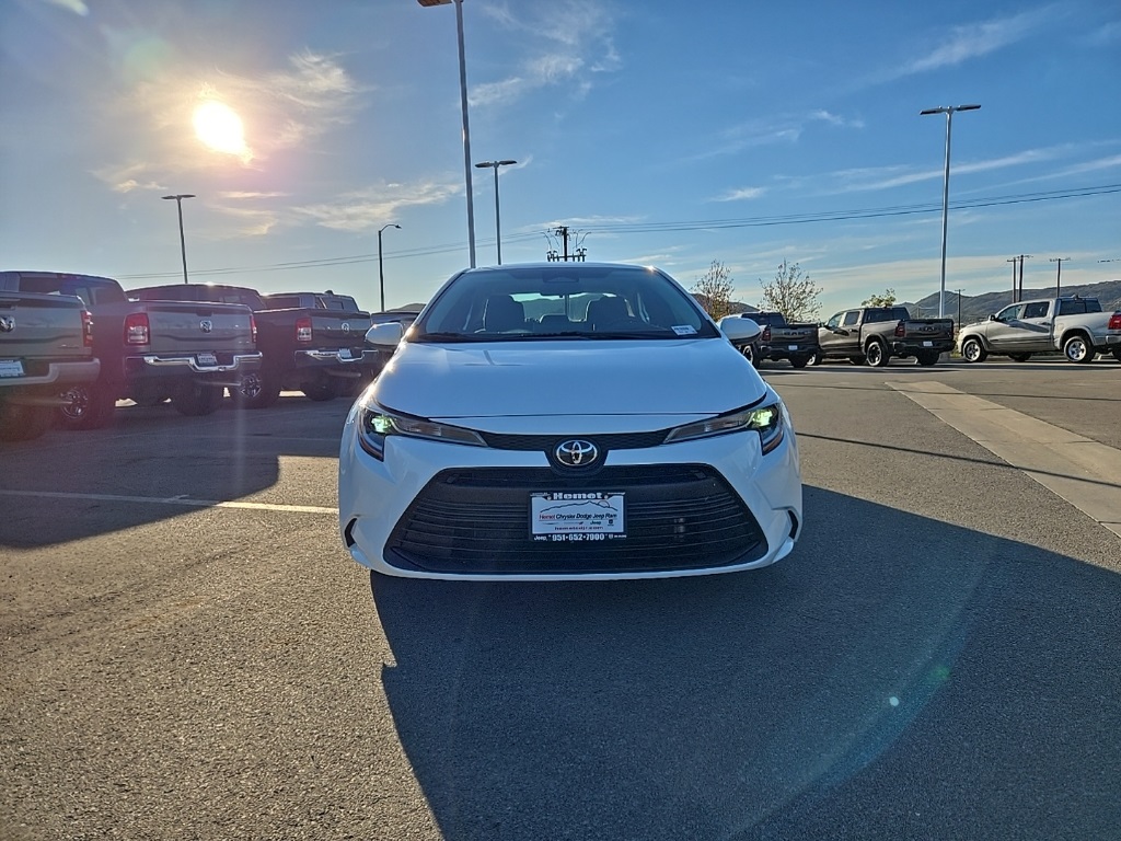 UsedThis 2023 Wind Chill Pearl/Midnight Black Metallic Toyota Corolla LE FWD is well equipped and includes these features and benefits: 4-Wheel Disc Brakes, 6 Speakers, ABS brakes, Air Conditioning, AM/FM radio: SiriusXM, Auto High-beam Headlights, Automatic temperature control, Brake assist, Bumpers: body-color, Delay-off headlights, Driver door bin, Driver vanity mirror, Dual front impact airbags, Dual front side impact airbags, Electronic Stability Control, Emergency communication system: Safety Connect (up to 10-year trial subscription), Exterior Parking Camera Rear, Front anti-roll bar, Front Bucket Seats, Front Center Armrest, Front reading lights, Front wheel independent suspension, Fully automatic headlights, Illuminated entry, Knee airbag, Low tire pressure warning, Occupant sensing airbag, Outside temperature display, Overhead airbag, Panic alarm, Passenger door bin, Passenger vanity mirror, Power door mirrors, Power steering, Power windows, Premium Fabric Seat Trim, Radio data system, Radio: 8″ Toyota Audio Multimedia, Rear anti-roll bar, Rear seat center armrest, Rear side impact airbag, Rear window defroster, Remote keyless entry, Speed control, Split folding rear seat, Steering wheel mounted audio controls, Tachometer, Telescoping steering wheel, Tilt steering wheel, Traction control, Trip computer, Variably intermittent wipers, and Wheels: 16″ Wide Vent Steel. Apple Car Play/Android Auto, Automatic Climate Control. CARFAX One-Owner. CVT32/41 City/Highway MPGWe have many different makes and models available including a wide selection of cars, trucks, vans, and SUV’s. Lake Elsinore CDJR auto group has access to thousands of new and used vehicles which means we can find the right vehicle FOR YOU.