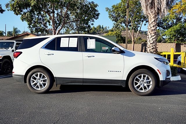 UsedThis 2024 Summit White Chevrolet Equinox LT AWD is well equipped and includes these features and benefits: Preferred Equipment Group 1LT, AWD, 17″ Aluminum Wheels, 2 Rear USB Charging-Only Ports, 2 USB Ports & Auxiliary Input Jack, 2-Way Power Driver Lumbar Control Seat Adjuster, 3.87 Final Drive Axle Ratio, 4-Wheel Disc Brakes, 6 Speakers, 6-Speaker Audio System Feature, ABS brakes, Air Conditioning, Alloy wheels, AM/FM radio: SiriusXM, Auto High-beam Headlights, Automatic temperature control, Bluetooth® For Phone, Brake assist, Bumpers: body-color, Compass, Delay-off headlights, Driver 8-Way Power Seat Adjuster, Driver door bin, Driver vanity mirror, Dual front impact airbags, Dual front side impact airbags, Electronic Stability Control, Emergency communication system: OnStar and Chevrolet connected services capable, Four wheel independent suspension, Front anti-roll bar, Front Bucket Seats, Front Center Armrest, Front dual zone A/C, Front Passenger 4-Way Manual Seat Adjuster, Front reading lights, Fully automatic headlights, Heated door mirrors, Heated Driver & Front Passenger Seats, Heated front seats, Illuminated entry, Low tire pressure warning, Occupant sensing airbag, Outside temperature display, Overhead airbag, Overhead console, Panic alarm, Passenger door bin, Passenger vanity mirror, Power door mirrors, Power driver seat, Power Liftgate, Power steering, Power windows, Premium audio system: Chevrolet Infotainment 3, Premium Cloth Seat Trim, Radio data system, Radio: Chevrolet Infotainment 3 System w/AM/FM, Rear anti-roll bar, Rear reading lights, Rear seat center armrest, Rear window defroster, Rear window wiper, Remote keyless entry, Security system, SiriusXM, Speed control, Speed-sensing steering, Split folding rear seat, Spoiler, Steering wheel mounted audio controls, Tachometer, Telescoping steering wheel, Tilt steering wheel, Traction control, Trip computer, and Variably intermittent wipers. Apple Car Play/Android Auto, Automatic Climate Control, Backup Camera, AWD.CARFAX One-Owner.Poway Hyundai located at 13910 Poway Road, and Poway CDJR are both proud members of the Pedder Auto Group. Like our sister stores, we take great pride in serving all of San Diego County with friendly and professional sales, service and parts. We have one of the largest inventories of quality pre-owned vehicles in the county including a huge selection of Certified Pre-owned Hyundai products to choose from. We offer excellent financing, and a relaxed, no-pressure environment. All prices exclude government fees and taxes, any finance charges, any dealer document preparation charge, dealer installed options, and any emissions test charge. The equipment display is intended to be used as an informational listing of the factory stock equipment and features for this vehicle. Equipment and features may have changed for this vehicle. All information is believed to be accurate but is not guaranteed. For accurate information, pls see dealer for details. Some incentives are OAC and in lieu of others.