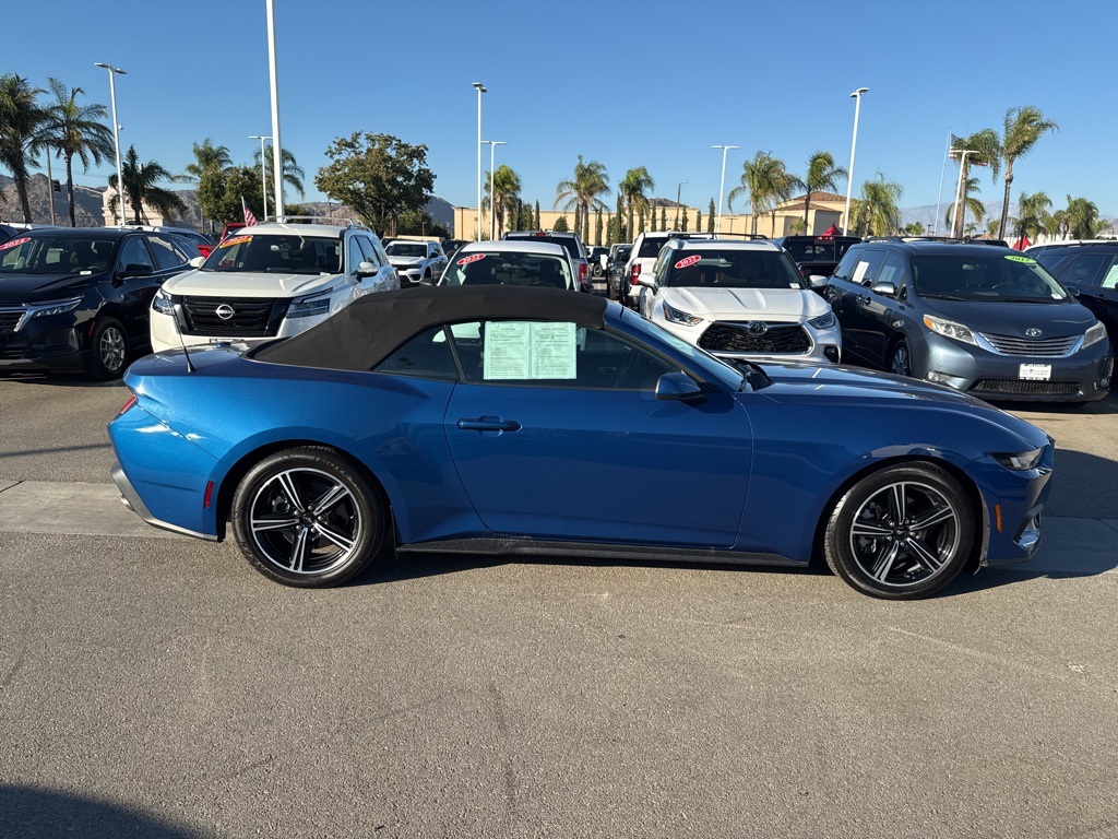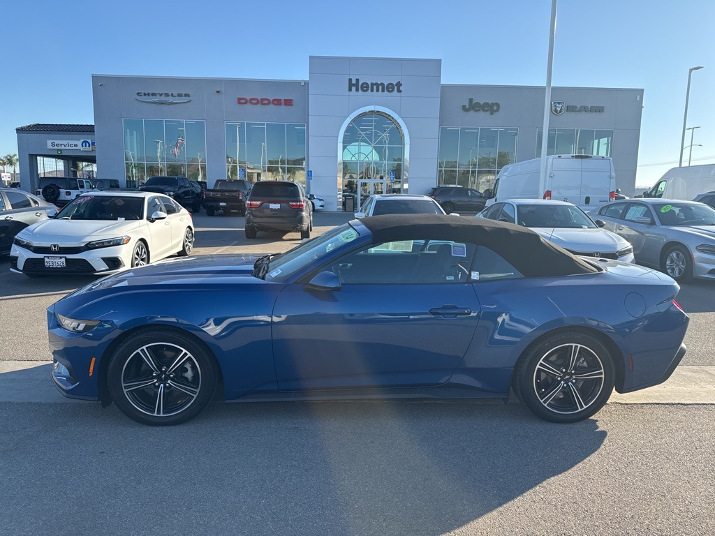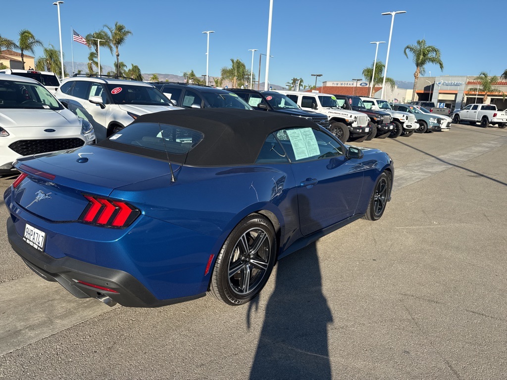 UsedThis 2024 Blue Metallic Ford Mustang EcoBoost RWD is well equipped and includes these features and benefits: 4-Wheel Disc Brakes, 9 Speakers, ABS brakes, Air Conditioning, Alloy wheels, AM/FM radio: SiriusXM with 360L, AM/FM Stereo, Auto High-beam Headlights, Automatic temperature control, Brake assist, Bumpers: body-color, Compass, Convertible roof lining, Delay-off headlights, Driver door bin, Driver vanity mirror, Dual front impact airbags, Dual front side impact airbags, Electronic Stability Control, Emergency communication system: 911 Assist, Exterior Parking Camera Rear, Four wheel independent suspension, Front anti-roll bar, Front Bucket Seats, Front Center Armrest, Front dual zone A/C, Front reading lights, Fully automatic headlights, Glass rear window, Heated front seats, Illuminated entry, Knee airbag, Leather Shift Knob, Low tire pressure warning, Occupant sensing airbag, Outside temperature display, Overhead console, Panic alarm, Passenger door bin, Passenger vanity mirror, Power convertible roof, Power door mirrors, Power driver seat, Power steering, Power windows, Radio data system, Rain sensing wipers, Rear anti-roll bar, Rear Parking Sensors, Rear window defroster, Remote keyless entry, Security system, Speed control, Speed-sensing steering, Speed-Sensitive Wipers, Sport steering wheel, Steering wheel mounted audio controls, SYNC 4.0 QNX, Tachometer, Telescoping steering wheel, Tilt steering wheel, Traction control, Trip computer, Variably intermittent wipers, Voltmeter, and Wheels: 18″ x 8″ Machined-Face Aluminum. Apple Car Play/Android Auto, Automatic Climate Control. CARFAX One-Owner. 10-Speed Automatic22/33 City/Highway MPGWe have many different makes and models available including a wide selection of cars, trucks, vans, and SUV’s. Lake Elsinore CDJR auto group has access to thousands of new and used vehicles which means we can find the right vehicle FOR YOU.
