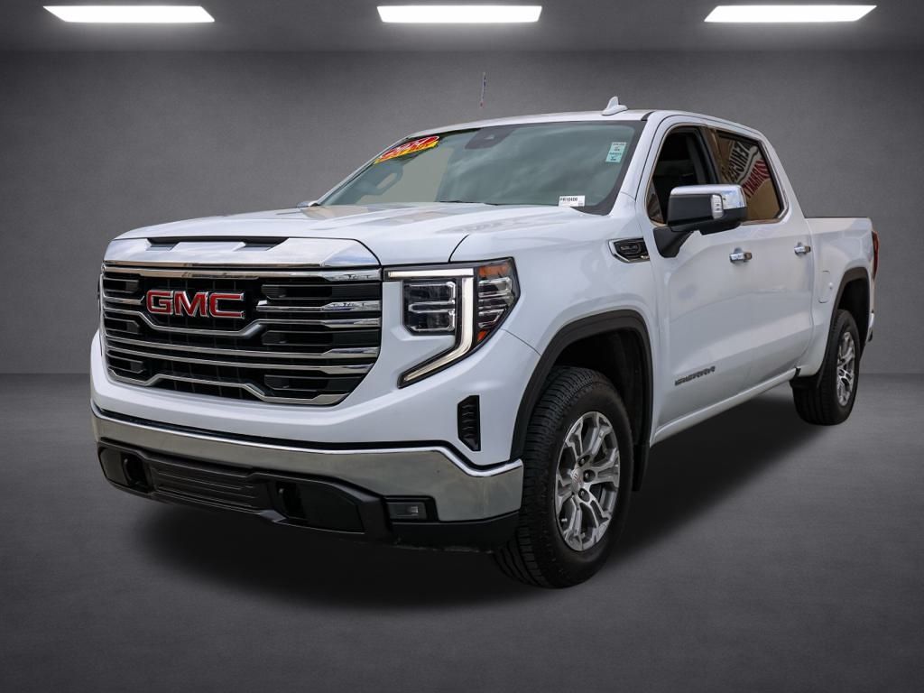 UsedThis 2024 Summit White GMC Sierra 1500 SLT RWD is well equipped and includes these features and benefits: Preferred Equipment Group 4SA (120-Volt Bed Mounted Power Outlet, 120-Volt Interior Power Outlet, 170 Amp Alternator, 2 Charge/Data USB Ports, 2 Type-C Charge-Only Rear USB Ports, 6-Speaker Audio System Feature, Auto-Locking Rear Differential, Auxiliary External Transmission Oil Cooler, Chrome Header & Chrome Grille Insert Bars, Color-Keyed Carpeting Floor Covering, Deep-Tinted Glass, Electric Rear-Window Defogger, Front Frame-Mounted Black Recovery Hooks, Front Rain-Sensing Wipers, GMC Connected Access Capable, HD Rear Vision Camera, Keyless Open & Start, LED Cargo Area Lighting, Manual Tilt-Wheel & Telescoping Steering Column, OnStar & GMC Connected Services Capable, Perimeter Lighting, Power Door Locks, Power Front Passenger Windows w/Express Up/Down, Power Front Windows w/Driver Express Up/Down, Power Rear Windows w/Express Down, Push Button Start, Rear Wheelhouse Liners, Remote Vehicle Starter System, SiriusXM w/360L, Steering Wheel Audio Controls, Theft Deterrent System (Unauthorized Entry), and Wi-Fi Hotspot Capable), Standard Suspension Package, Trailering Package (Hitch Guidance), 10-Speed Automatic, Black Leather, 10-Way Power Driver Seat Adjuster w/Lumbar, 10-Way Power Passenger Seat Adjuster w/Lumbar, 3.23 Rear Axle Ratio, 4-Wheel Disc Brakes, 6 Speakers, ABS brakes, Air Conditioning, Alloy wheels, AM/FM radio: SiriusXM with 360L, Apple CarPlay/Android Auto, Auto High-beam Headlights, Auto-dimming door mirrors, Auto-dimming Rear-View mirror, Automatic Emergency Braking, Automatic temperature control, Brake assist, Buckle to Drive, Bumpers: chrome, Compass, Delay-off headlights, Deleted 3 Years of OnStar Remote Access, Driver door bin, Driver Memory, Driver vanity mirror, Dual front impact airbags, Dual front side impact airbags, Electronic Stability Control, Following Distance Indicator, Forward Collision Alert, Front 40/20/40 Split-Bench Seat, Front anti-roll bar, Front Center Armrest w/Storage, Front dual zone A/C, Front fog lights, Front Pedestrian Braking, Front reading lights, Front wheel independent suspension, Fully automatic headlights, Heated door mirrors, Heated Driver & Front Outboard Passenger Seating, Heated front seats, Heated steering wheel, Illuminated entry, IntelliBeam Automatic High Beam On/Off, Lane Keep Assist w/Lane Departure Warning, Low tire pressure warning, Memory seat, Navigation System, Occupant sensing airbag, Outside temperature display, Overhead airbag, Overhead console, Panic alarm, Passenger door bin, Passenger vanity mirror, Perf Leather-Appointed Front Outboard Seat Trim, Power door mirrors, Power driver seat, Power passenger seat, Power steering, Power windows, Premium audio system: GMC Infotainment System, Radio data system, Radio: Premium GMC Infotainment Audio System, Rain sensing wipers, Rear reading lights, Rear seat center armrest, Rear step bumper, Rear window defroster, Remote keyless entry, Security system, Speed control, Speed-sensing steering, Split folding rear seat, Steering wheel mounted audio controls, Tachometer, Telescoping steering wheel, Tilt steering wheel, Traction control, Trip computer, Variably intermittent wipers, Voltmeter, Wheels: 18″ x 8.5″ 6-Spoke Machined Aluminum, and Wireless Apple CarPlay/Wireless Android Auto Plus 3 Month 3000 Mile Warranty. See Dealer For Details. We have many different makes and models available including a wide selection of cars, trucks, vans, and SUV’s. Don’t see something you like! Pedder Nissan has access to thousands of new and used vehicles which means we can find the right vehicle FOR YOU. The Advertised Price for any vehicle does not include dealer installed accessories. These accessories can be purchased for an additional cost. All vehicles subject to prior sale. All prices plus government fees and taxes, any finance charges, any dealer document processing charges ($85), any electronic filing charge, and any emissi