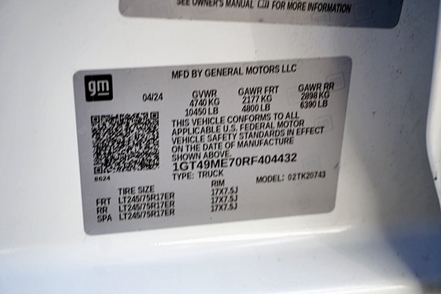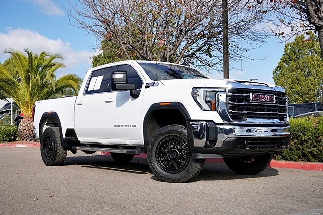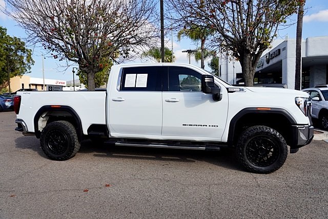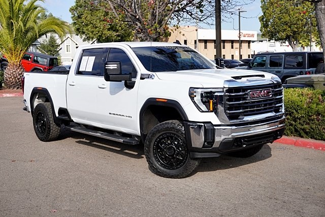 UsedThis 2024 Summit White GMC Sierra 2500HD SLE 4WD is well equipped and includes these features and benefits: Heated Package (Heated Driver & Front Outboard Passenger Seats and Heated Steering Wheel), Preferred Equipment Group 3SA (2 Charge/Data USB Ports, 2-Speed Electronic Shift Transfer Case, 4-Way Manual Driver Seat Adjuster, Chrome Surround Grille w/Chrome Insert Bars, Deep-Tinted Glass, GMC Connected Access Capable, Integrated Trailer Brake Controller, Keyless Open & Start, Manual Tilt Wheel Steering Column, OnStar & GMC Connected Services Capable, Push Button Start, SiriusXM w/360L, Steering Wheel Audio Controls, and Wireless Phone Projection), Remote Start Package (Electric Rear-Window Defogger, Remote Vehicle Starter System, and Unauthorized Entry Theft-Deterrent System), SLE Convenience Package (10-Way Power Driver Seat Adjuster w/Lumbar, 120-Volt Bed Mounted Power Outlet, 2 Charge-Only Rear USB Ports, A/C w/Dual-Zone Automatic Climate Control, LED Fog Lamps, LED Smoked Amber Roof Marker Lamps, and Manual Tilt-Wheel/Telescoping Steering Column), SLE Value Package (Spray-On Bedliner), Suspension Package, 10-Speed Automatic, 4WD, Black Cloth, 120-Volt Instrument Panel Power Outlet (DISC), 17″ Machined Aluminum Wheels, 2-Speed Active Transfer Case, 3.73 Rear Axle Ratio, 4-Way Manual Passenger Seat Adjuster, 4-Wheel Disc Brakes, 6 Speakers, 6-Speaker Audio System Feature, 6″ Rectangular Chromed Tubular Assist Steps (LPO), 700 Cold-Cranking Amps/70 Amp-hr Auxiliary Battery, ABS brakes, Air Conditioning, Alloy wheels, AM/FM radio: SiriusXM with 360L, Apple CarPlay/Android Auto, Auto High-beam Headlights, Automatic Emergency Braking, Brake assist, Buckle to Drive, Bumpers: chrome, Cloth Seat Trim, Compass, Delay-off headlights, Driver door bin, Driver vanity mirror, Dual 220-Amps Primary/170-Amps Aux Alternators, Dual front impact airbags, Dual front side impact airbags, Electronic Stability Control, Following Distance Indicator, Forward Collision Alert, Front 40/20/40 Split-Bench Seats, Front anti-roll bar, Front Center Armrest w/Storage, Front License Plate Kit, Front Pedestrian Braking, Front reading lights, Front wheel independent suspension, Fully automatic headlights, Heated door mirrors, Heavy-Duty 80 Amp Battery, Illuminated entry, IntelliBeam Automatic High Beam On/Off, Lane Departure Warning System, Low tire pressure warning, Occupant sensing airbag, Outside temperature display, Overhead airbag, Overhead console, Panic alarm, Passenger door bin, Passenger vanity mirror, Pickup Box, Power door mirrors, Power steering, Power windows, Premium audio system: Premium GMC Infotainment System, Radio: AM/FM w/Premium GMC Infotainment System, Rear reading lights, Rear step bumper, Remote keyless entry, Speed control, Split folding rear seat, Steering wheel mounted audio controls, Tachometer, Tilt steering wheel, Traction control, Trip computer, Turn signal indicator mirrors, Upfitter Switch Kit (5), Variably intermittent wipers, and Voltmeter Prices shown are manufacturer suggested retail price only and do not include taxes, license, documentation fee, smog fee, dealer installed options and other applicable charges. Vehicles are subject to prior sale. Vehicle information is based on standard equipment and may vary from vehicle to vehicle. Not responsible for typographical errors. CARFAX One-Owner.
