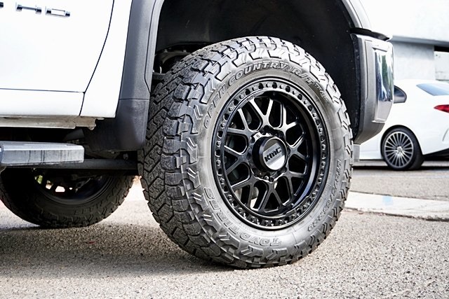 Some utes and 4WDs, visible within a wheel arch