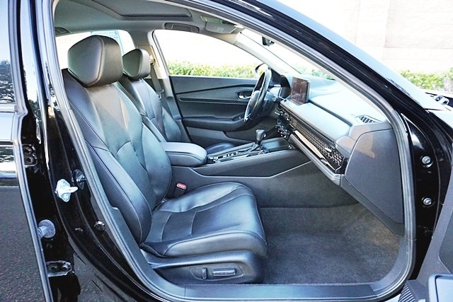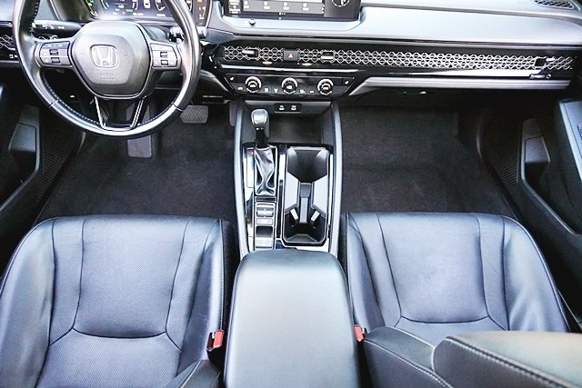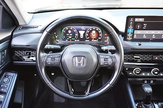 UsedThis 2024 Black Honda Accord Hybrid EX-L FWD is well equipped and includes these features and benefits: 2.0L 16V DOHC, 4-Wheel Disc Brakes, 8 Speakers, ABS brakes, Adaptive Cruise Control: Adaptive Cruise Control (ACC) with Low-Speed Follow, Air Conditioning, Alloy wheels, AM/FM radio, Apple CarPlay/Android Auto, Auto High-beam Headlights, Auto-dimming Rear-View mirror, Automatic temperature control, Blind Spot Information (BSI) System warning, Brake assist, Bumpers: body-color, Compass, Delay-off headlights, Driver door bin, Driver vanity mirror, Dual front impact airbags, Dual front side impact airbags, Electronic Stability Control, Emergency communication system: HondaLink, Exterior Parking Camera Rear, Four wheel independent suspension, Front anti-roll bar, Front Bucket Seats, Front Center Armrest, Front dual zone A/C, Front reading lights, Fully automatic headlights, Heated door mirrors, Heated Front Bucket Seats, Heated front seats, Illuminated entry, Knee airbag, Lane departure: Lane Keeping Assist System (LKAS) active, Leather Shift Knob, Leather steering wheel, Leather-Trimmed Seat Trim, Low tire pressure warning, Memory seat, Occupant sensing airbag, Outside temperature display, Overhead airbag, Overhead console, Panic alarm, Passenger door bin, Passenger vanity mirror, Power door mirrors, Power driver seat, Power moonroof, Power passenger seat, Power steering, Power windows, Radio data system, Radio: 180-Watt Audio System, Rear anti-roll bar, Rear reading lights, Rear seat center armrest, Rear side impact airbag, Rear window defroster, Remote keyless entry, Security system, Speed control, Speed-sensing steering, Speed-Sensitive Wipers, Split folding rear seat, Steering wheel mounted audio controls, Telescoping steering wheel, Tilt steering wheel, Traction control, Trip computer, Turn signal indicator mirrors, Variably intermittent wipers, and Wheels: 17″ x 7.5J Pewter Gray. Apple Car Play/Android Auto, Automatic Climate Control, Backup Camera, 2.0L 16V DOHC.CARFAX One-Owner.Poway Hyundai located at 13910 Poway Road, and Poway CDJR are both proud members of the Pedder Auto Group. Like our sister stores, we take great pride in serving all of San Diego County with friendly and professional sales, service and parts. We have one of the largest inventories of quality pre-owned vehicles in the county including a huge selection of Certified Pre-owned Hyundai products to choose from. We offer excellent financing, and a relaxed, no-pressure environment. All prices exclude government fees and taxes, any finance charges, any dealer document preparation charge, dealer installed options, and any emissions test charge. The equipment display is intended to be used as an informational listing of the factory stock equipment and features for this vehicle. Equipment and features may have changed for this vehicle. All information is believed to be accurate but is not guaranteed. For accurate information, pls see dealer for details. Some incentives are OAC and in lieu of others.