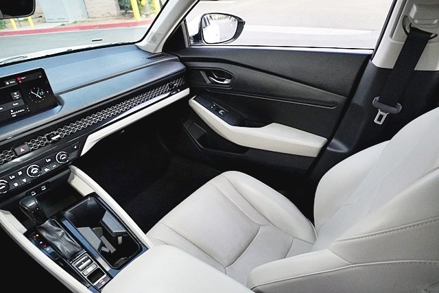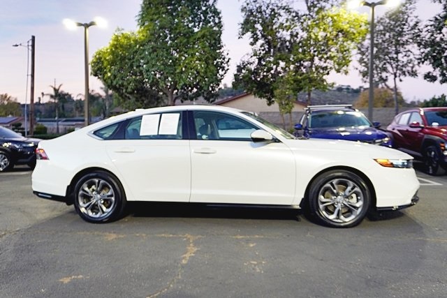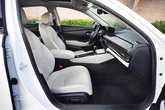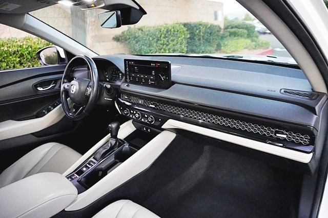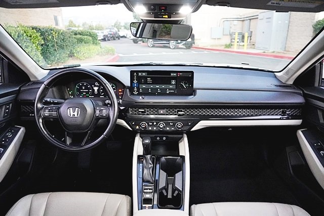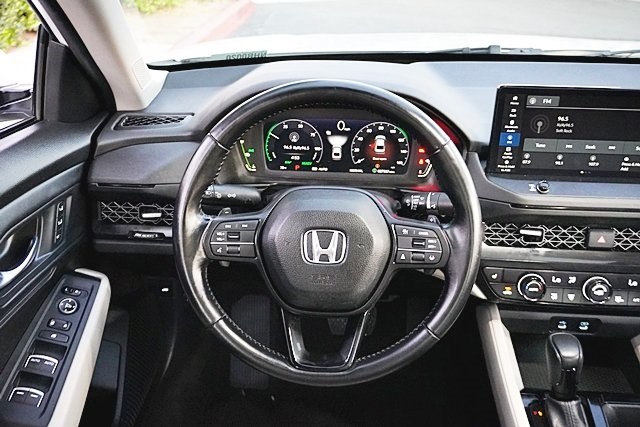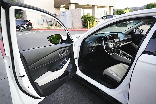 UsedThis 2024 White Honda Accord Hybrid EX-L FWD is well equipped and includes these features and benefits: 2.0L 16V DOHC, 4-Wheel Disc Brakes, 8 Speakers, ABS brakes, Adaptive Cruise Control: Adaptive Cruise Control (ACC) with Low-Speed Follow, Air Conditioning, Alloy wheels, AM/FM radio, Apple CarPlay/Android Auto, Auto High-beam Headlights, Auto-dimming Rear-View mirror, Automatic temperature control, Blind Spot Information (BSI) System warning, Brake assist, Bumpers: body-color, Compass, Delay-off headlights, Driver door bin, Driver vanity mirror, Dual front impact airbags, Dual front side impact airbags, Electronic Stability Control, Emergency communication system: HondaLink, Exterior Parking Camera Rear, Four wheel independent suspension, Front anti-roll bar, Front Bucket Seats, Front Center Armrest, Front dual zone A/C, Front reading lights, Fully automatic headlights, Heated door mirrors, Heated Front Bucket Seats, Heated front seats, Illuminated entry, Knee airbag, Lane departure: Lane Keeping Assist System (LKAS) active, Leather Shift Knob, Leather steering wheel, Leather-Trimmed Seat Trim, Low tire pressure warning, Memory seat, Occupant sensing airbag, Outside temperature display, Overhead airbag, Overhead console, Panic alarm, Passenger door bin, Passenger vanity mirror, Power door mirrors, Power driver seat, Power moonroof, Power passenger seat, Power steering, Power windows, Radio data system, Radio: 180-Watt Audio System, Rear anti-roll bar, Rear reading lights, Rear seat center armrest, Rear side impact airbag, Rear window defroster, Remote keyless entry, Security system, Speed control, Speed-sensing steering, Speed-Sensitive Wipers, Split folding rear seat, Steering wheel mounted audio controls, Telescoping steering wheel, Tilt steering wheel, Traction control, Trip computer, Turn signal indicator mirrors, Variably intermittent wipers, and Wheels: 17″ x 7.5J Pewter Gray. Apple Car Play/Android Auto, Automatic Climate Control, Backup Camera, 2.0L 16V DOHC.CARFAX One-Owner.Poway Hyundai located at 13910 Poway Road, and Poway CDJR are both proud members of the Pedder Auto Group. Like our sister stores, we take great pride in serving all of San Diego County with friendly and professional sales, service and parts. We have one of the largest inventories of quality pre-owned vehicles in the county including a huge selection of Certified Pre-owned Hyundai products to choose from. We offer excellent financing, and a relaxed, no-pressure environment. All prices exclude government fees and taxes, any finance charges, any dealer document preparation charge, dealer installed options, and any emissions test charge. The equipment display is intended to be used as an informational listing of the factory stock equipment and features for this vehicle. Equipment and features may have changed for this vehicle. All information is believed to be accurate but is not guaranteed. For accurate information, pls see dealer for details. Some incentives are OAC and in lieu of others.