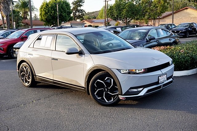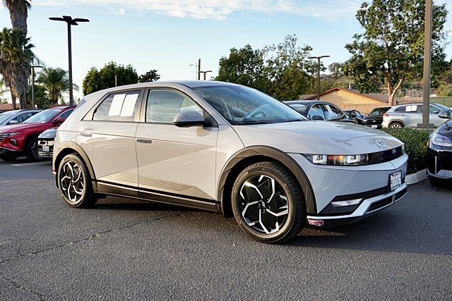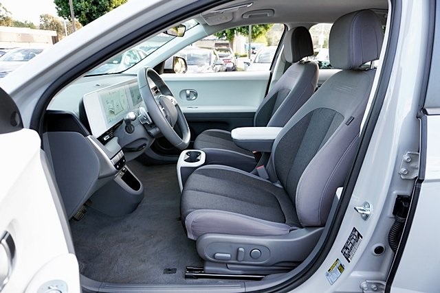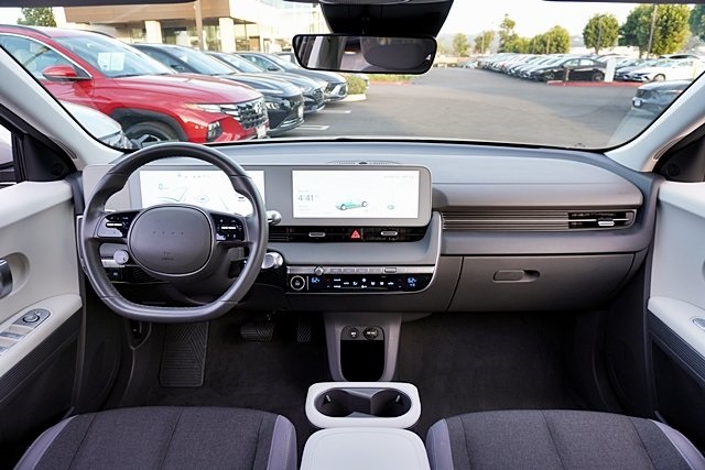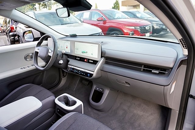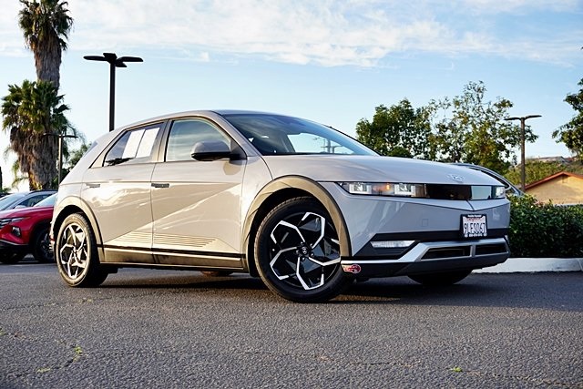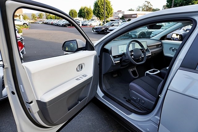 UsedThis 2024 Cyber Gray Hyundai IONIQ 5 SE Standard Range RWD is well equipped and includes these features and benefits: Option Group 01, 4-Wheel Disc Brakes, 4.71 Axle Ratio, 6 Speakers, ABS brakes, Air Conditioning, Alloy wheels, AM/FM radio: SiriusXM, Apple CarPlay & Android Auto, Auto High-beam Headlights, Automatic temperature control, Bodyside moldings, Brake assist, Bumpers: body-color, Cargo Mat, Up Seatback, Cargo Net, Carpeted Floor Mats, Delay-off headlights, Driver door bin, Driver vanity mirror, Dual front impact airbags, Dual front side impact airbags, Electronic Stability Control, Emergency communication system: Bluelink+, First Aid Kit, Four wheel independent suspension, Front anti-roll bar, Front Bucket Seats, Front Center Armrest w/Storage, Front dual zone A/C, Front reading lights, Fully automatic headlights, harman/kardon® Speakers, Heated door mirrors, Heated Front Bucket Seats, Heated front seats, Illuminated entry, Leather steering wheel, Low tire pressure warning, Mudguards, Navigation System, Occupant sensing airbag, Outside temperature display, Overhead airbag, Overhead console, Panic alarm, Passenger door bin, Passenger vanity mirror, Power door mirrors, Power driver seat, Power steering, Power windows, Radio: AM/FM/SiriusXM/HD Display Audio System, Rear anti-roll bar, Rear reading lights, Rear side impact airbag, Rear window defroster, Remote keyless entry, Roadside Assistance Kit, Security system, Speed control, Speed-sensing steering, Split folding rear seat, Spoiler, Stain-Resistant Cloth Seating Surfaces, Steering wheel mounted audio controls, Telescoping steering wheel, Tilt steering wheel, Traction control, Trip computer, Turn signal indicator mirrors, Variably intermittent wipers, Wheel Locks, and Wheels: 19″ x 7.5J Aero Alloy. Apple Car Play/Android Auto, Automatic Climate Control, Backup Camera.Priced below KBB Fair Purchase Price!CARFAX One-Owner.Poway Hyundai located at 13910 Poway Road, and Poway CDJR are both proud members of the Pedder Auto Group. Like our sister stores, we take great pride in serving all of San Diego County with friendly and professional sales, service and parts. We have one of the largest inventories of quality pre-owned vehicles in the county including a huge selection of Certified Pre-owned Hyundai products to choose from. We offer excellent financing, and a relaxed, no-pressure environment. All prices exclude government fees and taxes, any finance charges, any dealer document preparation charge, dealer installed options, and any emissions test charge. The equipment display is intended to be used as an informational listing of the factory stock equipment and features for this vehicle. Equipment and features may have changed for this vehicle. All information is believed to be accurate but is not guaranteed. For accurate information, pls see dealer for details. Some incentives are OAC and in lieu of others.