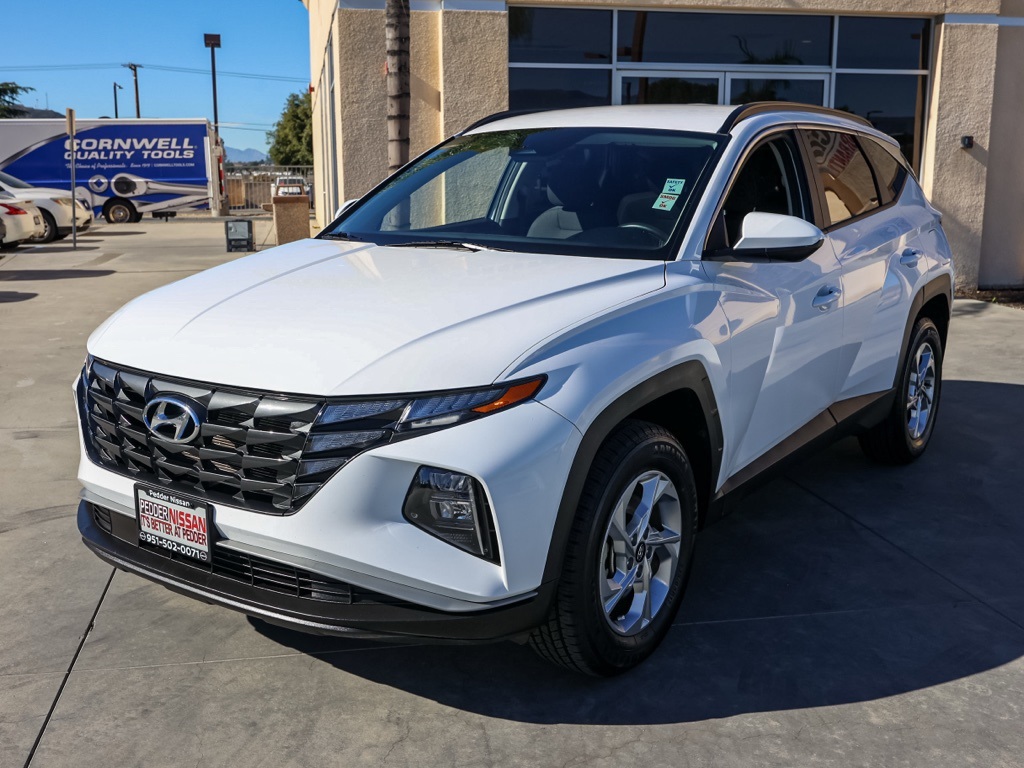 UsedThis 2024 White Pearl Hyundai Tucson SEL AWD is well equipped and includes these features and benefits: Option Group 01, AWD, 3.648 Axle Ratio, 4-Wheel Disc Brakes, 6 Speakers, ABS brakes, Air Conditioning, Alloy wheels, AM/FM radio: SiriusXM, Apple CarPlay & Android Auto, Auto High-beam Headlights, Automatic temperature control, Brake assist, Bumpers: body-color, Delay-off headlights, Driver door bin, Driver vanity mirror, Dual front impact airbags, Dual front side impact airbags, Electronic Stability Control, Emergency communication system: Blue Link Connected Car Service (3-year complimentary subscription), Exterior Parking Camera Rear, Four wheel independent suspension, Front anti-roll bar, Front Bucket Seats, Front Center Armrest, Front dual zone A/C, Front reading lights, Fully automatic headlights, Heated door mirrors, Heated Front Bucket Seats, Heated front seats, Illuminated entry, Low tire pressure warning, Occupant sensing airbag, Outside temperature display, Overhead airbag, Overhead console, Panic alarm, Passenger door bin, Passenger vanity mirror, Power door mirrors, Power driver seat, Power Liftgate, Power steering, Power windows, Radio data system, Radio: AM/FM/HD Audio System, Rear anti-roll bar, Rear seat center armrest, Rear side impact airbag, Rear window defroster, Rear window wiper, Remote keyless entry, Roof rack: rails only, Security system, Speed control, Split folding rear seat, Spoiler, Stain & Odor Resistant Cloth Seat Trim, Steering wheel mounted audio controls, Tachometer, Telescoping steering wheel, Tilt steering wheel, Traction control, Trip computer, Variably intermittent wipers, Wheels: 17″ x 7.0J” Alloy, and Wheels: 19″ x 7.5J” Machine-Face Finish Alloy Plus 3 Month 3000 Mile Warranty. See Dealer For Details. We have many different makes and models available including a wide selection of cars, trucks, vans, and SUV’s. Don’t see something you like! Pedder Nissan has access to thousands of new and used vehicles which means we can find the right vehicle FOR YOU. The Advertised Price for any vehicle does not include dealer installed accessories. These accessories can be purchased for an additional cost. All vehicles subject to prior sale. All prices plus government fees and taxes, any finance charges, any dealer document processing charges ($85), any electronic filing charge, and any emission testing charge. Offers and prices not available to other dealers, wholesalers, or brokers. This price may not be combined with any other offer. While every reasonable effort is made to ensure the accuracy of this information, we are not responsible for any errors or omissions contained on these pages. We are proud to serve the Hemet area from our Auto Mall Location. We work with most Credit Unions and we offer Military and First Responder discounts. Please verify all pricing, vehicle equipment, and any additional information in question with Pedder Nissan (951) 766-1446. Apple Car Play/Android Auto, Automatic Climate Control, Backup Camera, AWD. CARFAX One-Owner. Priced below KBB Fair Purchase Price! 2024 Hyundai Tucson SEL23/29 City/Highway MPG