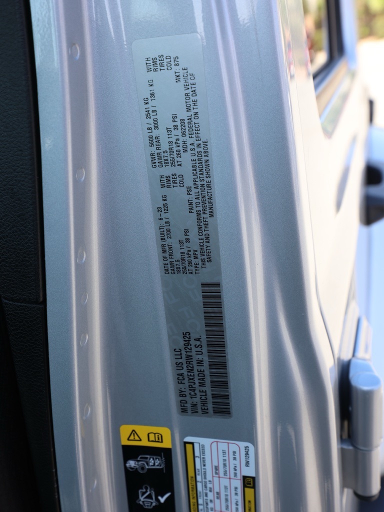 UsedThis 2024 Silver Zynith Clearcoat Jeep Wrangler Sahara 4WD is well equipped and includes these features and benefits: Quick Order Package 22G Sahara, Trailer Tow & Aux Switch Group (7 & 4 Pin Wiring Harness, Auxiliary Switches, and Class II Receiver Hitch), 110 MPH Vehicle Max Speed Calibration, 12.3″ Touchscreen Display, 3.45 Overall Top Gear Ratio, 4-Wheel Disc Brakes, 8 Speakers, ABS brakes, Air Conditioning, Alloy wheels, AM/FM radio: SiriusXM, Apple CarPlay, Apple CarPlay/Android Auto, Automatic temperature control, Aux Battery, Body Color 3-Piece Hard Top, Brake assist, Cloth Low-Back Bucket Seats, Compass, Connectivity – US/Canada, Delay-off headlights, Disassociated Touchscreen Display, Driver door bin, Driver vanity mirror, Dual front impact airbags, Dual front side impact airbags, Electronic Stability Control, Emergency communication system: Jeep Connect, Freedom Panel Storage Bag, Front anti-roll bar, Front Bucket Seats, Front Center Armrest w/Storage, Front dual zone A/C, Front fog lights, Front License Plate Bracket, Front reading lights, Fully automatic headlights, Google Android Auto, Heated door mirrors, Heated front seats, Heated steering wheel, Heavy Duty Suspension w/Gas Shocks, Illuminated entry, Integrated Center Stack Radio, Integrated roll-over protection, Integrated Voice Command w/Bluetooth, Low tire pressure warning, No Soft Top, Non-Lock Fuel Cap w/o Discriminator, Occupant sensing airbag, Outside temperature display, Overhead airbag, Panic alarm, ParkView Rear Back-Up Camera, Passenger door bin, Passenger vanity mirror, Power door mirrors, Power steering, Power windows, Radio data system, Radio: Uconnect 5 w/12.3″ Display, Rear anti-roll bar, Rear reading lights, Rear Window Defroster, Rear Window Wiper/Washer, Remote keyless entry, Security system, Side Steps, Speed control, Split folding rear seat, Steering wheel mounted audio controls, Stop-Start Dual Battery System, Tachometer, Telescoping steering wheel, Tilt steering wheel, Traction control, Trip computer, Variably intermittent wipers, Voltmeter, and Wheels: 18″ x 7.5″ Machine/Painted Gray.Priced below KBB Fair Purchase Price!CARFAX One-Owner. Clean CARFAX.We have many different makes and models available including a wide selection of cars, trucks, vans, and SUVs. Raceway Nissan in Riverside County has access to thousands of new and used vehicles which means we can find the right vehicle for you and your family. We are proud to serve the city of Riverside, all of the Metro Riverside County area, and the Inland Empire from our location in Moreno Valley. We are conveniently located in Riverside near the cities of San Bernardino, Redlands, Ontario, Corona, Perris, Beaumont, Temecula, Hemet and many others. We offer military discounts and work with many Credit Unions.