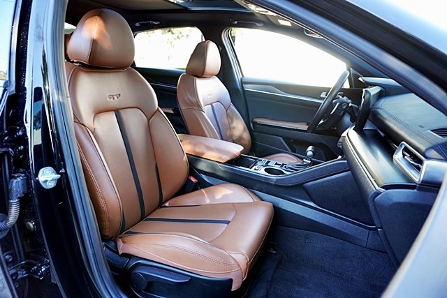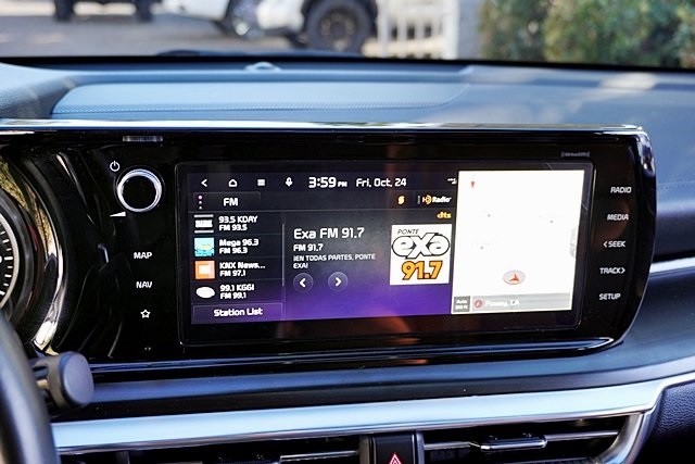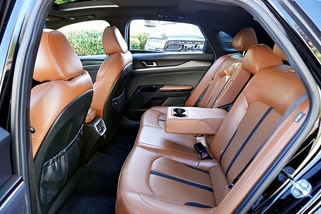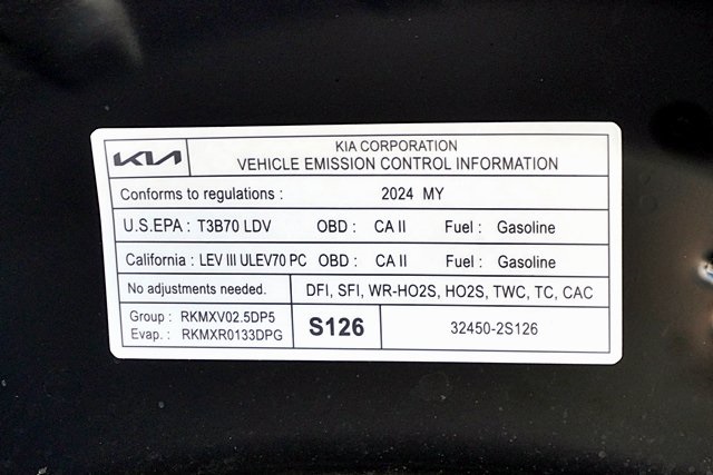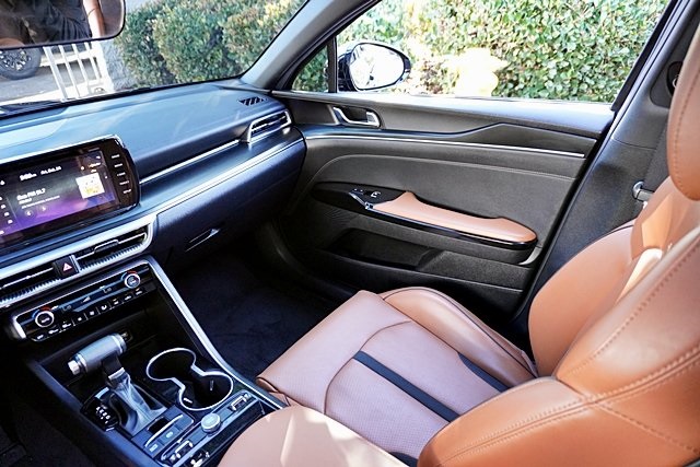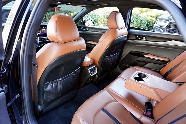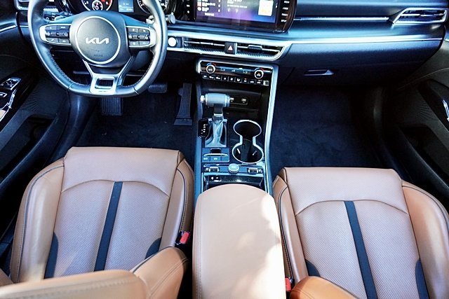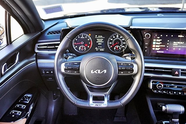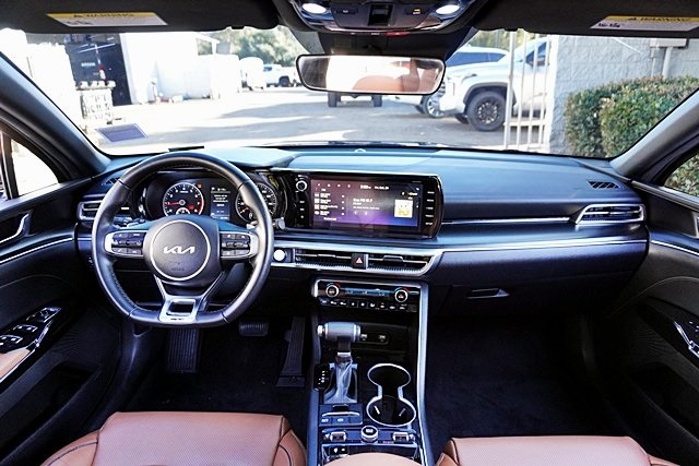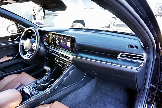 UsedThis 2024 Ebony Black Kia K5 GT FWD is well equipped and includes these features and benefits: GT Brown Interior Color Package, 4-Wheel Disc Brakes, 6 Speakers, ABS brakes, Air Conditioning, Alloy wheels, AM/FM radio: SiriusXM, Apple CarPlay & Android Auto, Auto High-beam Headlights, Automatic temperature control, Brake assist, Bumpers: body-color, Carpeted Floor Mats, Delay-off headlights, Driver door bin, Driver vanity mirror, Dual front impact airbags, Dual front side impact airbags, Electronic Stability Control, Emergency communication system, Four wheel independent suspension, Front anti-roll bar, Front Bucket Seats, Front Center Armrest, Front dual zone A/C, Front fog lights, Front reading lights, Fully automatic headlights, Heated door mirrors, Heated front seats, Heated Sport Bucket Seats, Illuminated entry, Knee airbag, Leather steering wheel, Low tire pressure warning, Navigation System, Occupant sensing airbag, Outside temperature display, Overhead airbag, Overhead console, Panic alarm, Passenger door bin, Passenger vanity mirror, Power door mirrors, Power driver seat, Power moonroof, Power steering, Power windows, Radio data system, Radio: AM/FM/MP3 Audio System, Rear anti-roll bar, Rear reading lights, Rear seat center armrest, Rear side impact airbag, Rear window defroster, Remote keyless entry, Security system, Smart Key w/ Push Button and Remote Start, Speed control, Speed-sensing steering, Split folding rear seat, Spoiler, Sport steering wheel, Steering wheel mounted audio controls, SynTex Seat Trim, Tachometer, Telescoping steering wheel, Tilt steering wheel, Traction control, Trip computer, Turn signal indicator mirrors, Variably intermittent wipers, and Wheels: 19″ Gloss Black Machined Finish Alloy Prices shown are manufacturer suggested retail price only and do not include taxes, license, documentation fee, smog fee, dealer installed options and other applicable charges. Vehicles are subject to prior sale. Vehicle information is based on standard equipment and may vary from vehicle to vehicle. Not responsible for typographical errors. CARFAX One-Owner.24/32 City/Highway MPG