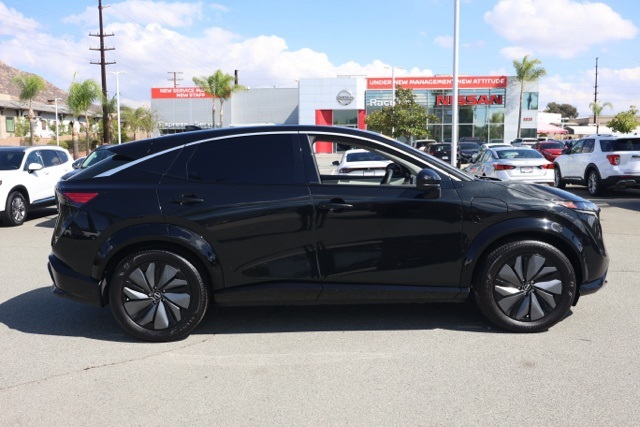 UsedThis 2024 Black Diamond Pearl Nissan Ariya ENGAGE FWD is well equipped and includes these features and benefits: 11.090 Final Drive Ratio, 19″ Alloy Wheels, 4-Wheel Disc Brakes, 6 Speakers, ABS brakes, Air Conditioning, Alloy wheels, AM/FM radio: SiriusXM, Auto High-beam Headlights, Automatic temperature control, Brake assist, Bumpers: body-color, Carpeted Floor Mats & First Aid Kit, Delay-off headlights, Driver door bin, Driver vanity mirror, Dual front impact airbags, Dual front side impact airbags, Electronic Stability Control, Emergency communication system: NissanConnect EV & Services, Four wheel independent suspension, Front anti-roll bar, Front Bucket Seats, Front Center Armrest, Front dual zone A/C, Front reading lights, Heads-Up Display, Heated door mirrors, Heated Front Bucket Seats, Heated front seats, Heated rear seats, Heated steering wheel, Illuminated entry, Knee airbag, Leather steering wheel, Leatherette Seating Surfaces, Low tire pressure warning, Memory seat, Navigation system: Nissan Door to Door Connected Navigation, Occupant sensing airbag, Outside temperature display, Overhead airbag, Panic alarm, Passenger door bin, Passenger vanity mirror, Power door mirrors, Power driver seat, Power steering, Power windows, Radio: AM/FM Audio System, Rear anti-roll bar, Rear reading lights, Rear seat center armrest, Rear side impact airbag, Rear window defroster, Rear window wiper, Remote keyless entry, Security system, Speed control, Speed-sensing steering, Speed-Sensitive Wipers, Split folding rear seat, Spoiler, Steering wheel mounted audio controls, Telescoping steering wheel, Tilt steering wheel, Traction control, Trip computer, and Variably intermittent wipers. Recent Arrival!Odometer is 7334 miles below market average! 109/94 City/Highway MPG CARFAX One-Owner. Clean CARFAX.We have many different makes and models available including a wide selection of cars, trucks, vans, and SUVs. Raceway Nissan in Riverside County has access to thousands of new and used vehicles which means we can find the right vehicle for you and your family. We are proud to serve the city of Riverside, all of the Metro Riverside County area, and the Inland Empire from our location in Moreno Valley. We are conveniently located in Riverside near the cities of San Bernardino, Redlands, Ontario, Corona, Perris, Beaumont, Temecula, Hemet and many others. We offer military discounts and work with many Credit Unions.