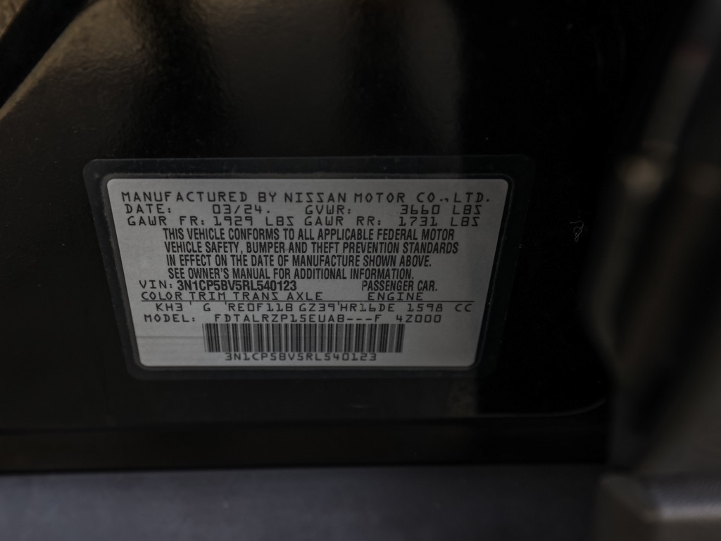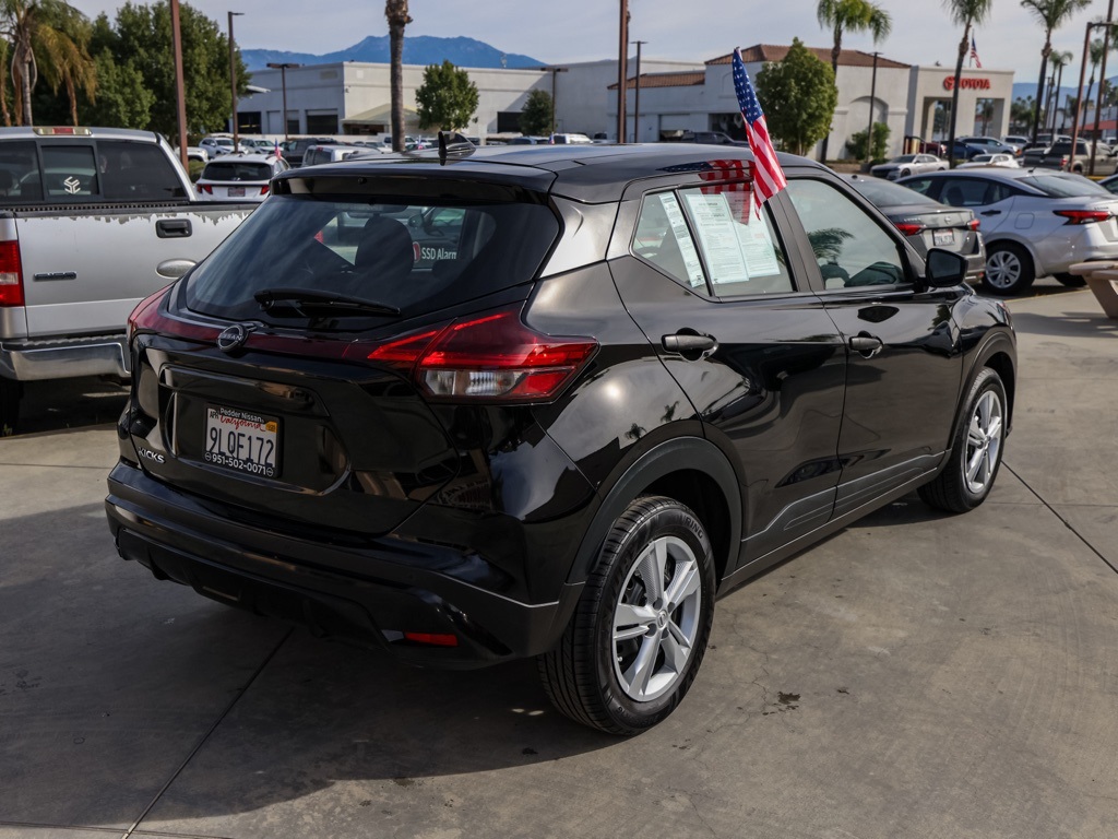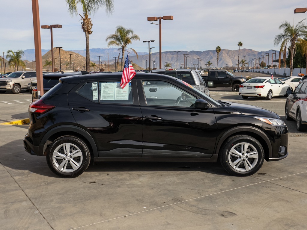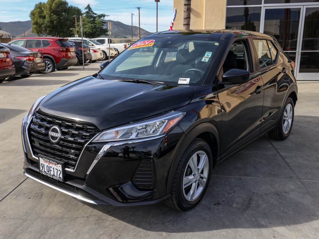 UsedThis 2024 Super Black Nissan Kicks S FWD is well equipped and includes these features and benefits: 16″ Steel Wheels w/Full Covers, 6 Speakers, ABS brakes, Air Conditioning, AM/FM radio, Apple CarPlay/Android Auto, Auto High-beam Headlights, Blind Spot Warning, Brake assist, Bumpers: body-color, Cloth Seat Trim, Driver door bin, Driver vanity mirror, Driver’s Seat Mounted Armrest, Dual front impact airbags, Dual front side impact airbags, Electronic Stability Control, Front anti-roll bar, Front Bucket Seats, Front reading lights, Front wheel independent suspension, Fully automatic headlights, Illuminated entry, Knee airbag, Low tire pressure warning, Occupant sensing airbag, Outside temperature display, Overhead airbag, Panic alarm, Passenger door bin, Passenger vanity mirror, Power door mirrors, Power steering, Power windows, Radio data system, Radio: AM/FM Audio System, Rear Parking Sensors, Rear reading lights, Rear side impact airbag, Rear window defroster, Rear window wiper, Remote keyless entry, Speed control, Split folding rear seat, Sport steering wheel, Steering wheel mounted audio controls, Tachometer, Telescoping steering wheel, Tilt steering wheel, Traction control, Trip computer, and Variably intermittent wipers Plus 3 Month 3000 Mile Warranty. See Dealer For Details. We have many different makes and models available including a wide selection of cars, trucks, vans, and SUV’s. Don’t see something you like! Pedder Nissan has access to thousands of new and used vehicles which means we can find the right vehicle FOR YOU. The Advertised Price for any vehicle does not include dealer installed accessories. These accessories can be purchased for an additional cost. All vehicles subject to prior sale. All prices plus government fees and taxes, any finance charges, any dealer document processing charges ($85), any electronic filing charge, and any emission testing charge. Offers and prices not available to other dealers, wholesalers, or brokers. This price may not be combined with any other offer. While every reasonable effort is made to ensure the accuracy of this information, we are not responsible for any errors or omissions contained on these pages. We are proud to serve the Hemet area from our Auto Mall Location. We work with most Credit Unions and we offer Military and First Responder discounts. Please verify all pricing, vehicle equipment, and any additional information in question with Pedder Nissan (951) 766-1446. Apple Car Play/Android Auto, Automatic Climate Control, Backup Camera. 2024 Nissan Kicks SClean CARFAX. 31/36 City/Highway MPG