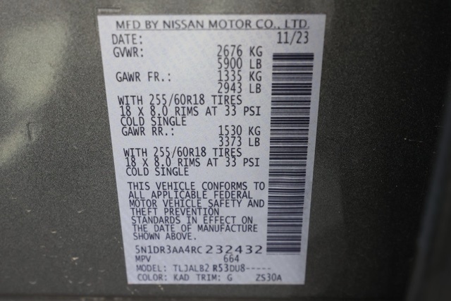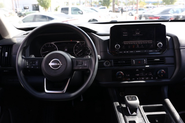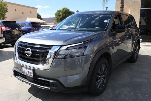 UsedThis 2024 Gun Metallic Nissan Pathfinder S FWD is well equipped and includes these features and benefits: 3rd row seats: bench, 4-Wheel Disc Brakes, 6 Speakers, ABS brakes, Air Conditioning, Alloy wheels, AM/FM radio: SiriusXM, Auto High-beam Headlights, Automatic temperature control, Axle Ratio: 4.334, Bench Seat Carpeted Floor Mats (Set of 4), Black Splash Guards (Set of 4), Blind Spot Warning, Brake assist, Bumpers: body-color, Cloth Seating Surfaces, Delay-off headlights, Driver door bin, Driver vanity mirror, Dual front impact airbags, Dual front side impact airbags, Electronic Stability Control, Four wheel independent suspension, Front anti-roll bar, Front Bucket Seats, Front Center Armrest, Front dual zone A/C, Front reading lights, Fully automatic headlights, Illuminated entry, Knee airbag, Low tire pressure warning, NissanConnect featuring Apple CarPlay and Android Auto, Occupant sensing airbag, Outside temperature display, Overhead airbag, Overhead console, Panic alarm, Passenger door bin, Passenger vanity mirror, Power door mirrors, Power steering, Power windows, Radio data system, Radio: AM/FM Audio System, Rear air conditioning, Rear anti-roll bar, Rear Parking Sensors, Rear reading lights, Rear side impact airbag, Rear window defroster, Rear window wiper, Reclining 3rd row seat, Remote keyless entry, Security system, Speed control, Speed-sensing steering, Split folding rear seat, Spoiler, Steering wheel mounted audio controls, Tachometer, Telescoping steering wheel, Tilt steering wheel, Traction control, Trip computer, Variably intermittent wipers, and Wheels: 18″ x 8J Painted Alloy Plus 3 Month 3000 Mile Warranty. See Dealer For Details. We have many different makes and models available including a wide selection of cars, trucks, vans, and SUV’s. Don’t see something you like! Pedder Nissan has access to thousands of new and used vehicles which means we can find the right vehicle FOR YOU. The Advertised Price for any vehicle does not include dealer installed accessories. These accessories can be purchased for an additional cost. All vehicles subject to prior sale. All prices plus government fees and taxes, any finance charges, any dealer document processing charges ($85), any electronic filing charge, and any emission testing charge. Offers and prices not available to other dealers, wholesalers, or brokers. This price may not be combined with any other offer. While every reasonable effort is made to ensure the accuracy of this information, we are not responsible for any errors or omissions contained on these pages. We are proud to serve the Hemet area from our Auto Mall Location. We work with most Credit Unions and we offer Military and First Responder discounts. Please verify all pricing, vehicle equipment, and any additional information in question with Pedder Nissan (951) 766-1446. Apple Car Play/Android Auto, Automatic Climate Control, Backup Camera. CARFAX One-Owner. 2024 Nissan Pathfinder SClean CARFAX. 20/27 City/Highway MPG
