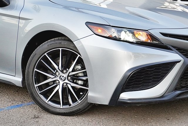UsedThis 2024 Silver Toyota Camry SE FWD is well equipped and includes these features and benefits: Blackout Package (TMS), Black Artificial Leather, 18″ x 8J Alloy Wheels, 4-Wheel Disc Brakes, 6 Speakers, ABS brakes, Air Conditioning, Alloy wheels, AM/FM radio: SiriusXM, Apple CarPlay/Android Auto, Auto High-beam Headlights, Automatic temperature control, Brake assist, Bumpers: body-color, Delay-off headlights, Driver door bin, Driver vanity mirror, Dual front impact airbags, Dual front side impact airbags, Electronic Stability Control, Emergency communication system: Safety Connect (1-year trial), Exterior Parking Camera Rear, Four wheel independent suspension, Front anti-roll bar, Front Bucket Seats, Front Center Armrest, Front dual zone A/C, Front reading lights, Fully automatic headlights, Heated door mirrors, Illuminated entry, Knee airbag, Leather steering wheel, Low tire pressure warning, Occupant sensing airbag, Outside temperature display, Overhead airbag, Overhead console, Panic alarm, Passenger door bin, Passenger vanity mirror, Power door mirrors, Power driver seat, Power steering, Power windows, Radio data system, Radio: Audio, Rear anti-roll bar, Rear seat center armrest, Rear side impact airbag, Rear window defroster, Remote keyless entry, Security system, Speed control, Speed-sensing steering, Split folding rear seat, Spoiler, Sport SofTex Seat Trim w/Fabric Inserts, Steering wheel mounted audio controls, Tachometer, Telescoping steering wheel, Tilt steering wheel, Traction control, Trip computer, Turn signal indicator mirrors, and Variably intermittent wipers Prices shown are manufacturer suggested retail price only and do not include taxes, license, documentation fee, smog fee, dealer installed options and other applicable charges. Vehicles are subject to prior sale. Vehicle information is based on standard equipment and may vary from vehicle to vehicle. Not responsible for typographical errors. Priced below KBB Fair Purchase Price!28/39 City/Highway MPG
