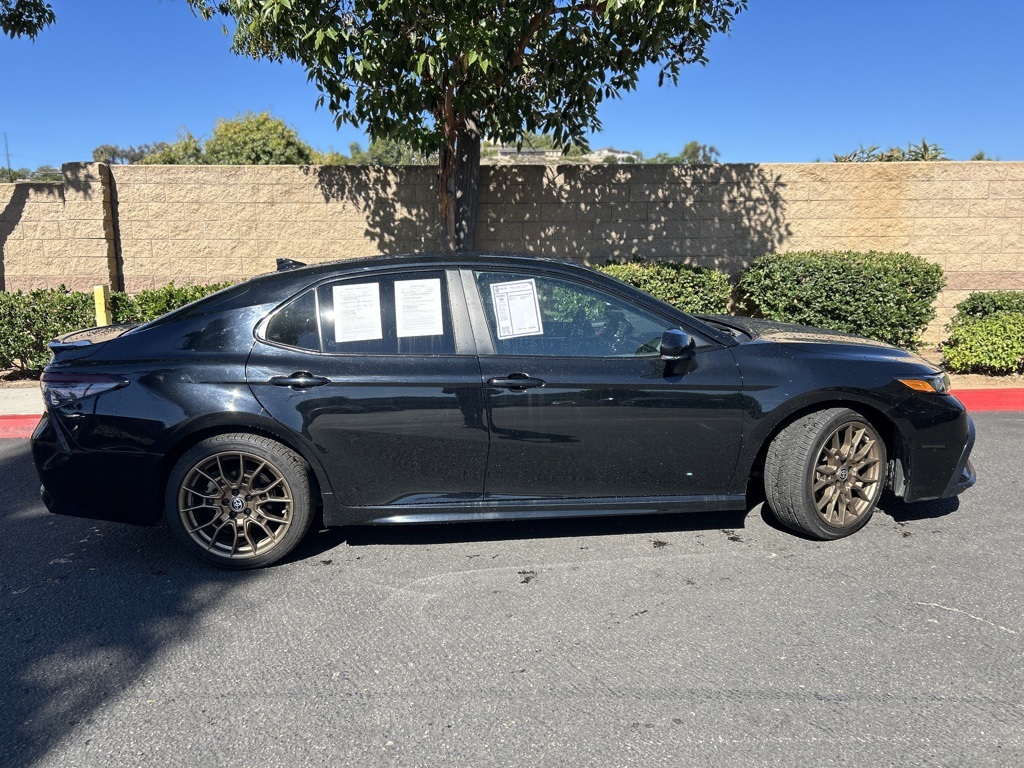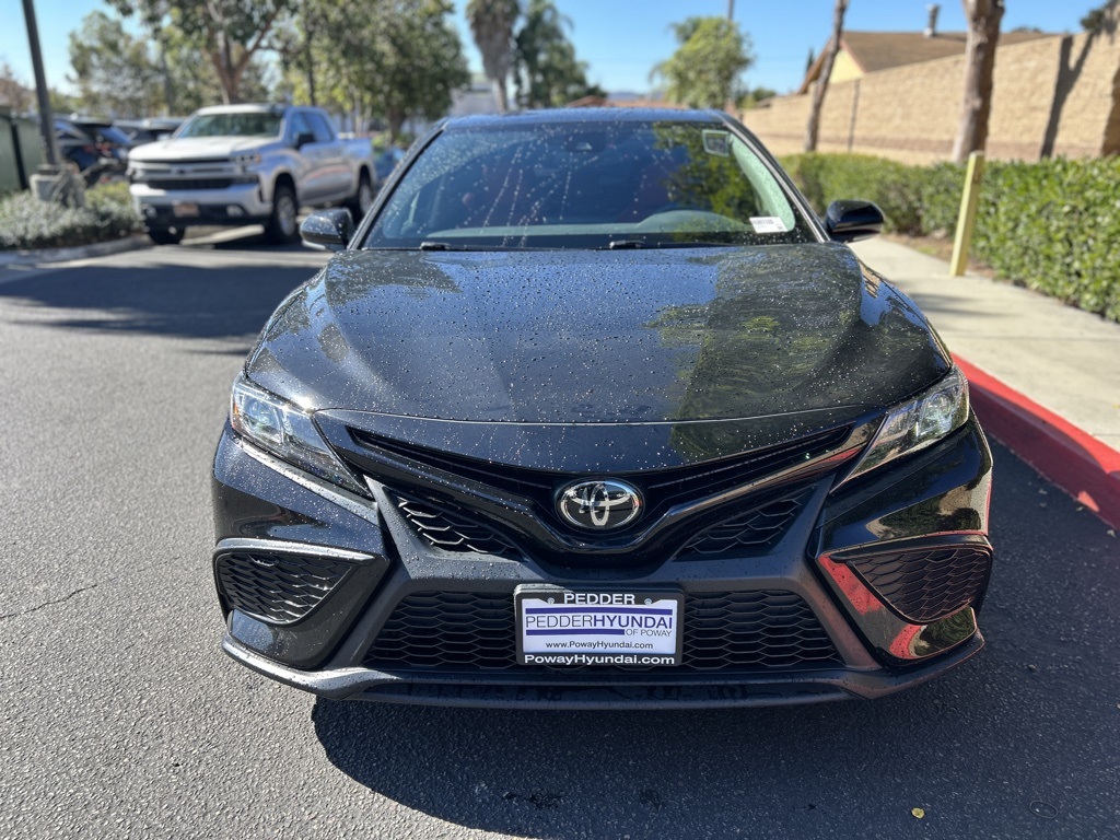 UsedThis 2024 Black Toyota Camry SE FWD is well equipped and includes these features and benefits: Black, 18″ x 8J Alloy Wheels, 4-Wheel Disc Brakes, 6 Speakers, ABS brakes, Air Conditioning, Alloy wheels, AM/FM radio: SiriusXM, Apple CarPlay/Android Auto, Auto High-beam Headlights, Automatic temperature control, Brake assist, Bumpers: body-color, Delay-off headlights, Driver door bin, Driver vanity mirror, Dual front impact airbags, Dual front side impact airbags, Electronic Stability Control, Emergency communication system: Safety Connect (1-year trial), Exterior Parking Camera Rear, Four wheel independent suspension, Front anti-roll bar, Front Bucket Seats, Front Center Armrest, Front dual zone A/C, Front reading lights, Fully automatic headlights, Heated door mirrors, Illuminated entry, Knee airbag, Leather steering wheel, Low tire pressure warning, Occupant sensing airbag, Outside temperature display, Overhead airbag, Overhead console, Panic alarm, Passenger door bin, Passenger vanity mirror, Power door mirrors, Power driver seat, Power steering, Power windows, Radio data system, Radio: Audio, Rear anti-roll bar, Rear seat center armrest, Rear side impact airbag, Rear window defroster, Remote keyless entry, Security system, Speed control, Speed-sensing steering, Split folding rear seat, Spoiler, Sport SofTex Seat Trim w/Fabric Inserts, Steering wheel mounted audio controls, Tachometer, Telescoping steering wheel, Tilt steering wheel, Traction control, Trip computer, Turn signal indicator mirrors, and Variably intermittent wipers. Apple Car Play/Android Auto, Automatic Climate Control, Backup Camera, Black.CARFAX One-Owner.Poway Hyundai located at 13910 Poway Road, and Poway CDJR are both proud members of the Pedder Auto Group. Like our sister stores, we take great pride in serving all of San Diego County with friendly and professional sales, service and parts. We have one of the largest inventories of quality pre-owned vehicles in the county including a huge selection of Certified Pre-owned Hyundai products to choose from. We offer excellent financing, and a relaxed, no-pressure environment. All prices exclude government fees and taxes, any finance charges, any dealer document preparation charge, dealer installed options, and any emissions test charge. The equipment display is intended to be used as an informational listing of the factory stock equipment and features for this vehicle. Equipment and features may have changed for this vehicle. All information is believed to be accurate but is not guaranteed. For accurate information, pls see dealer for details. Some incentives are OAC and in lieu of others.