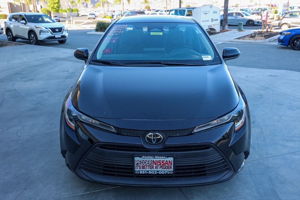 UsedThis 2024 Black Toyota Corolla LE FWD is well equipped and includes these features and benefits: 16″ Steel Wheels w/Covers, 4-Wheel Disc Brakes, 6 Speakers, ABS brakes, Air Conditioning, AM/FM radio: SiriusXM, Auto High-beam Headlights, Automatic temperature control, Brake assist, Bumpers: body-color, Delay-off headlights, Driver door bin, Driver vanity mirror, Dual front impact airbags, Dual front side impact airbags, Electronic Stability Control, Emergency communication system: Safety Connect (up to 10-year trial subscription), Exterior Parking Camera Rear, Fabric Seat Trim, Front anti-roll bar, Front Bucket Seats, Front Center Armrest, Front reading lights, Front wheel independent suspension, Fully automatic headlights, Illuminated entry, Knee airbag, Low tire pressure warning, Occupant sensing airbag, Outside temperature display, Overhead airbag, Panic alarm, Passenger door bin, Passenger vanity mirror, Power door mirrors, Power steering, Power windows, Radio data system, Radio: 8″ Toyota Audio Multimedia, Rear anti-roll bar, Rear seat center armrest, Rear side impact airbag, Rear window defroster, Remote keyless entry, Speed control, Split folding rear seat, Steering wheel mounted audio controls, Tachometer, Telescoping steering wheel, Tilt steering wheel, Traction control, and Trip computer Plus 3 Month 3000 Mile Warranty. See Dealer For Details. We have many different makes and models available including a wide selection of cars, trucks, vans, and SUV’s. Don’t see something you like! Pedder Nissan has access to thousands of new and used vehicles which means we can find the right vehicle FOR YOU. The Advertised Price for any vehicle does not include dealer installed accessories. These accessories can be purchased for an additional cost. All vehicles subject to prior sale. All prices plus government fees and taxes, any finance charges, any dealer document processing charges ($85), any electronic filing charge, and any emission testing charge. Offers and prices not available to other dealers, wholesalers, or brokers. This price may not be combined with any other offer. While every reasonable effort is made to ensure the accuracy of this information, we are not responsible for any errors or omissions contained on these pages. We are proud to serve the Hemet area from our Auto Mall Location. We work with most Credit Unions and we offer Military and First Responder discounts. Please verify all pricing, vehicle equipment, and any additional information in question with Pedder Nissan (951) 766-1446. Apple Car Play/Android Auto, Automatic Climate Control, Backup Camera. CARFAX One-Owner. Priced below KBB Fair Purchase Price! 2024 Toyota Corolla LEClean CARFAX. 32/41 City/Highway MPG