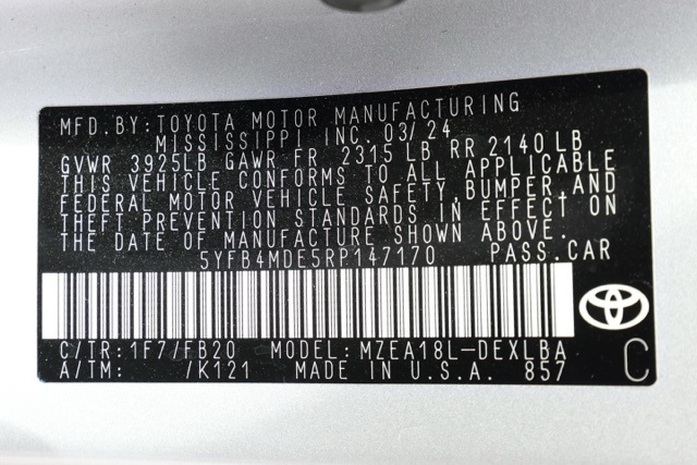 UsedThis 2024 Classic Silver Metallic Toyota Corolla LE FWD is well equipped and includes these features and benefits: 16″ Steel Wheels w/Covers, 4-Wheel Disc Brakes, 6 Speakers, ABS brakes, Air Conditioning, AM/FM radio: SiriusXM, Auto High-beam Headlights, Automatic temperature control, Brake assist, Bumpers: body-color, Delay-off headlights, Driver door bin, Driver vanity mirror, Dual front impact airbags, Dual front side impact airbags, Electronic Stability Control, Emergency communication system: Safety Connect (up to 10-year trial subscription), Exterior Parking Camera Rear, Fabric Seat Trim, Front anti-roll bar, Front Bucket Seats, Front Center Armrest, Front reading lights, Front wheel independent suspension, Fully automatic headlights, Illuminated entry, Knee airbag, Low tire pressure warning, Occupant sensing airbag, Outside temperature display, Overhead airbag, Panic alarm, Passenger door bin, Passenger vanity mirror, Power door mirrors, Power steering, Power windows, Radio data system, Radio: 8″ Toyota Audio Multimedia, Rear anti-roll bar, Rear seat center armrest, Rear side impact airbag, Rear window defroster, Remote keyless entry, Speed control, Split folding rear seat, Steering wheel mounted audio controls, Tachometer, Telescoping steering wheel, Tilt steering wheel, Traction control, and Trip computer. Recent Arrival!32/41 City/Highway MPG CARFAX One-Owner. Clean CARFAX.We have many different makes and models available including a wide selection of cars, trucks, vans, and SUVs. Raceway Nissan in Riverside County has access to thousands of new and used vehicles which means we can find the right vehicle for you and your family. We are proud to serve the city of Riverside, all of the Metro Riverside County area, and the Inland Empire from our location in Moreno Valley. We are conveniently located in Riverside near the cities of San Bernardino, Redlands, Ontario, Corona, Perris, Beaumont, Temecula, Hemet and many others. We offer military discounts and work with many Credit Unions.