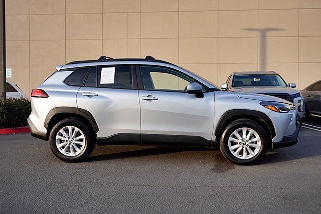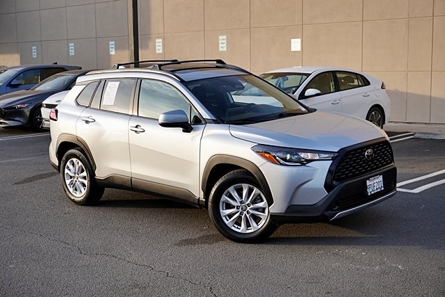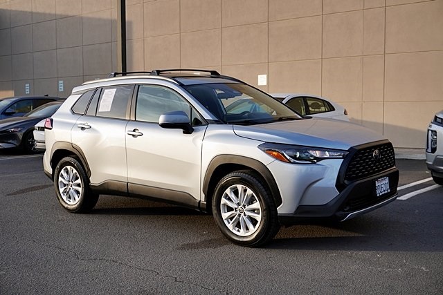 UsedThis 2024 Silver Toyota Corolla Cross LE FWD is well equipped and includes these features and benefits: 17″ Silver Alloy Wheels, 4-Wheel Disc Brakes, 4.014 Axle Ratio, 6 Speakers, ABS brakes, Air Conditioning, Alloy wheels, AM/FM radio: SiriusXM, Auto High-beam Headlights, Automatic temperature control, Brake assist, Bumpers: body-color, Delay-off headlights, Driver door bin, Driver vanity mirror, Dual front impact airbags, Dual front side impact airbags, Electronic Stability Control, Emergency communication system: Safety Connect (10-year trial), Exterior Parking Camera Rear, Fabric Seat Trim, Front anti-roll bar, Front Bucket Seats, Front Center Armrest, Front reading lights, Front wheel independent suspension, Fully automatic headlights, Heated door mirrors, Illuminated entry, Knee airbag, Leather steering wheel, Low tire pressure warning, Occupant sensing airbag, Outside temperature display, Overhead airbag, Panic alarm, Passenger door bin, Passenger vanity mirror, Power door mirrors, Power steering, Power windows, Radio data system, Radio: 8″ Touch-Screen Display Audio, Rear anti-roll bar, Rear side impact airbag, Rear window defroster, Rear window wiper, Remote keyless entry, Speed control, Split folding rear seat, Spoiler, Steering wheel mounted audio controls, Tachometer, Telescoping steering wheel, Tilt steering wheel, Traction control, Trip computer, Turn signal indicator mirrors, and Variably intermittent wipers. Apple Car Play/Android Auto, Automatic Climate Control, Backup Camera.CARFAX One-Owner.Poway Hyundai located at 13910 Poway Road, and Poway CDJR are both proud members of the Pedder Auto Group. Like our sister stores, we take great pride in serving all of San Diego County with friendly and professional sales, service and parts. We have one of the largest inventories of quality pre-owned vehicles in the county including a huge selection of Certified Pre-owned Hyundai products to choose from. We offer excellent financing, and a relaxed, no-pressure environment. All prices exclude government fees and taxes, any finance charges, any dealer document preparation charge, dealer installed options, and any emissions test charge. The equipment display is intended to be used as an informational listing of the factory stock equipment and features for this vehicle. Equipment and features may have changed for this vehicle. All information is believed to be accurate but is not guaranteed. For accurate information, pls see dealer for details. Some incentives are OAC and in lieu of others.