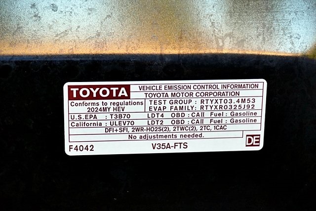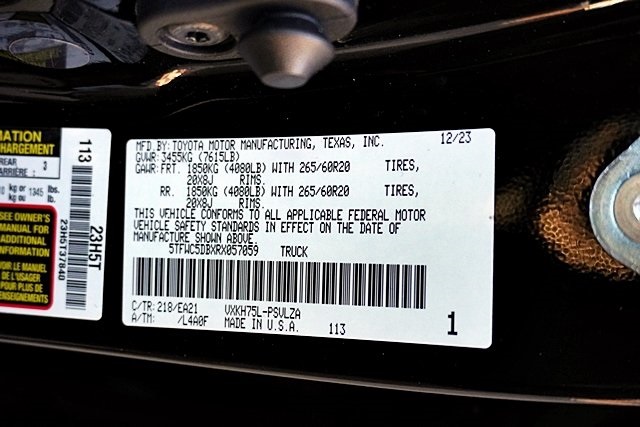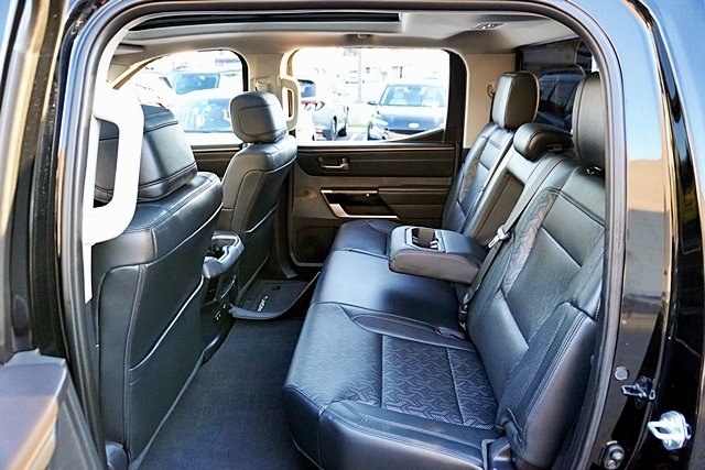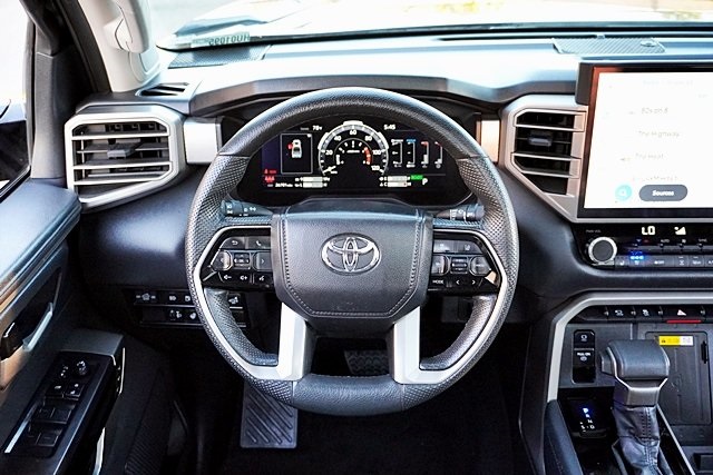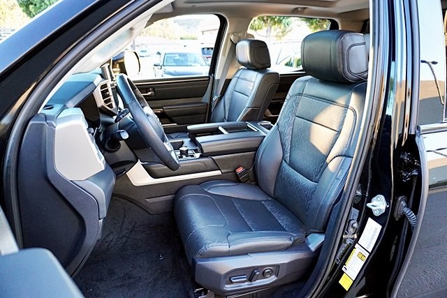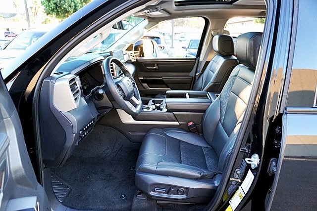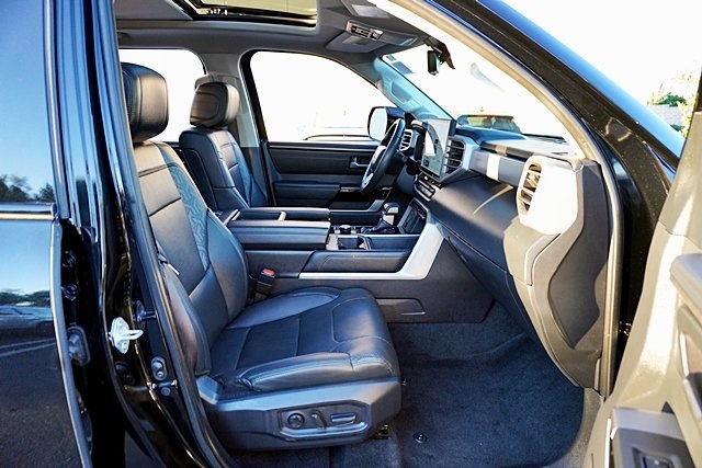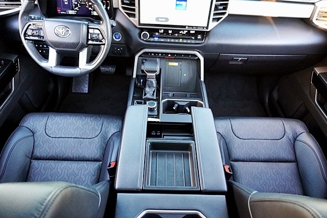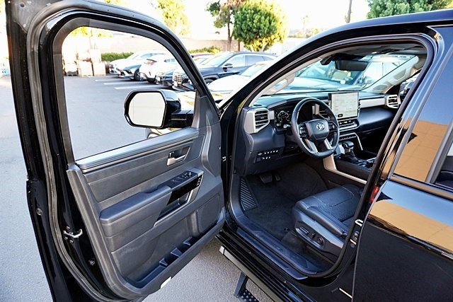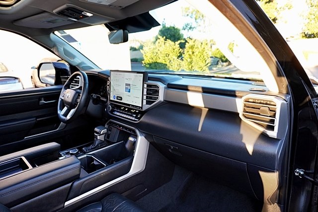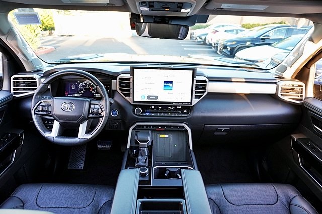 UsedThis 2024 Black Toyota Tundra Hybrid Limited 4WD is well equipped and includes these features and benefits: 3.4L V6, 4-Wheel Disc Brakes, ABS brakes, Air Conditioning, Alloy wheels, AM/FM radio: SiriusXM, Apple CarPlay/Android Auto, Auto High-beam Headlights, Auto-dimming door mirrors, Auto-dimming Rear-View mirror, Automatic temperature control, Brake assist, Bumpers: body-color, Delay-off headlights, Driver door bin, Driver vanity mirror, Dual front impact airbags, Dual front side impact airbags, Electronic Stability Control, Emergency communication system: Safety Connect (10-year trial), Exterior Parking Camera Rear, Front anti-roll bar, Front Bucket Seats, Front Center Armrest, Front dual zone A/C, Front fog lights, Front reading lights, Front wheel independent suspension, Fully automatic headlights, Garage door transmitter: HomeLink, Heated & Ventilated Front Bucket Seats, Heated door mirrors, Heated front seats, Heated steering wheel, Illuminated entry, Knee airbag, Leather Shift Knob, Low tire pressure warning, Memory seat, Navigation System, Occupant sensing airbag, Outside temperature display, Overhead airbag, Overhead console, Panic alarm, Passenger door bin, Passenger vanity mirror, Power door mirrors, Power driver seat, Power passenger seat, Power steering, Power windows, Radio data system, Rear reading lights, Rear seat center armrest, Rear step bumper, Rear window defroster, Remote keyless entry, Security system, Speed control, Speed-sensing steering, Split folding rear seat, Steering wheel mounted audio controls, Tachometer, Telescoping steering wheel, Tilt steering wheel, Traction control, Trip computer, Turn signal indicator mirrors, Variably intermittent wipers, Ventilated front seats, and Voltmeter. Apple Car Play/Android Auto, Automatic Climate Control, Backup Camera, 3.4L V6.CARFAX One-Owner.Poway Hyundai located at 13910 Poway Road, and Poway CDJR are both proud members of the Pedder Auto Group. Like our sister stores, we take great pride in serving all of San Diego County with friendly and professional sales, service and parts. We have one of the largest inventories of quality pre-owned vehicles in the county including a huge selection of Certified Pre-owned Hyundai products to choose from. We offer excellent financing, and a relaxed, no-pressure environment. All prices exclude government fees and taxes, any finance charges, any dealer document preparation charge, dealer installed options, and any emissions test charge. The equipment display is intended to be used as an informational listing of the factory stock equipment and features for this vehicle. Equipment and features may have changed for this vehicle. All information is believed to be accurate but is not guaranteed. For accurate information, pls see dealer for details. Some incentives are OAC and in lieu of others.