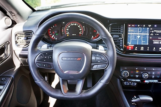 UsedThis 2025 DB Black Crystal Clearcoat Dodge Durango GT RWD is well equipped and includes these features and benefits: Quick Order Package 2BD GT, 3.27 Rear Axle Ratio, 3rd row seats: split-bench, 4-Wheel Disc Brakes, 6 Speakers, ABS brakes, Air Conditioning, Alloy wheels, AM/FM radio: SiriusXM w/360L, Apple CarPlay/Android Auto, Auto-dimming Rear-View mirror, Auto-leveling suspension, Automatic temperature control, Brake assist, Bumpers: body-color, Cloth Bucket Seats w/Shift Insert, Compass, Delay-off headlights, Driver door bin, Driver vanity mirror, Dual front impact airbags, Dual front side impact airbags, Electronic Stability Control, Emergency communication system: Dodge Connect, Four wheel independent suspension, Front anti-roll bar, Front Bucket Seats, Front Center Armrest w/Storage, Front dual zone A/C, Front License Plate Bracket, Front reading lights, Fully automatic headlights, Garage door transmitter, Gloss Black Exterior Mirrors, Heated door mirrors, Heated front seats, Heated steering wheel, Illuminated entry, Knee airbag, Leather steering wheel, Low tire pressure warning, Navigation System, Occupant sensing airbag, Outside temperature display, Overhead airbag, Overhead console, Panic alarm, ParkView Rear Back-Up Camera, Passenger door bin, Passenger vanity mirror, Power door mirrors, Power driver seat, Power Liftgate, Power steering, Power windows, Radio data system, Radio: Uconnect 5 Nav w/10.1″ Display, Rear air conditioning, Rear anti-roll bar, Rear Load Leveling Suspension, Rear reading lights, Rear seat center armrest, Rear window defroster, Rear window wiper, Remote keyless entry, Speed control, Speed-sensing steering, Speed-Sensitive Wipers, Split folding rear seat, Spoiler, Sport steering wheel, Steering wheel mounted audio controls, Tachometer, Telescoping steering wheel, Tilt steering wheel, Traction control, Trip computer, Variably intermittent wipers, Voltmeter, and Wheels: 18″ x 8.0″ Painted Aluminum Prices shown are manufacturer suggested retail price only and do not include taxes, license, documentation fee, smog fee, dealer installed options and other applicable charges. Vehicles are subject to prior sale. Vehicle information is based on standard equipment and may vary from vehicle to vehicle. Not responsible for typographical errors. CARFAX One-Owner.18/25 City/Highway MPG