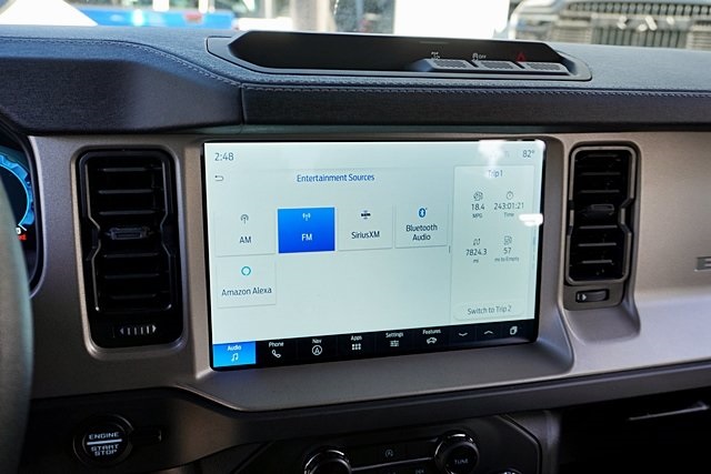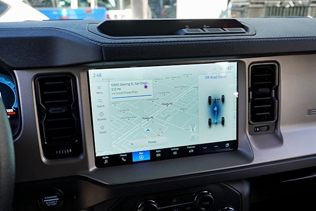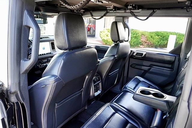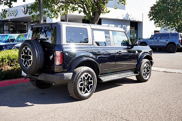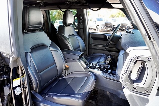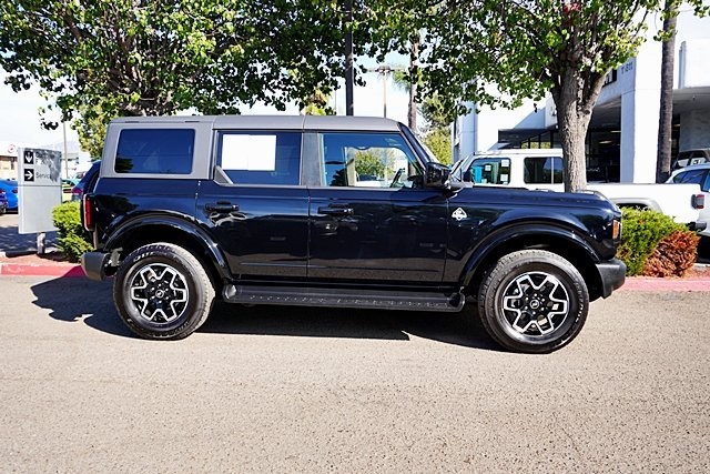 UsedThis 2025 Shadow Black Ford Bronco Outer Banks Advanced 4WD is well equipped and includes these features and benefits: Equipment Group 312A Mid Package, 18″ Bright Machined Aluminum Wheels, 3.73 Axle Ratio, 4-Wheel Disc Brakes, 7 Speakers, ABS brakes, Air Conditioning, Alloy wheels, AM/FM radio: SiriusXM with 360L, AM/FM Stereo, Auto High-beam Headlights, Auto-dimming Rear-View mirror, Automatic temperature control, Brake assist, Carbonized Gray Molded-In-Color Hard Top, Compass, Connected Navigation, Delay-off headlights, Driver door bin, Driver vanity mirror, Dual front impact airbags, Dual front side impact airbags, Electronic Stability Control, Emergency communication system: 911 Assist, Exterior Parking Camera Rear, Front anti-roll bar, Front Bucket Seats, Front Center Armrest, Front dual zone A/C, Front fog lights, Front License Plate Bracket, Front reading lights, Front wheel independent suspension, Fully automatic headlights, Hard Top Sound Deadening Headliner, Heated door mirrors, Heated front seats, Heated Leather-Trimmed/Vinyl Bucket Seats, Heated steering wheel, Illuminated entry, Integrated roll-over protection, Leather Shift Knob, Low tire pressure warning, Navigation system: Connected Navigation, Occupant sensing airbag, Outside temperature display, Overhead airbag, Overhead console, Panic alarm, Passenger door bin, Passenger vanity mirror, Power door mirrors, Power driver seat, Power passenger seat, Power steering, Power windows, Radio data system, Rear seat center armrest, Rear-Window Defroster & Washer, Remote keyless entry, Security system, SiriusXM w/360L, Speed control, Split folding rear seat, Steering wheel mounted audio controls, SYNC 4, Tachometer, Telescoping steering wheel, Tilt steering wheel, Traction control, Trip computer, Variably intermittent wipers, and Voltmeter Prices shown are manufacturer suggested retail price only and do not include taxes, license, documentation fee, smog fee, dealer installed options and other applicable charges. Vehicles are subject to prior sale. Vehicle information is based on standard equipment and may vary from vehicle to vehicle. Not responsible for typographical errors. CARFAX One-Owner. Priced below KBB Fair Purchase Price!19/21 City/Highway MPG