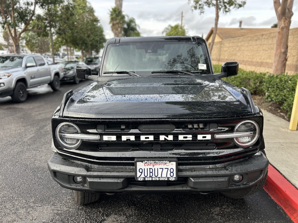 UsedThis 2025 Shadow Black Ford Bronco Outer Banks Advanced 4WD is well equipped and includes these features and benefits: Equipment Group 312A Mid Package, 18″ Bright Machined Aluminum Wheels, 3.73 Axle Ratio, 4-Wheel Disc Brakes, 7 Speakers, ABS brakes, Air Conditioning, Alloy wheels, AM/FM radio: SiriusXM with 360L, AM/FM Stereo, Auto High-beam Headlights, Auto-dimming Rear-View mirror, Automatic temperature control, Brake assist, Carbonized Gray Molded-In-Color Hard Top, Compass, Connected Navigation, Delay-off headlights, Driver door bin, Driver vanity mirror, Dual front impact airbags, Dual front side impact airbags, Electronic Stability Control, Emergency communication system: 911 Assist, Exterior Parking Camera Rear, Front anti-roll bar, Front Bucket Seats, Front Center Armrest, Front dual zone A/C, Front fog lights, Front License Plate Bracket, Front reading lights, Front wheel independent suspension, Fully automatic headlights, Hard Top Sound Deadening Headliner, Heated door mirrors, Heated front seats, Heated Leather-Trimmed/Vinyl Bucket Seats, Heated steering wheel, Illuminated entry, Integrated roll-over protection, Internet access capable: FordPass Connect, Leather Shift Knob, Low tire pressure warning, Navigation system: Connected Navigation, Occupant sensing airbag, Outside temperature display, Overhead airbag, Overhead console, Panic alarm, Passenger door bin, Passenger vanity mirror, Power door mirrors, Power driver seat, Power passenger seat, Power steering, Power windows, Radio data system, Rear seat center armrest, Rear-Window Defroster & Washer, Remote keyless entry, Security system, SiriusXM w/360L, Speed control, Split folding rear seat, Steering wheel mounted audio controls, SYNC 4, Tachometer, Telescoping steering wheel, Tilt steering wheel, Traction control, Trip computer, Variably intermittent wipers, and Voltmeter. Apple Car Play/Android Auto, Automatic Climate Control, Backup Camera.Priced below KBB Fair Purchase Price!CARFAX One-Owner.Poway Hyundai located at 13910 Poway Road, and Poway CDJR are both proud members of the Pedder Auto Group. Like our sister stores, we take great pride in serving all of San Diego County with friendly and professional sales, service and parts. We have one of the largest inventories of quality pre-owned vehicles in the county including a huge selection of Certified Pre-owned Hyundai products to choose from. We offer excellent financing, and a relaxed, no-pressure environment. All prices exclude government fees and taxes, any finance charges, any dealer document preparation charge, dealer installed options, and any emissions test charge. The equipment display is intended to be used as an informational listing of the factory stock equipment and features for this vehicle. Equipment and features may have changed for this vehicle. All information is believed to be accurate but is not guaranteed. For accurate information, pls see dealer for details. Some incentives are OAC and in lieu of others.