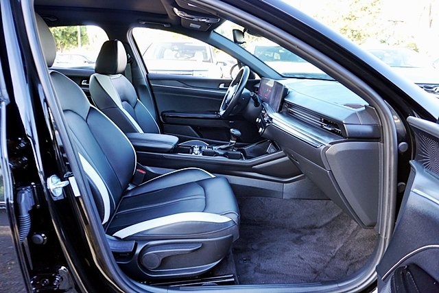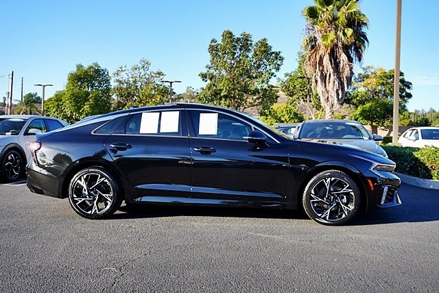 UsedThis 2025 Aurora Black Pearl Kia K5 GT-Line FWD is well equipped and includes these features and benefits: GT-Line Premium Package (Active Sound Design, Bose Premium Audio, LED Interior Lighting, and Panoramic Sunroof), 4-Wheel Disc Brakes, 6 Speakers, ABS brakes, Air Conditioning, Alloy wheels, AM/FM radio: SiriusXM, Auto High-beam Headlights, Automatic temperature control, Brake assist, Bumpers: body-color, Carpeted Floor Mats, Delay-off headlights, Driver door bin, Driver vanity mirror, Dual front impact airbags, Dual front side impact airbags, Electronic Stability Control, Emergency communication system: Kia Connect (includes 1 year free trial), Four wheel independent suspension, Front anti-roll bar, Front Bucket Seats, Front Center Armrest, Front dual zone A/C, Front fog lights, Front reading lights, Fully automatic headlights, Heated door mirrors, Heated Front Bucket Seats, Heated front seats, Heated steering wheel, Illuminated entry, Knee airbag, Leather Shift Knob, Leather steering wheel, Low tire pressure warning, Navigation System, Occupant sensing airbag, Outside temperature display, Overhead airbag, Overhead console, Panic alarm, Passenger door bin, Passenger vanity mirror, Power door mirrors, Power driver seat, Power steering, Power windows, Radio data system, Radio: AM/FM Audio System, Rear anti-roll bar, Rear seat center armrest, Rear side impact airbag, Rear window defroster, Remote keyless entry, Security system, Speed control, Speed-sensing steering, Split folding rear seat, Sport steering wheel, Steering wheel mounted audio controls, Tachometer, Telescoping steering wheel, Tilt steering wheel, Traction control, Trip computer, Turn signal indicator mirrors, Variably intermittent wipers, and Wheels: 18″ x 7.5J Gloss Black Machined Finish Alloy. Apple Car Play/Android Auto, Automatic Climate Control, Backup Camera.CARFAX One-Owner.Poway Hyundai located at 13910 Poway Road, and Poway CDJR are both proud members of the Pedder Auto Group. Like our sister stores, we take great pride in serving all of San Diego County with friendly and professional sales, service and parts. We have one of the largest inventories of quality pre-owned vehicles in the county including a huge selection of Certified Pre-owned Hyundai products to choose from. We offer excellent financing, and a relaxed, no-pressure environment. All prices exclude government fees and taxes, any finance charges, any dealer document preparation charge, dealer installed options, and any emissions test charge. The equipment display is intended to be used as an informational listing of the factory stock equipment and features for this vehicle. Equipment and features may have changed for this vehicle. All information is believed to be accurate but is not guaranteed. For accurate information, pls see dealer for details. Some incentives are OAC and in lieu of others.