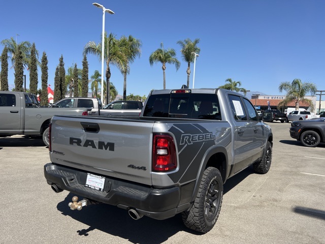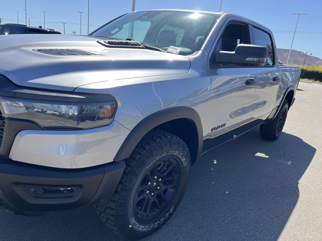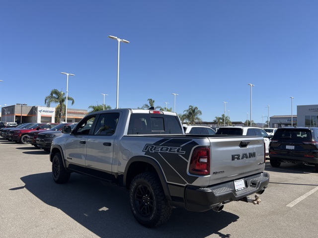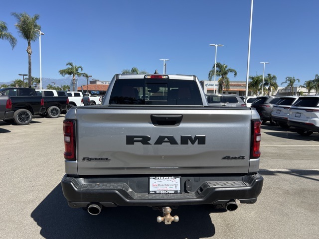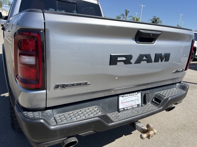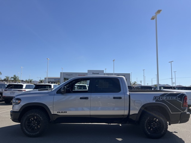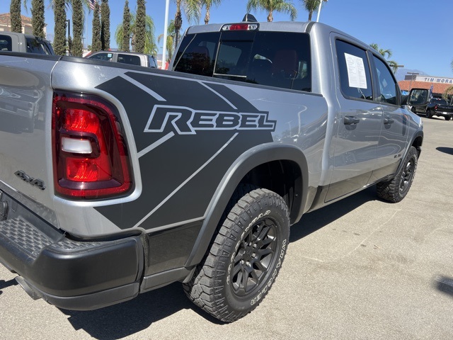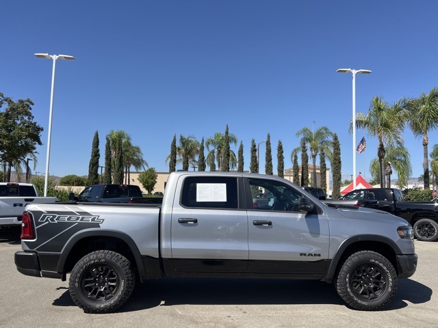 UsedThis 2025 Billet Silver Metallic Clearcoat Ram 1500 Rebel 4WD is well equipped and includes these features and benefits: 10 Speakers, 4 Way Front Headrests, 4-Wheel Disc Brakes, 4G LTE Wi-Fi Hot Spot, ABS brakes, Air Conditioning, Alloy wheels, AM/FM radio: SiriusXM with 360L, Apple CarPlay, Apple CarPlay/Android Auto, Auto High-beam Headlights, Auto-dimming Rear-View mirror, Automatic temperature control, Brake assist, Bucket Seats, Cloth/Vinyl Bucket Seats, Compass, Connected Travel & Traffic Services, Connectivity – US/Canada, Convex Wide-Angle Exterior Mirror Insert, Delay-off headlights, Driver door bin, Driver vanity mirror, Dual front impact airbags, Dual front side impact airbags, Electronic Stability Control, Exterior Mirrors w/Heating Element, Front anti-roll bar, Front Bucket Seats, Front Center Armrest w/Storage, Front dual zone A/C, Front fog lights, Front reading lights, Front Seat Back Map Pockets, Front wheel independent suspension, Full Length Upgraded Floor Console, Fully automatic headlights, Garage door transmitter, Google Android Auto, GPS Antenna Input, GPS Navigation, Heated door mirrors, Heated front seats, Heated steering wheel, Illuminated entry, Integrated Voice Command w/Bluetooth, Leather steering wheel, Low tire pressure warning, Manual Folding Exterior Mirrors, Navigation System, Occupant sensing airbag, Outside temperature display, Overhead airbag, Overhead console, Panic alarm, ParkView Rear Back-Up Camera, Passenger door bin, Passenger vanity mirror, Power Adjust 8-Way Driver Seat, Power door mirrors, Power driver seat, Power steering, Power windows, Radio data system, Radio: Uconnect 5 Nav w/12.0″ Display, Rear 60/40 Folding Seat, Rear anti-roll bar, Rear seat center armrest, Rear step bumper, Remote keyless entry, SiriusXM w/360L, Speed control, Split folding rear seat, Steering wheel mounted audio controls, Tachometer, Telescoping steering wheel, Tilt steering wheel, Traction control, Trip computer, USB Host Flip, Variably intermittent wipers, Voltmeter, and Wheels: 18″ x 8.0″ Painted Mid-Gloss Black. Apple Car Play/Android Auto, Automatic Climate Control. CARFAX One-Owner. 8-Speed Automatic Clean CARFAX.Odometer is 3616 miles below market average!Awards: * Motor Trend Automobiles of the yearWe have many different makes and models available including a wide selection of cars, trucks, vans, and SUV’s. Lake Elsinore CDJR auto group has access to thousands of new and used vehicles which means we can find the right vehicle FOR YOU.